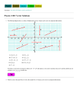 Questions: 1 2 3 4 5 6 7 8 9 10 11 12 13 14 15 16 17 Physics 1100: Vector Solutions 1. The following diagram shows a variety of displacement vectors. Express each vector in component (ij) notation. (i) (ii) (iii) (iv) (v) (vi) (vii) (viii) (ix) Note that a vector such as (i) may be written as A = i7 + j3 when typed, as it is easier to produce since arrow and hat symbols are not common, or as in math class. 2. Find the vectors that point from A to the other points B to G. Express each vector in component (ij) notation. (i) (ii) (iii) (iv) (v) (vi) Note that a vector such as (i) may be written as AB = j9 when typed as it is easier to produce since arrow and hat symbols are not common or as in a math class. 3. Write vectors equations for each diagram below. (a) (b) (c) (d) (e) (f) (a) (b) (c) (d) (e) (f) 4. Sketch vector diagrams for the following vector equations. (a) (b) (c) (d) (a) (b) (c) (d) 5. Person B is 10 m to the right of person A. Person B walks a distance and person A walks a distance Sketch neatly the situation on graphpaper and from the drawing determine the vector that points from A to B, . . Write out the vector equation for the situation. Confirm that the numerical solution and the graphical solution agree. Numerically the solution is: DAB = D0 + DB– DA = i10 + [i5 + j2] – [i3 – j3] = i12 + j5 6. Find the unit vectors that point from A to the other points B to G in Question #2. Express each vector in component (ij) notation. Unit vectors are vectors of length 1 that point in the desired direction. The best known unit vectors are i and j which point in the positive x and y directions respectively. You generate unit vectors by first find a vector that points the right way and then dividing by the magnitude of that vector, (i) . AB = 9 (ii) (iii) (iv) AE = 10 (v) (vi) 7. The relative position of George to Tom, in metres, is i10 + j15. The relative position of Cindy to George is i6 – j4. What is the relative position of Cindy to Tom? A good graph let's us see the relationship quite simply. Clearly, RCT = RCG + RGT = [i6 – j4] + [i10 + j15] = i16 + j11 . 8. State the vectors in the diagrams below in standard form. (a) (b) (a) A = 20 N at 53° a.h. B = 15 N at 160° a.h. C = 19 N at 195° a.h. or C = 19 N at 165° b.h. D = 25 N at 303° a.h. or D = 25 N at 57° b.h. (b) A = 20 N at 27° E of N or A = 20 N at 53° N of E B = 15 N at 20° N of W or B = 15 N at 70° W of N C = 19 N at 15° S of W or C = 19 N at 75° W of S D = 25 N at 33° E of S or D = 25 N at 57° S of E 9. Neatly sketch the x and y components on the graphs of the vectors shown below. Indicate the sign of the x and y components of the vectors shown below. Express the vectors in component (i, j) form. (a) A= i[+9.0sin(49°)] + j[+9.0cos(49°)] = i[6.7924] + j[5.9045] (b) B = i[–4.3sin(61° )] + j[+4.3cos(61° )] = i[–3.7609] + j[2.0847] (c) C= i[–10cos(34° )] + j[+10sin(34° )] = i[–8.2904] + j[5.5919] (d) D = i[+15sin(70° )] + j[–15cos(70° )] = i[14.0954] + j[–5.1303] (e) E= i[–35sin(34° )] + j[–35cos(34° )] = i[–19.5718] + j[–29.0163] (f) F= i[–40cos(22° )] + j[–40sin(22° )] = i[–37.0874] + j[–14.9843] 10. Use the parallelogram method to sketch in the resultant vector which has the components shown in the diagrams below. In each case, write the vector in component (i, j) form. In each case write the vector in standard form. A =10i – 8j B = 6i + 3j C = ­12i – 4j A = [(10.0)2+(8.0)2]½ = 12.8062 B = [(6.0)2+(3.0)2]½ = 6.7082 C = [(12.0)2+(4.0)2]½ = 12.6491 θ = arctan(8/10) θ = arctan(3/6) θ = arctan (4/12) = 38.66° A = (12.81, 38.7° b.h.) = 26.57° B = (6.71, 26.6° a.h.) = 18.43° C = (12.65, 198.43° a.h.) D = ­6i – 10j E = ­8i + 4j F = 12i – 3j D = [(6.0)2+(10.0)2]½ = 11.6619 E = [(8.0)2+(4.0)2]½ = 8.9443 F = [(12.0)2+(3.0)2]½ = 12.3693 θ = arctan (10/6) θ = arctan (4/8) θ = arctan(3/12) = 59.04° D = (11.66, 239.0° a.h.) = 26.57° = 14.043° E = (8.94, 153.4° a.h.) F = (12.37, 14.0° b.h.) 11. Convert the following vectors to component form. Include sketches. (a) A = 7.50 m/s2 at 23° a.h. (b) B = 55 m at 47° b.h. (c) C = 15.5 m/s at 155° a.h. (d) D = 42 m at 35° S of E (e) E = 120 m/s at 41° W of N (f) F = 75 N at 15° S of W (a) (b) A = i[+7.5cos(23°)] + j[+7.5sin(23°)] = i[6.9038] + j[2.9305] (c) B = i[+55cos(47°)] + j[–55sin(47°)] = i[35.5099] – j[40.2245] (d) C = i[+15.5cos(155°)] + j[+15.5sin(155°)] = i[–14.0478] + j[6.5506] (e) B = i[+42cos(35°)] + j[–42sin(35°)] = i[34.4044] – j[24.0902] (f) E = i[–120sin(41°)] + j[+120cos(41°)] = i[–78.7271] + j[90.5651] F = i[–75cos(15°)] + j[–75sin(15°)] = –i[72.4444] – j[19.4114] 12. For the following, sketch the addition of the given vectors. Use the component method to find the resultant vector. State the result in standard form. A = i[+12cos(25° )] + j[+12sin(25° )] = i[10.8757] + j[5.0714] B = i[–10cos(20° )] + j[+10sin(20° )] = i[–9.3969] + j[8.4916] C =A+B A = i[+4.25sin(20° )] + j[+4.25cos(20° )] = i[1.4536] + j[3.9937] B = i[–3cos(30° )] + j[–3sin(30° )] = i[–2.5981] + j[–1.5] C =A+B = i[10.8757–9.3969]+ j[5.0714+8.4916] = i[1.4536–2.5981] + j[3.9937–1.5] = i[1.4788] + j[8.4916] = i[–1.1445] + j[2.4937] C = [(1.4788)2+(8.4916)2]½ = 8.6194 θ = arctan(8.4916/1.4788) = 80.12° C = 8.62 at 80.1° a.h. A = i[–10cos(20° )] + j[+10sin(20° )] = i[–9.3969] + j[3.4202] B = i[–3cos(45° )] + j[–3sin(45° )] = i[–2.1213] + j[–2.1213] C = [(1.1445)2+(2.4937)2]½ = 2.7438 θ = arctan(2.4937/1.1445) = 65.35° C = (2.74, 114.7° a.h.) A = i[+6cos(20° )] + j[–6sin(20° )] = i[5.6382] + j[–2.0521] B = i[–4.25cos(30° )] + j[–4.25sin(30° )] = i[–3.6806] + j[–2.125] C =A+B = i[–9.3969–2.1213]+ j[3.4202–2.1213] = i[–11.5182] + j[1.2989] C = [(–11.5182)2+(1.2989)2]½ = 11.5912 C =A+B = i[5.6382–3.6806] + j[–2.0521–2.125] = i[–1.1445] + j[–4.1771] C = [(1.9576)2+(–4.1771)2]½ = 4.6131 θ = arcta