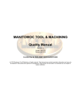 MANITOWOC TOOL & MACHINING Quality Manual Revision C Issued 10/01/18 Revised 8/13/19 Conforms to ISO-9001:2015/AS9100D (c) 2018 Manitowoc Tool & Machining; all rights reserved. This document may contain proprietary information and may only be released to third parties with approval of management. When printed, this document is uncontrolled and not subject to update notification. Manitowoc Tool & Machining Quality Manual Revision B – 10/01/18 TABLE OF CONTENTS 0.0 REVISION HISTORY AND APPROVAL 3 1.0 WELCOME TO MANITOWOC TOOL & MACHINING 4 2.0 ABOUT THE MTM QUALITY MANUAL 5 3.0 TERMS AND DEFINITIONS 5 4.0 PROCEDURE-026 CONTEXT OF THE ORGANIZATION 4.1 4.2 4.3 4.4 4.4.1 4.4.2 4.4.3 UNDERSTANDING THE ORGANIZATION AND ITS CONTEXT UNDERSTANDING THE NEEDS AND EXPECTATIONS OF INTERESTED PARTIES DETERMINING THE SCOPE OF THE QUALITY MANAGEMENT SYSTEM QUALITY MANAGEMENT SYSTEM AND ITS PROCESSES PROCESS IDENTIFICATION PROCESS CONTROLS & OBJECTIVES OUTSOURCED PROCESSES 6 6 6 7 7 7 8 5.0 LEADERSHIP 8 5.1 LEADERSHIP & COMMITMENT 5.1.1 GENERAL 5.1.2 CUSTOMER FOCUS 5.2 POLICY 5.3 ORGANIZATIONAL ROLES RESPONSIBILITIES AND AUTHORITIES ERROR! BOOKMARK NOT DEFINED. 8 8 9 9 9 6.0 PLANNING 10 6.1 6.2 6.3 ACTIONS TO ADDRESS RISKS AND OPPORTUNITIES QUALITY OBJECTIVES AND PLANNING TO ACHIEVE THEM PLANNING OF CHANGES 10 10 11 7.0 SUPPORT 11 7.1 RESOURCES 7.1.1 GENERAL 7.1.2 PEOPLE 7.1.3 INFRASTRUCTURE 7.1.4 ENVIRONMENT FOR THE OPERATION OF PROCESSES 7.1.5 MONITORING AND MEASURING RESOURCES Page 1 of 22 11 11 11 11 11 12 Manitowoc Tool & Machining Quality Manual Revision B – 10/01/18 7.1.6 7.2 7.3 7.4 7.5 ORGANIZATIONAL KNOWLEDGE COMPETENCE AWARENESS COMMUNICATION DOCUMENTED INFORMATION 12 12 12 13 13 8.0 OPERATION 14 8.1 8.1.1 8.1.2 8.1.3 8.1.4 8.2 8.2.1 8.2.2 8.2.3 8.2.4 8.4 8.5 8.5.1 8.5.2 8.5.3 8.5.4 8.5.5 8.5.6 8.6 8.7 OPERATIONAL PLANNING AND CONTROL OPERATIONAL RISK MANAGEMENT CONFIGURATION MANAGEMENT PRODUCT SAFETY COUNTERFEIT PARTS REQUIREMENTS FOR PRODUCTS AND SERVICES PROCEDURE-008 CUSTOMER COMMUNICATIONS DETERMINING THE REQUIREMENTS RELATED TO PRODUCTS AND SERVICES REVIEW OF REQUIREMENTS RELATED TO PRODUCTS AND SERVICES CHANGES TO REQUIREMENTS FOR PRODUCTS AND SERVICES CONTROL OF EXTERNALLY PROVIDED PROCESSES, PRODUCTS AND SERVICES PRODUCTION AND SERVICE PROVISION CONTROL OF PRODUCTION AND SERVICE PROVISION IDENTIFICATION AND TRACEABILITY PROPERTY BELONGING TO CUSTOMERS OR EXTERNAL PROVIDERS PRESERVATION POST-DELIVERY ACTIVITIES CONTROL OF CHANGES RELEASE OF PRODUCTS AND SERVICES CONTROL OF NONCONFORMING OUTPUTS 14 14 15 15 15 16 16 16 16 16 17 17 17 19 19 19 19 19 19 20 9.0 PERFORMANCE EVALUATION 20 9.1 MONITORING, MEASUREMENT, ANALYSIS AND EVALUATION 9.1.1 GENERAL 9.1.2 CUSTOMER SATISFACTION 9.1.3 ANALYSIS AND EVALUATION 9.2 PROCEDURE-022 INTERNAL AUDIT 9.3 PROCEDURE-006 MANAGEMENT REVIEW 20 20 20 21 21 21 10.0 IMPROVEMENT 21 10.1 10.2 10.3 GENERAL NONCONFORMITY AND CORRECTIVE ACTION CONTINUAL IMPROVEMENT 21 22 22 Page 2 of 22 Manitowoc Tool & Machining Quality Manual Revision B – 10/01/18 0.0 Rev. Revision History and Approval Nature of changes Approval Date A Original release. Rick Swoboda 4/12/18 B Added AS-9100D Elements Rick Swoboda 10/01/18 C Removed 8.5.5 from exclusion procedure/process names to the links Rick Swoboda 8/13/19 and added Page 3 of 22 Manitowoc Tool & Machining Quality Manual Revision B – 10/01/18 1.0 Welcome to Manitowoc Tool & Machining Company History Manitowoc Tool and Machining (MTM) founded in 1966 under the name of Manitowoc Tool and Die and was located at 925 South 29th Street in Manitowoc, Wisconsin. At that location, design and construction of stamping dies along with sheet metal stamping was the business focus. In 1980, MTM was relocated to a new facility in Manitowoc’s South Industrial Park at 4211 Clipper Drive. Years later added the 1210 South 41st address as partial machining, shipping and receiving. At that junction, MTM diversified into production machining as well as the continuation of the core business of die construction and sheet metal stamping. MTM was fortunate to experience continual growth of all the business units. The name was changed to Manitowoc Tool and Machining due to the increasing emphasis on production machining. This growth led to a substantial increase in employees and numerous building additions. MTM added to the facility in 1980, 1983, 1988, 1990, 1993, 1994, 1995, 1997, 2001, and 2004. During 2008, MTM purchased a third facility that is adjacent to the Clipper Drive facility. In addition to housing a full complement of machining centers, this 88,000 square foot building is the main warehouse and shipping/receiving hub of the company. Due to continual demands for the sheet metal die and stamping business, a separate 35,000 square foot facility was constructed at 4330 Expo Drive. In 2007 and again in 2008, MTM expanded that facility and decided to create a separate identity for that part of the business. Manitowoc Tool and Manufacturing is a “state of the art” company that builds complicated sheet metal dies, has stamping capacity up to 800 tons, robotic welding, and creates large and small component assemblies. The facility was expanded in 2010 and 2012 to its current size of 95,000 square feet. The 20 acre MTM campus consists of three plants that total 357,000 square feet and have over 375 employees. MTM has been IS0 certified for over 16 years and ships parts world-wide. The customer base includes large OEM: power generating, HVAC, agricultural equipment, heavy truck, aerospace, marine, recreational, hydraulic, and powertrain suppliers. Page 4 of 22 Manitowoc Tool & Machining Quality Manual Revision B – 10/01/18 2.0 About The MTM Quality Manual This manual is prepared for the purpose of defining the company’s interpretations of the ISO 9001:2015/AS9100D international standard, as well as to demonstrate how the company complies with that standard. This manual presents “Notes” which are used to define how MTM has tailor