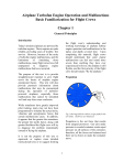 Airplane Turbofan Engine Operation and Malfunctions Basic Familiarization for Flight Crews Chapter 1 General Principles Introduction the flight crew's understanding and working knowledge of airplane turbine engine operation and malfunctions to the topics and depth covered here. Upon completing this material, flight crews should understand that some engine malfunctions can feel and sound more severe than anything they have ever experienced; however, the airplane is still flyable, and the first priority of the flight crew should remain "fly the airplane." Today's modern airplanes are powered by turbofan engines. These engines are quite reliable, providing years of trouble- free service. However, because of the rarity of turbofan engine malfunctions, and the limitations of simulating those malfunctions, many flight crews have felt unprepared to diagnose engine malfunctions that have occurred. The purpose of this text is to provide straightforward material to give flight crews the basics of airplane engine operational theory. This text will also provide pertinent information about malfunctions that may be encountered during the operation of turbofanpowered airplanes, especially those malfunctions that cannot be simulated well and may thus cause confusion. Propulsion While simulators have greatly improved pilot training, many may not have been programmed to simulate the actual noise, vibration and aerodynamic forces that certain malfunctions cause. In addition, it appears that the greater the sensations, the greater the startle factor, along with greater likelihood the flight crew will try to diagnose the problem immediately instead of flying the airplane. Fig 1 showing balloon with no escape path for the air inside. All forces are balanced. Propulsion is the net force that results from unequal pressures. Gas (air) under pressure in a sealed container exerts equal pressure on all surfaces of the container; therefore, all the forces are balanced and there are no forces to make the container move. It is not the purpose of this text to supersede or replace more detailed instructional texts or to suggest limiting 1 rapidly drop. This engine would deliver propulsion for only a limited time. The turbine engine A turbine engine is a container with a hole in the back end (tailpipe or nozzle) to let air inside the container escape, and thus provide propulsion. Inside the container is turbomachinery to keep the container full of air under constant pressure. Fig 2 showing balloon with released stem. Arrow showing forward force has no opposing arrow. If there is a hole in the container, gas (air) cannot push against that hole and thus the gas escapes. While the air is escaping and there is still pressure inside the container, the side of the container opposite the hole has pressure against it. Therefore, the net pressures are not balanced and there is a net force available to move the container. This force is called thrust. Fig 3 showing our balloon with machinery in front to keep it full as air escapes out the back for continuous thrust. The simplest example of the propulsion principle is an inflated balloon (container) where the stem is not closed off. The pressure of the air inside the balloon exerts forces everywhere inside the balloon. For every force, there is an opposite force, on the other side of the balloon, except on the surface of the balloon opposite the stem. This surface has no opposing force since air is escaping out the stem. This results in a net force that propels the balloon away from the stem. The balloon is propelled by the air pushing on the FRONT of the balloon. Fig 4 showing turbine engine as a cylinder of turbomachinery with unbalanced forces pushing forward. Components of a turbine engine The simplest propulsion engine The turbomachinery in the engine uses energy stored chemically as fuel. The basic principle of the airplane turbine engine is identical to any and all engines that extract energy from chemical fuel. The basic 4 steps for any internal combustion engine are: The simplest propulsion engine would be a container of air (gas) under pressure that is open at one end. A diving SCUBA tank would be such an engine if it fell and the valve was knocked off the top. The practical problem with such an engine is that, as the air escapes out the open end, the pressure inside the container would 1) Intake of air (and possibly fuel). 2 needs to be driven by something in order to work. Just after the burner and before the exhaust nozzle, there is a turbine that uses some of the energy in the discharging air to drive the compressor. There is a long shaft connecting the turbine to the compressor ahead of it. 2) Compression of the air (and possibly fuel). 3) Combustion, where fuel is injected (if it was not drawn in with the intake air) and burned to convert the stored energy. 4) Expansion and exhaust, where the converted energy is put to use. These principles are exactly the same ones that make a lawn mower or automobile engine go. Compressor combustor turbine nozzle In the case of a piston engine such as the engine in a car or lawn mower, the intake, compression, combustion, and exhaust steps occur in the same place (cylinder head) at different times as the piston goes up and down. Fig 5 showing basic layout of jet propulsion system. In the turbine engine, however, these same four steps occur at the same time but in different places. As a result of this fundamental difference, the turbine has engine sections called: Machinery details From an outsider's view, the flight crew and passengers rarely see the actual engine. What is seen is a large elliptically-shaped pod hanging from the wing or attached to the airplane fuselage toward the back of the airplane. This pod structure is called the nacelle or cowling. The engine is inside this nacelle. 1) The inlet section 2) The compressor section 3) The combustion section 4) The exhaust section. The practical axial flow turbine engine The turb