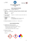 Versión: 04 Fecha: 20/12/2021 Ficha de Datos de Seguridad SAFETY DATA SHEET -- FDS -Sección 1: Identificación del Producto 1.1. Nombre de Producto : CLORURO FÉRRICO 40 % 1.2. Sinónimos : Cloruro férrico en solución, cloruro férrico en solución 40%, coagulat strong CF40%, ferric chloride 40%, ferric chloride in solution, ferric chloride in solution 40%. Número CAS : 7705-08-0 Número UN : 2582 1.3. Usos recomendados industria orgánica. : Coagulante en el tratamiento de aguas, agente oxidante en la 1.4. Datos del proveedor Compañía Dirección Teléfonos [] : : QUIMPAC S.A : Av. Nestor Gambetta N° 8585 – Callao- Lima, Perú : 511 6142000 Anexos 1230 – 1260 – 1750 1.5. Teléfonos de emergencia: (01) 614-2008 / (01) 614 – 2000 Anexo 1901 Sección 2: Identificación de Peligros 2.1. Clasificación de la sustancia o de la mezcla Clasificación según el sistema globalmente armonizado - Sustancias y mezclas corrosivas para los metales – Categoría 1 - Corrosión/irritaciones cutáneas – Categoría 2 - Lesiones oculares graves/irritación ocular – Categoría 1 2.2. Elementos de la etiqueta Palabra de advertencia: PELIGRO Pictograma: 1 de 9 Versión: 04 Fecha: 20/12/2021 Ficha de Datos de Seguridad SAFETY DATA SHEET -- FDS -Indicaciones de peligro: H290 H315 H318 - Puede ser corrosivo para los metales. Provoca irritación cutánea. Provoca lesiones oculares graves Consejos de prudencia: (Prevención) P234 Conservar únicamente en el recipiente original. P264 Lavarse las manos cuidadosamente después de la manipulación. P280 Usar guantes/ropa de protección/equipo de protección para los ojos/la cara. Consejos de prudencia de respuesta (Intervención) P305 + P351 + P338 EN CASO DE CONTACTO CON LOS OJOS: Enjuagar con agua cuidadosamente durante varios minutos. Quitar los lentes de contacto cuando estén presentes y pueda hacerse con facilidad. Proseguir con el lavado. P310 Llamar inmediatamente a un CENTRO de información toxicológica o a un médico. P390 - Absorber el vertido para prevenir daños materiales. P362 + P364 Quitar la ropa contaminada y lavarla antes de volver usar. Almacenamiento P406 Almacenar en un recipiente resistente a la corrosión o con revestimiento interior resistente a la corrosión. 2.3. Otros peligros que no figuren en la clasificación No se encuentra información disponible Sección 3: Composición / Información sobre los componentes 3.1 Sustancias Identidad química: Cloruro Férrico Nombre común/sinónimos: Cloruro férrico en solución, cloruro férrico en solución 40%, Número CAS: 7705-08-0 Impurezas. Ácido Clorhídrico, Cloruro Ferroso. 3.2 Mezclas Ingrediente Cloruro Férrico Agua N° CAS % Fórmula N° UN 7705-08-0 39 - 42 FeCl3 2582 7732-18-5 58 - 61 H2O - 2 de 9 Versión: 04 Fecha: 20/12/2021 Ficha de Datos de Seguridad SAFETY DATA SHEET -- FDS -Sección 4: Primeros Auxilios 4.1. Descripción de los primeros auxilios Inhalación: Mueva a la víctima donde respire aire fresco [ ]. Obtener atención médica inmediata. Ingestión: Si la persona está consciente, enjuagar la boca con abundante agua, no inducir al vomito. Si ocurre vomito espontaneo, proporcione agua adicional y mantenga a la víctima en aire fresco. [ ] Contacto con la piel: Retirar inmediatamente toda la ropa contaminada, si es posible rompiéndola para evitar contacto con los ojos. Enjuagar inmediatamente la piel con abundante agua por lo menos durante 15 minutos, de preferencia utilizar ducha de emergencia. Obtener atención médica inmediata. Contacto del ojo: Enjuagar inmediatamente los ojos con grandes cantidades de agua, por lo menos durante 15 minutos de preferencia utilizar la lava ojos. Obtener atención médica inmediata. 4.2. Síntomas/efectos más importantes, agudos o retardados Inhalación: Tos, dolor, ahogo y dificultades respiratorias. Contacto con la piel: Provoca quemaduras, causa heridas. Contacto con los ojos: Riesgo de lesiones oculares graves, daño en los tejidos del ojo, pérdida permanente de la vista. Ingestión: Irritación y lesiones en el tracto gastrointestinal, con quemaduras. 4.3. Indicación para la atención médica. Ninguno en específico. Sección 5: Medidas de lucha contra incendios 5.1. Medios adecuados de extinción Medio de extinción: Polvo Químico Seco, CO2, Rocío de agua. 5.2. Peligros específicos del producto químicos El producto no es inflamable. 5.3. Equipo de protección personal y precauciones especiales que deben tomar los equipos de lucha contra incendios El traje para bomberos profesionales se recomienda para situaciones de incendios considerables. Incendios pequeños: • Use Polvo químico Seco, CO2 o rocío de agua. Incendio que involucra tanques o remolques y sus cargas: • Combata el incendio desde una distancia máxima [ ]. • No introducir agua en las cisternas o recipientes. • Enfríe las cisternas o recipientes con chorros de agua hasta mucho después de que el fuego se 3 de 9 Versión: 04 Fecha: 20/12/2021 Ficha de Datos de Seguridad SAFETY DATA SHEET -- FDS -haya extinguido. • Mantenerse alejado de los extremos de los tanques. Sección 6: Medidas que deben tomarse en caso de vertido accidental 6.1. Precauciones personales, equipo protector y procedimiento de emergencia Consejos para personal que no forma parte de la emergencia: Aislar preventivamente las fuentes de ignición. Evacuar el área dentro de un radio de al menos [ ] 50 metros. Mantenga a las personas no autorizadas fuera de la zona. Detenga la fuga si puede hacerlo sin riesgo. No fume. No toque en los recipientes dañados o material derramado sin el uso de ropa adecuada. Evite la exposición al producto. No exponerse a la sustancia sin utilizar equipo de protección personal recomendado en la sección 8. Respuesta de Emergencia • Eliminar todas las fuentes de ignición (no fumar, no usar bengalas, chispas o flamas en el área de peligro). • No tocar las cisternas y/o recipientes dañados o el material derramado, a menos que esté