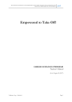These materials are developed for use in the implementation of Career Guidance Program for Grade 12. Reproduction of this material for non-DepEd initiated CGP is strictly prohibited. 2017 Empowered to Take Off! CAREER GUIDANCE PROGRAM Teacher’s Manual (As of August 30, 2017) Validation Copy – Module 8 Page 1 These materials are developed for use in the implementation of Career Guidance Program for Grade 12. Reproduction of this material for non-DepEd initiated CGP is strictly prohibited. 2017 Topic: Ready to Take Off! Introduction: Congratulations, your learners are now ready to create their Lifelong Learning Plan and to conduct personal and career development activities that will help them grow and advance in their life and career! From the previous module, your learners identified the rights and responsibilities of the employees and employers. They also learned the importance of work values and work ethics in becoming successful in one’s chosen career, and evaluated extrinsic and intrinsic motivation for sustainable work satisfaction. In this final module, you will guide your learners to conduct their career development gap analysis and develop their lifelong learning plan. Your learners should be aware that their lifelong learning plan will determine the kind of citizens they will be in the future. They will also be asked to write their original career philosophy expressing their love and passion in their chosen career. Fasten your seatbelt and get ready for exciting and challenging tasks ahead of you! Time Allotment: 120 Minutes Motivation Main Activity Lecturette Application Reflection Evaluation 15 minutes 25 minutes 20 minutes 35 minutes 15 minutes 10 minutes Materials: Computer/Laptop LCD Projector MS PPT Presentation Runway Mystery Words Game – Interactive PPT Career Destination Plot Lifelong Learning Plan Worksheet Letter to My Future Self Worksheet Meta strips (blue, red, and yellow) Crayons/colored pens/pentel pens Masking tapes White cartolina/manila paper Markers and Pencils Grade 11 Goal Setting Activity Sheet Module 5 Mission Statement Video Clip of Quotations 6 copies of Airplane templates for the Reflection Activity Validation Copy – Module 8 Page 2 These materials are developed for use in the implementation of Career Guidance Program for Grade 12. Reproduction of this material for non-DepEd initiated CGP is strictly prohibited. I. 2017 Objectives: At the end of this module, the learners are expected to: 1. Identify lifelong learning strategies to grow in a chosen career 2. Create a Lifelong Learning Plan 3. Express love and passion to one’s chosen career II. Motivation: (15 minutes) MS PowerPoint Interactive Game Runway Word Puzzle: Help Gio to take off from the runway by unscrambling the mystery words: LEVEL 5 C R E R E A LEVEL 4 F E I LEVEL 3 G P LEVEL 2 G H I LEVEL 1 G L D A N V C E A N E M T L L N O G A N A L L E N I S I S N A G R A Y N C O C A O A Note: In case, computers and projectors are not available to play this game, the teacher is encouraged to prepare an improvised instructional material for this activity or write the letters of the mystery words on the board. Process Questions: 1. How did you find the activity? 2. What do these mystery words mean to you? 3. Do you think that you can further grow or progress after landing a job, having a vocation or establishing a business? How? III. Main Activity: (25 Minutes) My Career Destination Plot Note: Before the activity, the teacher will draw the Career Destination Plot (see Appendix ___ on Manila Paper/Cartolina using a pentel pen) Procedure: Instruct the learners to review their Grade 11 Module 8 Goal-Setting Activity output and assess their accomplishments vis-à-vis their target goals. This will lead them to acknowledge their shortcomings and encourage them to desire knowing other lifelong learning strategies, which they will need upon they exit Senior High School and grow in their chosen careers and lives. Validation Copy – Module 8 Page 3 These materials are developed for use in the implementation of Career Guidance Program for Grade 12. Reproduction of this material for non-DepEd initiated CGP is strictly prohibited. 2017 Sequence of the activity: 1. Give back the Grade 11 Module 8 Goal-Setting activity sheets to their respective owners. 2. Instruct the learners to take a look at their Grade 11 Module 8 Goal-Setting Activity Sheets and review their long-term, mid-term, and short-term goals. 3. Distribute 3 meta-strips (1 blue, 1 red and 1 yellow) to each of the learners. 4. Instruct the learners to write on the blue meta strip the goals which they have already accomplished since they targeted them in Grade 11; on the red meta-strip the goals which they were not able to accomplish but which they think they really need to accomplish in 1to 5 years; and on the yellow meta-strip those goals which they still want to pursue in 6 to 20 years. Inform them that they are allotted 10 minutes for this activity. Mount the Career Destination Plot on the board/wall. Instruct the learner to post all their blue meta-strips at the bottom area labelled designated for achieved goals; the red meta-strips at the middle area labeled with 1-5 years target and the yellow meta-strips at the topmost area. Career Destination Plot Process Questions After the activity, ask the learners the following questions: 1. How did you find the activity? 2. What percent of your short-term goals did you already accomplish? Enumerate these goals. 3. What short-term goals were you not able to accomplish yet? What midterm and longterm goals do you still want to pursue? 4. What realization do you have now after comparing your accomplishment with your set target? (To deepen their realization on the lifelong learning gaps which they need to Validation Copy – Module 8 Page 4 These materials are developed for use in the implementation of Career Guidance Program for Grade 12. Reproduction of this material for non-DepEd initiated CGP is stri