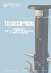 TONISCO B30 ® TONISCO Jr. ® OPERATION MANUAL DN20 (3/4") - DN100 (4") Hot Tapping Machine DN40(1 1/2") - DN200 (8") Hot tapping machine for TONISCO Hot Tapping Valves TONISCO System Oy TONISCO System Oy Kalkun kehätie 19 Kalkun kehätie 19 33330 Tampere FINLAND 33330 Tampere FINLAND Tel. +358 3 2611 724 Tel. +358 3 2611 724 www.tonisco.com www.tonisco.com TONISCO® B30 Hot Tapping Machine Page 1 4.1 4.1.1 4.1.2 4.1.3 4.1.4 4.2 4.2.1 4.2.2 4.2.3 4.2.4 4.2.5 4.3 4.3.1 4.3.2 4.3.3 4.3.4 4.3.5 4.3.6 4.4 4.5 4.6 Content Safety Instructions General Safety Requirements Safety Requirements at the Workside Special Risks The Significance of Symbols Used Safety Description TONISCO B30 Hot Tapping Machine Area of Use Specifications of the TONISCO B30 Drilling Device The TONISCO B30 in Combination with TONISCO Hot Tapping Valves Operational Instructions Branch Preparations before the Hot Tapping Removing the insulation Adjusting the Hot Tapping Valve Welding of the Hot Tap Valve to the Main Line Test the Valve Assembly of the Drilling Device Drilling Shaft Assembly for Hole Saws <100mm Drilling Shaft Assembly for Hole Saws >100mm Assembly of the Device to TONISCO Valve Installing the Feed Unit Installing the Drive Unit The Hot Tapping Process Pressure Test Starting the Driling Process Adjusting the Feed Releasing the Feed Unit Closing the Valve and Releasing the Pressure Disassembling the Machine Creating the New Branch Maintanance Plan and Spare Part List Using the Chain Block Page 1 2 2 3 4 4 5 5 5 7 8 8 8 8 8 9 9 9 10 11 12 12 13 13 14 15 17 17 18 18 19 22 A1 A2 A3 Attachments: Safety Instructions in Regards to the Electrical Driving Unit Warranty Terms & Coverage of the TONISCO Pipeline Hot Tapping Devices EC.Declaration of Conformity 23 24 25 1. 2. 2.1 2.2 2.3 2.4 3 3.1 3.2 3.3 4 TONISCO® B30 Hot Tapping Machine Page 2 2. Safety Instructions The user is well adviced to follow the safety instructions given in this manual. No warranty is given for incorrect usage of the equipment or applications outside the scope of the TONISCO user manuals ! If any questions occur or if you are unsure about certain aspects regarding the TONISCO hot tapping machines, please don't hesitate to contact TONISCO System Oy for support. It is recommended to limit the pressure in the system to 6-8 bar during the operation. 2.1. General Safety Requirements In the following user manual, the general and specific saftey instructions for the TONISCO B30 hot tapping machine are given and explained. The user is well adviced to read, understand and follow theses instructions carefully. Generally, only qualified and trained personal is allowed to execute hot tapping works with TONISCO hot tapping machines. Among the operators there should be a control system to ensure that the skills and knowledge of the right operation procedures are known and respected by all the working personnel taking part in hot tapping works. This user manual consists of 24 pages and has to always be available during the drilling works. It is NOT allowed to use the device outside the application area described in this user manual without the permission of drilling device manufacturer TONISCO System Oy. Be aware that additional requirements can be given at the specific workside ! For a safe usage of the equipment is essential to take the following general points into account: • Never use the machine without beeing aware of the hazards. Take all the aspects from this user manual and additional requirements into account ! • The staff must have adequate skills and training in all the necessary phases of the hot tapping work as well as in handling the equipment in question. • Make sure that you always have a copy of this user manual with you which is available during the WHOLE hot tapping process ! The Instruction may be downloaded from the manufacturers www-site (http://www.tonisco.com). • The application area for this device is limited to water based liquid fluids of fluid group 2 according to PED 97/23/EG. The system parameters shall never exceed 200 °C and/or 40 bar of pressure. See chapter 3 at what temperature and pressure the TONISCO B30 device can be used. It is recommended to reduce the pressure in the system to 6-8 bar during the operation. • Make sure that the chosen adapter including sealings is suitable for the system pressure, fluid type and temperature. • Always make sure that the equipment is not damaged before starting the hot tapping process. Only equipment in excellent condition shall be used. NEVER use the equipment if significant damages are observed ! • Handle the device carefully. Don't drop the machine and keep the tools clean • Only use original TONISCO spare parts for your own safety • Wear ear protection and a helmet • Do not change the two body parts or the body joint screws in the device TONISCO® B30 Hot Tapping Machine Page 3 • Any technical change at the hot tapping machine is NOT permitted ! • Wear suitable work clothes. Do not wear loose clothing or jewelry as they can be caught in moving parts. For the protection from hot fluid, wear heat resistant clothes, gloves and saftey glasses ! • Use common sense all the time in what you do - do not use the machines if you cannot fully concentrate on the work in question ! • Read and follow the instruction manual for using the chain block. Be carful not to squeeze your hand during the work. • Take the general accident prevention regulations into account. • Take the instructions for motor driven machines into acount. Consider especially the hazards from electric current and moving parts (attachment 1). The electric drive shall NEVER get wet. 2.2. Safety Requirements at the Workside The following aspects have to ALWAYS be checked at the workside BEFORE using the TONISCO B30 drilling device ! For drillings in district heating pipelines in Germany, the AGFW directive 432 has to be considered. •ALWAYS make sure that it is possible to close the chosen val