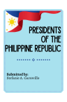 Presidents of the Philippine Republic Submitted by: Stefanie A. Garrovillo Emilio Aguinaldo was born on March 22, 1869, in Kawit, Cavite, Philippines. Nicknamed Miong, Aguinaldo was the seventh of eight children. His parents were of Chinese and Tagalog descent. His father, Carlos, died when Aguinaldo was just nine years old. Widowed, his mother, Trinidad, sent him to attend public school in Manila. After graduating from the University of Santo Thomas in Manila, Aguinaldo returned home to Kawit, where he developed a growing awareness of Filipino frustration with Spanish colonial rule. While serving as the head of barter in Manila, he joined the Pilar Lodge chapter of the Freemasonry in 1895. The Freemasonry was a government- and church-banned resistance group. It was through his role as municipal captain of this fraternity that Aguinaldo met Andres Bonifacio, a key figure in the fight to overthrow Spanish rule. Contributions: First (and only) president of the First Republic (Malolo Republic) Signed the Pact of Biak-na-Bato, creating a truce between the Spanish and Philippine revolutionaries Known as the President of the Revolutionary Government Led the Philippines in the Spanish-Philippine War and the American-Philippine War Youngest president, taking office at age 28 Longest-lived president, passing away at 94 Born Aug. 19, 1878 in Baler died Aug. 1, 1944 Quezon was the son of a schoolteacher and small landholder of Tagalog descent on the island of Luzon. He cut short his law studies at the University of Santo Tomás in Manila in 1899 to participate in the struggle for independence against the United States, led by Emilio Aguinaldo. After Aguinaldo surrendered in 1901, however, Quezon returned to the university, obtained his degree (1903), and practiced law for a few years. Convinced that the only way to independence was through cooperation with the United States, he ran for governor of Tayabas province in 1905. Once elected, he served for two years before being elected a representative in 1907 to the newly established Philippine Assembly. Contributions First Senate president elected as President of the Philippines First president elected through a national election First president under the Commonwealth Created National Council of Education Initiated women’s suffrage in the Philippines during the Commonwealth Approved Tagalog/Filipino as the national language of the Philippines Appears on the twenty-peso bill His body lies within the special monument on Quezon Memorial Circle José P. Laurel, in full José Paciano Laurel, (born March 9, 1891, Tanauan, Luzon, Philippines—died November 6, 1959, Manila), Filipino lawyer, politician, and jurist, who served as president of the Philippines (1943–45) during the Japanese occupation during World War II. Laurel was born and raised in a town south of Manila. His father served in the cabinet of Emilio Aguinaldo in the late 1890s. The younger Laurel received a law degree from the University of the Philippines in 1915 and an advanced jurisprudence degree in 1919 before earning a doctorate in civil law from Yale University in the United States in 1920. He entered politics and was elected to the Philippine Senate in 1925, serving there until he was appointed an associate justice of the Supreme Court in 1936. Contributions: Since the early 1960s, Laurel considered a legitimate president of the Philippines Organized KALIBAPI (Kapisanan sa Paglilingkod sa Bagong Pilipinas, or Association for Service to the New Philippines), a provisional government during Japanese occupation Declared Martial Law and war between the Philippines and the U.S./United Kingdom in 1944 With his family, established the Lyceum of the Philippines. Sergio Osmeña, (born Sept. 9, 1878, Cebu City, Phil.— died Oct. 19, 1961, Manila), Filipino statesman, founder of the Nationalist Party (Partido Nacionalista) and president of the Philippines from 1944 to 1946. Osmeña received a law degree from the University of Santo Tomás, Manila, in 1903. He was also editor of a Spanish newspaper, El Nuevo Día, in Cebu City. In 1904 the U.S. colonial administration appointed him governor of the province of Cebu and fiscal (district attorney) for the provinces of Cebu and Negros Oriental. Two years later he was elected governor of Cebu. In 1907 he was elected delegate to the Philippine National Assembly and founded the Nationalist Party, which came to dominate Philippine political life. Osmeña remained leader of the Nationalists until 1921, when he was succeeded by Manuel Quezon, who had joined him in a coalition. Made speaker of the House of Representatives in 1916, he served until his election to the Senate in 1923. Contributions: Became president at 65, making him the oldest person to hold office Joined with U.S. Gen. Douglas McArthur in Leyte on October 20, 1944 to begin restoration of Philippine freedom after Japanese occupation Philippine National Bank was rehabilitated and the country joined the International Monetary Fund during his presidency Bell Trade Act was approved by the U.S. Congress during his presidency Appears on the 50-peso bill Manuel Roxas, (born Jan. 1, 1892, Capiz, Phil.—died April 15, 1948, Clark Field, Pampanga), political leader and first president (1946–48) of the independent Republic of the Philippines. After studying law at the University of the Philippines, near Manila, Roxas began his political career in 1917 as a member of the municipal council of Capiz (renamed Roxas in 1949). He was governor of the province of Capiz in 1919–21 and was then elected to the Philippine House of Representatives, subsequently serving as Speaker of the House and a member of the Council of State. In 1923 he and Manuel Quezon, the president of the Senate, resigned in protest from the Council of State when the U.S. governor-general (Leonard Wood) began vetoing bills passed by the Philippine legislature. Roxas was elected president of the Commonwealth in 1946 as the nominee of 