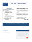 SSRN PAPER SUBMISSION PROCESS Easy Submission Steps Submission Checklist A free SSRN User Account is required to submit a paper. You will also need... Paper title (in English) Date the paper was written Abstract/summary of the paper (in English) Names, affiliations, and email addresses of all authors Copyright holder permission (if applicable) Paper, if uploaded, must be in PDF format To review SSRN’s Terms of Use Other Relevant Information to Include: SSRN (Social Science Research Network) is the number one research repository in the world, with networks that span across multiple disciplines. These research networks are micro-communities where researchers come together to share their research. The SSRN eLibrary hosts over 380,000 authors and over 800,000 abstracts. Many of the articles available on SSRN are shared years before they are published in a journal, and during the lifecycle of the article on SSRN we provide you with thorough analytics demonstrating an article’s impact. Submitting a paper to SSRN is a simple process. When your paper has been processed, or if we have questions, you will be notified via email. Working Paper Series Citation, if published Welcome to SSRN! Review the checklist above to make sure you have the details you need before you start. You must have an account on SSRN before proceeding. Link to SSRN login/register page. Follow the steps below to submit your paper to SSRN 1. Submit A Paper From the SSRN Home Page click on SUBMIT A PAPER from the top navigation tool bar 2. Terms of Use SSRN's Scholarly Paper Policy: SSRN is devoted to the public display and distribution of scholarly research in a broad range of fields. SSRN does not peer review submissions. A submission that is not part of the worldwide scholarly discourse in its field is not eligible for public distribution through the SSRN eLibrary and SSRN's search engine. NOTE: If you are submitting on behalf of an author, add yourself as an “Assistant” in the Author section. This will allow you to: submit on their behalf or make revisions. In order to add authors to the form, see Section 4: Adding Authors. Read the text that appears on the screen before proceeding. SSRN does not take copyright on your paper. You are giving SSRN a non-exclusive right to post and distribute your paper. You retain the right to remove your paper from SSRN at any time. Click here to read SSRN’s Terms of Use Click Continue to enter the submission form. 3. SSRN Submission Form Complete the Submission Form (details below) and click on Submit to SSRN NOTE: You must click on SAVE in each section of the form before submitting your paper. CAUTION: As you fill out the submission form click "Save" on each section to ensure that no work is lost. If you decide to leave the form before submitting the paper, you can come back and finish later if you clicked "Save" in each section and clicked on the "Save and Close All” link at the top of the submission form" before closing the browser window. To return to the form, go to your My Papers page accessible from your SSRN HQ page. The paper will be listed in the "In Process Papers" section of your My Papers Page and its status in the Status column will be "Not Submitted". To continue the in-process submission or revision click on the Edit button in the Edit Column for this submission. STATUS WINDOW The Status window on the right hand side of the page tracks your submission status. Each section will display the word “Complete” next to the area when content has been submitted in that section. Once you have completed each of the sections, the Submit to SSRN button will become available. NAVIGATING THE FORM The SSRN Submission Form is divided into seven sections. Click on each section to expand the contents. You can expand all the sections at once by click on the “Expand All Sections for Editing” link at the top of the form under the Abstract tab. Move your cursor up and down the Submission form noting the various editable fields and sections. The edit availability fields will be highlighted in yellow. Hover over the Question Mark on the section to view tips for that area. NOTE: It is very important that you click Save in the upper right hand corner of each section to save your input. Click on the Status window on the far right and select each section labeled “Incomplete.” Finish and save each incomplete section. SECTION 1: Upload the PDF 1. This is optional, but strongly encouraged. If you choose to upload a full text paper, it must be a PDF file, and the title in the document must match the title entered in the "Title" section on the submission form and all authors with their affiliations must be noted on the PDF. 2. Click the yellow section once to expand it, then click on the "Choose File" button to browse your hard drive to find the PDF file on your computer. 3. When located, double click on the full text paper (in PDF format) and the SSRN system will begin uploading it immediately. (You can use these same steps to replace a full text PDF that has already been uploaded.) 4. To download the full text paper and verify that it is the correct file, click on the "PDF" icon while this section is expanded. You will be prompted to Open or Save the pdf. Click Open to view the PDF within your browser or click Save to download and validate the PDF. 5. The checkbox "Add Paper URL to PDF" will be automatically checked. Once your submission has been processed this will add the following line to the bottom of the first two pages of your submitted PDF: "Electronic copy available at: http://ssrn.com/abstract=XXXX" (where XXXX is the abstract ID for your submission). This link allows readers to easily find your document online at SSRN. If you do not wish this URL to be added to your PDF file, uncheck the box. SECTION 2: Availability – Private or Public Making Your Paper Publicly Available By default a new submission is “Publicly Available”, which means it is searchable in the SSRN eL