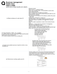 Business management Higher level Paper 2 2020 Study online at https://quizlet.com/_9qyb4c Features include: Easy to set up - no legal formalities Owner has complete control - not answerable to anyone else Owner keeps all profits Able to choose times and patterns of working Able to establish close personal relationships with staff (if any are employed) and customers The business can be based on the interests or skills of the owner - rather than working as an employee for a larger firm Unlimited liability - all of owner's assets are potentially at risk Often faces intense competition from bigger firms, e.g. food retailing Owner is unable to specialise in areas of the business that are most interesting - is responsible for all aspects of management Difficult to raise additional capital Long hours often necessary to make business pay Lack of continuity - as the business does not have separate legal status, when the owner dies the business ends too (a) State two features of a sole trader. [2] Budgeted figure ($) Actual figure ($) Sales revenues 5000 4000 Cost of goods sold 3000 2500 Gross profit 2000 1500 Expenses 1000 800 Net profit 1000 700 (b) Using information in Table 1, for JJ, prepare: (i) a profit and loss account for the budgeted figures and the actual figures (show all your working); [3] (ii) a variance analysis (show all your working). [3] Budgeted figure ($) Actual figure ($) Variance Sales revenues 5000 4000 1000 adverse Cost of goods sold 3000 2500 500 favourable Gross profit 2000 1500 500 adverse Expenses/overheads 1000 800 200 favourable Net profit 1000 700 300 adverse (c) Explain one possible economy of scale from which JJ has benefitted. [2] Working capital cycle is the period of time/interval between the actual cash paid for costs of production and the actual cash received from customers. It is the time period when net current assets is converted into cash. [2] (a) Define the term working capital cycle. [2] 1/9 Business management Higher level Paper 2 2020 Study online at https://quizlet.com/_9qyb4c (b) Prepare a monthly cash flow forecast for BB for the first four months of operation. [6] It is expected that candidates identify the main figures/categories that contributed to the negative cash flow. Clearly the options are either to reduce the cash outflow or increase the cash inflow. Candidates should provide concrete examples as application. There is no need to reproduce a new cash flow. It is expected the relevant terminology is used. As generally total revenue is increasing, apart from February, it is not expected that candidates suggest to increase total revenue inflow using marketing etc. Increase inflows: Candidates may suggest that BB should not give credit for the first months of operation. This will increase the inflow by a $1000. Dan can possibly ask the bank to give a loan in the first months of operation instead of the 4th months. $3000 will help BB to significantly reduce the initial negative cash flow. (c) Explain one strategy that BB could use to significantly improve Increasing the price of benches will increase inflows. However, this its forecasted cash flow for January 2021. [2] may reduce competitiveness. Reduce outflows: Dan can reduce his own salary of 1500, especially in the first month or so. Own salaries and admin are the most excessive/large outflow that contributes to the negative cash inflow. A smaller self-reward can significantly reduce the outflow and therefore the net cash flow. Dan can also negotiate his rental payments. Instead of paying a large sum of 1200 in January, monthly installments of $400 will significantly reduce the outflow in January Dan can also ask for at least one month's credit from his landlord. Do not accept an option of not buying the machinery/tools. Accept lease the machinery for a considerably lower fee per months. Generic comments like reduce donation, utilities etc will not make a significant impact. Hence not really applicable. (a) Describe one feature of a private limited company. [2] One feature of a private limited company is that The number of shareholders may be limited to 20 depending on the country in which the business is owned. Shareholders have to be invited to join the board of directors as shares cannot be advertised Owners of the business will enjoy limited liability, which indicates that if a business experiences a financial collapse then the owners will only be liable for the capital contributed. There is normally no legal requirement to publish detailed financial accounts for the public or provide quarterly forecasts to an exchange or supervisory committee unless it is for corporate tax purposes. 2/9 Business management Higher level Paper 2 2020 Study online at https://quizlet.com/_9qyb4c Theoretical answer - award [1] for each advantage and disadvantage: A mission statement allows a business to state its current purpose and can be used to position the organisation in the minds of its stakeholders. It can be a motivating force for employees and also provide a (b) Explain one advantage and one disadvantage for MC of having goal/purpose a mission statement. [4] which potential investors may be attracted to However, some mission statements can only provide a vague goal or objective and a mission statement does not indicate how this objective will be achieved which could make them misleading or have little value. Focussed mission statements do require management time and resources to be effective. Theoretical advantage and disadvantage - award [1] for each. Advantages: . Venture capital provides the company with an opportunity to expand. This would not have been possible through other methods like bank loans. Bank loans require collateral and there is an obligation to repay the loan. However, in venture capital, the investors themselves are ready to take the risk as they believe in the company's long-term success. Therefore, venture capital financing is beneficial for start-ups with high initial cost and