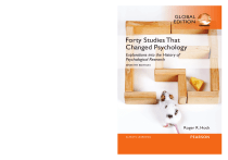 Global edition Forty Studies that Changed Psychology Explorations into the History of Psychological Research SeventH edition Roger R. Hock FO RTY STUDIES TH AT CHANG ED PSYC H OLOG Y This page is intentionally left blank. FORTY STU D I E S TH AT CHAN G E D PSYCHO LO G Y Explorations into the History of Psychological Research Global Edition Seventh Edition Roger R. Hock, Ph.D. Mendocino College Boston Columbus Indianapolis New York San Francisco Upper Saddle River Amsterdam Cape Town Dubai London Madrid Milan Munich Paris Montréal Toronto Delhi Mexico City São Paulo Sydney Hong Kong Seoul Singapore Taipei Tokyo Editorial Director: Craig Campanella Editor in Chief: Jessica Mosher Head of Learning Asset Acquisition, Global Edition: Laura Dent Executive Acquisitions Editor: Stephen Frail Editorial Assistant: Madelyn Schricker Acquisitions Editor, Global Edition: Vrinda Malik Project Editor, Global Edition: Daniel Luiz Media Producer, Global Edition: M. Vikram Kumar Senior Manufacturing Controller, Production, Global Edition: Trudy Kimber Director of Marketing: Brandy Dawson Managing Editor: Denise Forlow Senior Project Manager/Liaison: Harriet Tellem Operations Specialist: Diane Peirano Senior Manufacturing and Operations Manager for Arts & Sciences: Mary Fischer Cover Designer: Lumina Datamatics Cover Photo: © Alexey Losevich/Shutterstock Full-Service Project Management: GEX Publishing Services Pearson Education Limited Edinburgh Gate Harlow Essex CM20 2JE England and Associated Companies throughout the world Visit us on the World Wide Web at: www.pearsonglobaleditions.com © Pearson Education Limited 2015 The rights of Roger R. Hock to be identified as the author of this work have been asserted by him in accordance with the Copyright, Designs and Patents Act 1988. Authorized adaptation from the United States edition, entitled Forty Studies That Changed Psychology: Explorations into the History of Psychological Research, 7th edition, ISBN 978-0-205-91839-3, by Roger R. Hock, published by Pearson Education © 2013. All rights reserved. No part of this publication may be reproduced, stored in a retrieval system, or transmitted in any form or by any means, electronic, mechanical, photocopying, recording or otherwise, without either the prior written permission of the publisher or a license permitting restricted copying in the United Kingdom issued by the Copyright Licensing Agency Ltd, Saffron House, 6–10 Kirby Street, London EC1N 8TS. All trademarks used herein are the property of their respective owners. The use of any trademark in this text does not vest in the author or publisher any trademark ownership rights in such trademarks, nor does the use of such trademarks imply any affiliation with or endorsement of this book by such owners. ISBN 10: 1-292-07096-X ISBN 13: 978-1-292-07096-4 (Print) ISBN 13: 978-1-292-07097-1 (PDF) British Library Cataloguing-in-Publication Data A catalogue record for this book is available from the British Library 14 13 12 11 10 9 8 7 6 5 4 3 2 1 Typeset in New Baskerville Std Roman by GEX Publishing Services. Printed and bound by Courier Westford in The United States of America. For Diane Perin Hock and Caroline Mei Perin Hock This page is intentionally left blank. CONTENTS Preface 11 CHAPTER I THE BIOLOGICAL BASIS OF HUmAN BEHAvIOR 19 reading 1: One Brain Or TwO? 19 Gazzaniga, M. S. (1967). The split brain in man. Scientific American, 217(2), 24–29. reading 2: MOre exPerience = Bigger Brain 30 Rosenzweig, M. R., Bennett, E. L., & Diamond, M. C. (1972). Brain changes in response to experience. Scientific American, 226(2), 22–29. reading 3: are YOu a “naTural”? 37 Bouchard, T., Lykken, D., McGue, M., Segal, N., & Tellegen, A. (1990). Sources of human psychological differences: The Minnesota study of twins reared apart. Science, 250, 223–229. reading 4: waTch OuT fOr The Visual cliff! 45 Gibson, E. J., & Walk, R. D. (1960). The “visual cliff.” Scientific American, 202(4), 67–71. CHAPTER II CONSCIOUSNESS AND THE SENSES 53 reading 5: Take a lOng lOOk 54 Fantz, R. L. (1961). The origin of form perception. Scientific American, 204, 61–72. reading 6: TO sleeP, nO dOuBT TO dreaM . . . 60 Aserinsky, E., & Kleitman, N. (1953). Regularly occurring periods of eye mobility and concomitant phenomena during sleep. Science, 118, 273–274. Dement, W. (1960). The effect of dream deprivation. Science, 131, 1705–1707. reading 7: as a caTegOrY, iT’s a naTural 67 Rosch, Eleanor H. (1973). Natural categories. Cognitive Psychology, 4, 328–350. reading 8: acTing as if YOu are hYPnOTized 75 Spanos, N. P. (1982). Hypnotic behavior: A cognitive, social, psychological perspective. Research Communications in Psychology, Psychiatry, and Behavior, 7, 199–213. 7 8 Contents CHAPTER III CONDITIONING AND LEARNING 83 reading 9: iT’s nOT JusT aBOuT saliVaTing dOgs! 83 Pavlov, I. P. (1927). Conditioned reflexes. London: Oxford University Press. reading 10: liTTle eMOTiOnal alBerT 90 Watson, J. B., & Rayner, R. (1920). Conditioned emotional responses. Journal of Experimental Psychology, 3, 1–14. reading 11: knOck wOOd! 96 Skinner, B. F. (1948). Superstition in the pigeon. Journal of Experimental Psychology, 38, 168–172. reading 12: see aggressiOn . . . dO aggressiOn! 103 Bandura, A., Ross, D., & Ross, S. A. (1961). Transmission of aggression through imitation of aggressive models. Journal of Abnormal and Social Psychology, 63, 575–582. CHAPTER Iv COGNITION, mEmORY, AND INTELLIGENCE 111 reading 13: whaT YOu exPecT is whaT YOu geT 111 Rosenthal, R., & Jacobson, L. (1966). Teachers’ expectancies: Determinates of pupils’ IQ gains. Psychological Reports, 19, 115–118. reading 14: JusT How are YOu inTelligenT? 118 Gardner, H. (1983) Frames of mind: The theory of multiple intelligences. New York: Basic Books. reading 15: MaPs in YOur Mind 128 Tolman, E. C. (1948). Cognitive maps in rats and men. Psychological Review, 55, 189–208. reading 16: Thanks fOr The MeMOr