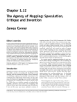 Chapter 1.12 The Agency of Mapping: Speculation, Critique and Invention James Corner Editors’ overview Corner’s writing evokes the emancipatory potential of mapping, at a time when it was much more usual to demonise it as a form of elite discourse, facilitating governance by the powerful. Corner draws instead on the creative potential of the medium, deploying the figures of Gille Deleuze and Felix Guattari to demonstrate the constructive agency that can be enacted through cartographic practice in the fields of architecture, landscape and urban planning. He explores four ways in which new practices of mapping are emerging in contemporary design and planning, which he terms as: ‘drift’, ‘layering’, ‘game-board’ and ‘rhizome’. Corner concludes that mapping is not endless data accumulation but is rather better seen as a practice of relational reasoning that intelligently unfolds new realities out of existing constraints. Originally published in 1999: Chapter 10 in Mappings (ed. Denis Cosgrove), Reaktion, London, pp. 213–252. Introduction Mapping is a fantastic cultural project, creating and building the world as much as measuring and describing it. Long affiliated with the planning and design of cities, landscapes and buildings, mapping is particularly instrumental in the construing and constructing of lived space. In this active sense, the function of mapping is less to mirror reality than to engender the re-shaping of the worlds in which people live. While there are countless examples of authoritarian, simplistic, erroneous and coercive acts of mapping, with reductive effects upon both individuals and environments, I focus in this essay upon more optimistic revisions of mapping practices (Wood 1992; Monmonier 1991; Pickles 1992; Scott 1998; Hall 1992). These revisions situate mapping as a collective enabling enterprise, a project that both reveals and realises hidden potential. Hence, in describing the ‘agency’ of mapping, I do not mean to invoke agendas of imperialist technocracy and control but rather to suggest ways in which mapping acts may emancipate potentials, enrich experiences and diversify worlds. We have been adequately cautioned about mapping as a means of projecting power knowledge, but what about mapping as a productive and liberating instrument, a world-enriching agent, especially in the design and planning arts? As a creative practice, mapping precipitates its most productive effects through a finding that is also a founding; its agency lies in neither reproduction nor imposition but rather in uncovering realities previously unseen or unimagined, even across seemingly exhausted grounds. Thus, mapping unfolds potential; it re-makes territory over and over again, each time with new and diverse consequences. Not all maps accomplish this, however; some simply reproduce what is already known. These are more ‘tracings’ than maps, delineating patterns but revealing nothing new. In describing and advocating more open-ended forms of creativity, philosophers Gilles Deleuze and Felix Guattari (1987: 12) declare: ‘Make a map not a tracing!’ They continue: What distinguishes the map from the tracing is that it is entirely oriented toward an experimentation in contact with the real. The map does not reproduce an unconscious closed in upon itself; it constructs the unconscious. It fosters connections between fields, the removal of blockages on The Map Reader: Theories of Mapping Practice and Cartographic Representation, First Edition. Edited by Martin Dodge, Rob Kitchin and Chris Perkins. © 2011 John Wiley & Sons, Ltd. Published 2011 by John Wiley & Sons, Ltd. ISBN: 978-0-470-74283-9 90 CHAPTER 1.12 THE AGENCY OF MAPPING: SPECULATION, CRITIQUE AND INVENTION bodies without organs, the maximum opening of bodies without organs onto a plane of consistency . . . The map has to do with performance, whereas the tracing always involves an ‘alleged competence.’ The distinction here is between mapping as equal to what is (‘tracing’) and mapping as equal to what is and to what is not yet. In other words, the unfolding agency of mapping is most effective when its capacity for description also sets the conditions for new eidetic and physical worlds to emerge. Unlike tracings, which propagate redundancies, mappings discover new worlds within past and present ones; they inaugurate new grounds upon the hidden traces of a living context. The capacity to reformulate what already exists is the important step. And what already exists is more than just the physical attributes of terrain (topography, rivers, roads, buildings) but includes also the various hidden forces that underlie the workings of a given place. These include natural processes, such as wind and sun; historical events and local stories; economic and legislative conditions; even political interests, regulatory mechanisms and programmatic structures. Through rendering visible multiple and sometimes disparate field conditions, mapping allows for an understanding of terrain as only the surface expression of a complex and dynamic imbroglio of social and natural processes. In visualising these interrelationships and interactions, mapping itself participates in any future unfoldings. Thus, given the increased complexity and contentiousness that surrounds landscape and urbanism today, creative advances in mapping promise designers and planners greater efficacy in intervening in spatial and social processes. Avoiding the failure of universalist approaches toward master planning and the imposition of state controlled schemes, the unfolding agency of mapping may allow designers and planners not only to see certain possibilities in the complexity and contradiction of what already exists but also to actualise that potential. This instrumental function is particularly important in a world where it is becoming increasingly difficult to both imagine and actually to create anything outside of the normative. The agency