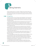 5 Being learners Learning a language involves, for our students, challenges to their cognitive abilities, their self-esteem and, frequently, their social skills. It is, in Rebecca Oxford’s words, a ‘courageous process’ (Oxford 2013: 105). It is thus vitally important to know how our learners feel, what they need and what helps them to be successful. Such knowledge is half the secret of how to be a good teacher. 5.1 The age factor The age of the students in front of us will be a major deciding factor in how we teach them and what we ask them to do. People of different ages have different needs, competences and cognitive skills; we might expect children of primary age to acquire much of a foreign language through play, for example, whereas for adults we can reasonably expect a greater use of abstract thought. One of the most common beliefs about age and language learning is that young children learn faster and more effectively than any other age group. Most people can think of examples which appear to bear this out – such as when children move to a different country and appear to pick up a new language with remarkable ease. However, as we shall see, this is not always true of children, even in that situation; indeed, the story of child language facility may be something of a myth. It is certainly true that children who learn a new language early have a facility with the pronunciation which is sometimes denied older learners. Lynne Cameron, for example, suggests that children ‘reproduce the accent of their teachers with deadly accuracy’ (2003: 111). Carol Read recounts how she hears a young student of hers saying Listen. Quiet now. Attention, please! in such a perfect imitation of the teacher that ‘the thought of parody passes through my head’ (2003: 7). However, apart from pronunciation ability, it appears that older children (that is, children from about the age of 12 and through adolescence) actually do better as language learners than their younger counterparts, given the right circumstances (Lightbown and Spada 2013: 92–98). It is not being suggested that young children cannot acquire second languages successfully. As we have already said, many of them achieve significant competence, especially in bilingual situations. But English is increasingly being taught at younger and younger ages, and while this may have great benefits in terms of citizenship, democracy, tolerance and multiculturalism, for example, such early learning does not always appear to offer the substantial success often claimed for it – especially when there is ineffective transfer of skills and methodology from primary to secondary school. The relative superiority of older children as language learners (especially in formal educational settings) may have something to do with their increased cognitive abilities, which allow them to benefit from more abstract approaches to language teaching. It may 80 M05_PELT_MEB_GLB_0094_U05.indd 80 18/02/2015 14:46 Being learners also have something to do with the way they are taught or, quite simply, the number of hours that are given to English at the different ages. What this suggests is that if we really want young learner teaching to be successful, we will have to think carefully about our goals for the learners, the amount of time we can give for the enterprise, and the type of educational experience we wish to give them. Singing songs and doing arts and craft work in the English class may be extremely enjoyable for younger learners, but unless there is enough time to expand on it for appropriate linguistic development, it may not be enough for successful acquisition. Lastly, we need to consider the ‘critical period hypothesis’ (CPH). This is the belief (first proposed by Penfield and Roberts (1959) and popularised by Lennenberg (1967)) that there is a ‘critical period’ for language learning, which ends sometime around puberty. This belief would seem to be supported by the observation that older children, and others post-puberty, generally seem to have greater difficulty in approximating native-speaker pronunciation than young children do – although this may sometimes be a deliberate (or even subconscious) retention of their cultural and linguistic identity. But the idea that there is an optimal age for language learning becomes less tenable when, as we have seen, older children show themselves to be effective language learners. Nor is there evidence to suggest that postpubescent learners in general are necessarily ineffective language learners. Anyway, they have compensatory mechanisms such as their ability to think about what they are doing and use their developed intellectual skills to understand how language works – and these have nothing to do with any critical period. In what follows, we will consider students at different ages as if all the members of each age group are the same. Yet each student is an individual, with different experiences both in and outside the classroom. Comments here about young children, teenagers and adults can only be generalisations. Much also depends upon individual learner differences (see 5.2) and upon motivation (see 5.3). 5.1.1 Young learners Various theorists have described the way that children develop, and the various ages and stages they go through. Jean Piaget suggested that children start at the sensorimotor stage, and then proceed through the intuitive stage and the concrete-operational stage before finally reaching the formal operational stage, where abstraction becomes increasingly possible. Leo Vygotsky (see page 112) emphasised the place of social interaction in child language development. He suggested a Zone of Proximal Development (ZPD) where children are ready to learn something new, provided such new knowledge is ‘scaffolded’ (i.e. introduced in stages in a helpful way) by a ‘knower’ (someone who is more knowledgeable than the learner and who, thus, can provide scaffolding). Both Erik Er
