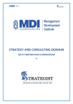 STRATEGY AND CONSULTING DOMAIN GD-PI PREPARATION COMPENDIUM By Contents Introduction to Strategy ...................................................................................................................... 3 What is Strategy? ....................................................................................................................... 3 Why Strategy?............................................................................................................................. 3 Classification of Strategy ..................................................................................................................... 4 Organic Strategies ...................................................................................................................... 4 Corporate Strategy........................................................................................................... 4 Business-Level Strategy .................................................................................................. 6 Functional Strategy .......................................................................................................... 8 Operational Strategy ........................................................................................................ 8 Inorganic Strategies ................................................................................................................... 9 Mergers and Acquisitions ................................................................................................ 9 Strategic Alliance ............................................................................................................ 13 Strategic Frameworks and Analysis ................................................................................................. 14 Internal Capabilities ................................................................................................................. 14 SW Analysis ..................................................................................................................... 14 VRIO Framework ............................................................................................................ 15 Value Chain Analysis ...................................................................................................... 15 BCG Matrix ...................................................................................................................... 17 McKinsey 7S Model ........................................................................................................ 18 GE McKinsey Matrix ....................................................................................................... 19 IFE & EFE Matrices......................................................................................................... 21 Ansoff Matrix ................................................................................................................... 21 External Analysis....................................................................................................................... 22 OT Analysis ..................................................................................................................... 22 Porter’s Five Forces ........................................................................................................ 23 Competitor/ Benchmarking Analysis............................................................................ 25 PESTEL ............................................................................................................................. 26 Introduction to Strategy What is Strategy? Strategy is a well-defined roadmap of an organization. It defines the overall mission, vision, and direction of an organization. The objective of a strategy is to maximize an organization’s strengths and to minimize the strengths of the competitors. It is about integrating organizational activities and utilizing and allocating the scarce resources within the organizational environment to meet the present objectives. Strategy, in short, bridges the gap between “where we are” and “where we want to be”. o o o o o A firm’s strategy is defined as its theory about how to gain competitive advantages A good strategy is a strategy that generates such advantages Each of the theories—like all theories—is based on a set of assumptions and hypotheses about the way competition in an industry is likely to evolve and how that evolution can be exploited to earn a profit. The greater the extent to which these assumptions and hypotheses accurately reflect how competition in this industry evolves, the more likely it is that a firm will gain a competitive advantage from implementing its strategies. If these assumptions and hypotheses turn out not to be accurate, then a firm’s strategies are not likely to be a source of competitive advantage. But here is the challenge; it is usually very difficult to predict how competition in an industry will evolve, and so it is rarely possible to know for sure that a firm is choosing the right strategy. Therefore, a firm’s strategy is almost always a theory: It’s a firm’s best bet about how competition is going to evolve and how that evolution can be exploited for competitive advantage. Fig. The Strategic Management Process: This process is a set of analyses and decisions that increase the likelihood that a firm will be able to choose a “good” strategy, that is, a strategy that will lead to a competitive advantage Why Strategy? There are at least three very compelling reasons why it is important to study strategy and the strategic management process now: 1. A firm’s strategy can have a huge impact on its competitive advantage. Your career opportunities in a firm are largely determined by that firm’s competitive advantage. Thus, in choosing a place to begin or continue your career, understanding a firm’s theory of how it