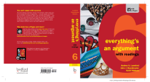 You can’t argue with success This book has e-Pages and more! Use the code printed on the inside front cover of this book to get access to readings with video, audio, and images — only available online. Note: If your code does not work, it might be expired. You can purchase access to e-Pages for Everything’s an Argument with Readings at bedfordstmartins.com/everythingsanargument/epages. For free videos about writing, reliable research links, and more, visit bedfordstmartins.com/everythingsanargument. Everything’s an Argument with Readings is available in a variety of e-book formats. everything’s an argument This best-selling combination rhetoric and thematic reader shows you how to analyze all kinds of arguments — not just essays and editorials, but clothes, smartphone apps, ads, and Web site designs — and then how to use what you learn to write your own effective arguments. Newly streamlined and featuring e-Pages that take argument online, its signature engaging, informal, and jargon-free instruction emphasizes cultural currency, humor, and visual argument. Lunsford Ruszkiewicz Walters with readings with e-Pages everything’s an argument with readings BEDFORD ST. MARTIN’S ISBN 978-1-4576-0604-5 Andrea A. Lunsford John J. Ruszkiewicz Keith Walters mech_EAArgument6-wReadings-SE-091312 You’ve Got Access! Everything’s an Argument with Readings + e-Pages bedfordstmartins.com/everythingsanargument/epages Your book goes beyond the printed page. e-Pages for Everything’s an Argument with Readings present online readings that you can read, see, hear, and respond to in a whole new way. Watch a short clip by the White House advocating for changes to the way millionaires pay taxes and analyze how the arguments appeal to Americans’ sense of fairness. Note: If the code below does not work, it might be expired. You can purchase access to e-Pages at bedfordstmartins.com /everythingsanargument/epages. More help 24/7 bedfordstmartins.com/everythingsanargument The Student Site for Everything’s an Argument with Readings gives you free resources to support your writing and access to e-Pages that extend your book online—all in one place. For access to e-Pages: 1. Go to bedfordstmartins.com/everythingsanargument/epages. 2. Click the e-Pages tab and enter your student access code. Enter it exactly as it appears below, including any dashes, and follow the instructions. Analyze and respond to e-Pages for Everything’s an Argument with Readings. For technical support: Watch videos of real writers. • 1-800-936-6899 • bfwpub.com/techsupport See reliable research links. Find more information about authors. STUDENT ACCESS CODE Try a tutorial on visual analysis. See sample documents in design. Find help with citing sources. Build a bibliography. Find checklists for better writing. Instructors: Try exercises for grammar and writing. Go to bedfordstmartins.com/everythingsanargument/epages to get instructor access. Create a study plan for grammar and writing. ISBN 978-1-4576-0604-5 mech_EAArgument6-wReadings-SE-091312 A note about the cover Is everything really an argument? Seeing the images on the cover might make you wonder. The protests from the Arab Spring of 2011, for example, instantly call to mind the very public unrest across Egypt and the Middle East. But what does an image of a beauty pageant tiara say about a person who covets one? How does a smartphone argue for or against the ways that technology is shaping how we communicate with one another? The “99%” sign from an Occupy movement protest, familiar to many who have followed recent political debate, invites you to think about how policy conversations take place, as well as about how demographic information and self-identification shape the American public. And as for the hybrid car and its plug, what’s your best call? A plea for us to be more responsible energy consumers? Imposed limits on the freedom that automobiles have afforded us? What’s your take? 00_LUN_06045_FM_i-xxxiv.indd 1 10/1/12 9:06 AM this page left intentionally blank 00_LUN_06045_FM_i-xxxiv.indd 2 10/1/12 9:06 AM everything’s an argument/with readings 00_LUN_06045_FM_i-xxxiv.indd 3 10/1/12 9:06 AM 00_LUN_06045_FM_i-xxxiv.indd 4 10/1/12 9:07 AM Sixth Edition argument arguments everything’s an with readings Argument Arguments Andrea A. Lunsford Stanford University John J. Ruszkiewicz University of Texas at Austin Keith Walters Portland State University Bedford / St. Martin’s Boston ◆ New York 00_LUN_06045_FM_i-xxxiv.indd 5 10/1/12 9:07 AM For Bedford/St. Martin’s Senior Developmental Editor: Adam Whitehurst Senior Production Editor: Ryan Sullivan Senior Production Supervisor: Dennis J. Conroy Executive Marketing Manager: Molly Parke Editorial Assistant: Nicholas McCarthy Copy Editor: Steven Patterson Indexer: Melanie Belkin Photo Researcher: Julie Tesser Permissions Manager: Kalina K. Ingham Art Director: Lucy Krikorian Text Design: Anna Palchik and Graphic World Inc. Cover Design: Billy Boardman Cover Photos: (top to bottom) © Mohammed Huwais / AFP / Getty Images; © Bernhard Lang / Getty Images; © Karen Bleier / AFP / Getty Images; © Fry Design Ltd / Getty Images; © The Image Bank / Getty Images Composition: Graphic World Inc. Printing and Binding: RR Donnelley and Sons President, Bedford/St. Martin’s: Denise B. Wydra Presidents, Macmillan Higher Education: Joan E. Feinberg and Tom Scotty Editor in Chief: Karen S. Henry Director of Development: Erica T. Appel Director of Marketing: Karen R. Soeltz Production Director: Susan W. Brown Associate Production Director: Elise S. Kaiser Managing Editor: Shuli Traub Copyright © 2013, 2010, 2007, 2004 by Bedford/St. Martin’s All rights reserved. No part of this book may be reproduced, stored in a retrieval system, or transmitted in any form or by any means, electronic, mechanical, photocopying, recording, or otherwise, except as may be expressly permitted by the applicable copyright statutes o