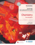 Cambridge International AS & A Level Chemistry Second edition Peter Cann and Peter Hughes 480230_FM_Che_SB_2E_i-viii.indd 1 2/27/20 7:50 AM Acknowledgements Every effort has been made to trace all copyright holders, but if any have been inadvertently overlooked, the Publishers will be pleased to make the necessary arrangements at the first opportunity. The Publishers would like to thank the following for permission to reproduce copyright material. Photo credits: p.1 © The Granger Collection, NYC/TopFoto; p.2 tl © Jeff Blackler/Shutterstock Rex Features; tr © Bicipici/Alamy Stock Photo; bc © Nils Jorgensen/Rex Features; br © Chris Lofty – Fotolia; p.3 © Eye Of Science/Science Photo Library; p.16 © lowefoto/Alamy Stock Photo; p.25 © Shutterstock.com; p.30 © Geoff Tompkinson/Science Photo Library; p.82 © Zygimantas Cepaitis – Fotolia; p.91 tl © Dr. Jeremy Burgess/Science Photo Library; tr © Alfred Pasieka/Science Photo Library; p.98 t © David Hughes/Hemera/Thinkstock; p.98 b © Paul Fleet/Alamy Stock Photo; p.101 bc © Charles D. Winters/Science Photo Library; br © Brian Cosgrove/Dorling Kindersley/Getty Images; p.116 © Cozyta – Fotolia; p.117 © fuyi – Fotolia; p.118 © Martin, Custom Medical Stock Photo/Science Photo Library; p.121 © NASA Marshall Space Flight Center (NASA-MSFC); p.147 l © Martyn F. Chillmaid/Science Photo Library; p.176 tl © The Granger Collection, NYC/TopFoto; bl © The Granger Collection, NYC/TopFoto; p.200 © Science History Images/Alamy Stock Photo; p.219 tl © Dr. Richard Roscoe/Visuals Unlimited, Inc./Science Photo Library; bl © JH Photo/Alamy Stock Photo; r © Vanessa Miles/Alamy Stock Photo; p.263 © Paul Rapson/Science Photo Library; p.264 © Simon Fraser/Science Photo Library; p.292 © Jean Chung/Bloomberg News via Getty Images; p.307 l © Nasa/Science Photo Library; r © PUNIT PARANJPE/AFP/Getty Images; p.319 © Andrew Lambert Photography/Science Photo Library; p.321 l © Power And Syred/Science Photo Library; c © Roger Job/Reporters/Science Photo Library; r © Tom Parker/Shutterstock. com; p.343 © TEK Image/Science Photo Library; p.386 © Science Photo Library; p.389 tl © Christopher Bradshaw – Fotolia; tr © DEX Images Images/Photolibrary Group Ltd/Getty Images; p.390 tl © Claude Nuridsany & Marie Perennou/Science Photo Library; tr © B.A.E. Inc./Alamy Stock Photo; bl © Imagestate Media (John Foxx); br © Charles D. Winters/Science Photo Library; p.391 © Dr Kari Lounatmaa/ Science Photo Library; p.393 tl © David Ducros/Science Photo Library; tc © Ace Stock Limited/Alamy Stock Photo; tr © Peter Menzel/ Science Photo Library; p.403 © Andrew Lambert Photography/Science Photo Library; p.416 © Malcolm Fielding, Johnson Matthey Plc/ Science Photo Library; p.435 © Andrew Lambert Photography/Science Photo Library; p.442 © Andrew Lambert Photography/Science Photo Library; p.448 tl © capude1957 – Fotolia; bl © Bygone Collection/Alamy Stock Photo; p.449 © Georgios Kollidas/Alamy Stock Photo; p.454 © Libby Welch/Alamy Stock Photo; p.490 © INTERFOTO/Alamy Stock Photo; p.507 © Roger Eritja/Alamy Stock Photo; p.511 © INTERFOTO/Personalities/Alamy Stock Photo; p.525 l © Marc Pelissier/stock.adobe.com; c © mimagephotos/stock.adobe.com; p.536 bl © Don Fawcett/Science Photo Library; br © Wade Davis/Archive Photos/Getty Images; p.547 © J.C. Revy, Ism/Science Photo Library; p.556 l © Leslie Garland Picture Library/Alamy Stock Photo; cl © Dundee Photographics/Alamy Stock Photo; r © paramat1977 – Fotolia; p.557 © Aberfeldy Golf Club; p.560 © Fraunhofer IFAM; p.561 © Harris Shiffman – Fotolia; p.562 © helenlbuxton – Fotolia; p.579 © James King-Holmes/Science Photo Library; p.580 tl © Geoff Tompkinson/Science Photo Library; tr © James King-Holmes/Science Photo Library; © Martyn F. Chillmaid p.2; p.7; p.9; p.13; p.18; p.90; p.97; p.137; p.142; p.144; p.146; p. 147 c, r; p.170; p.173; p.228; p.229; p.239; p.240; p.241; p.247; p.259; p.277; p.282; p.298; p.313; p.330; p.331; p.366; p.367; p.368; p.470; p.477; p.480; p.482; p.493; p.525 r; p.538; p.566 cr; p.600; p.605; Although every effort has been made to ensure that website addresses are correct at time of going to press, Hodder Education cannot be held responsible for the content of any website mentioned in this book. It is sometimes possible to find a relocated web page by typing in the address of the home page for a website in the URL window of your browser. Third-party websites and resources referred to in this publication have not been endorsed by Cambridge Assessment International Education. Cambridge International copyright material in this publication is reproduced under licence and remains the intellectual property of Cambridge Assessment International Education. Questions from Cambridge International AS & A Level Chemistry papers are reproduced by permission of Cambridge Assessment International Education. Cambridge Assessment International Education bears no responsibility for the example answers to questions taken from its past question papers which are contained online. Sample answers have been written by the authors. In examinations, the way marks are awarded may be different. References to assessment and/or assessment preparation are the publisher’s interpretation of the syllabus requirements and may not fully reflect the approach of Cambridge Assessment International Education. Cambridge International recommends that teachers consider using a range of teaching and learning resources in preparing learners for assessment, based on their own professional judgement of their students’ needs. Questions from OCR past papers are reproduced by permission of OCR (ocr.org.uk). OCR bears no responsibility for the example answers to questions taken from its past question papers which are contained online. Hachette UK’s policy is to use papers that are natural, renewable and recyclable products and made from wood grown in wellmanaged forests and other c