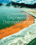 5th Edition Fundamentals of Engineering Thermodynamics Michael J. Moran The Ohio State University Howard N. Shapiro Iowa State University of Science and Technology John Wiley & Sons, Inc. Fundamentals of Engineering Thermodynamics 5th Edition Fundamentals of Engineering Thermodynamics Michael J. Moran The Ohio State University Howard N. Shapiro Iowa State University of Science and Technology John Wiley & Sons, Inc. Copyright © 2006 John Wiley & Sons Ltd, The Atrium, Southern Gate, Chichester, West Sussex PO19 8SQ, England Telephone (+44) 1243 779777 Email (for orders and customer service enquiries): cs-books@wiley.co.uk Visit our Home Page on www.wiley.com All Rights Reserved. No part of this publication may be reproduced, stored in a retrieval system or transmitted in any form or by any means, electronic, mechanical, photocopying, recording, scanning or otherwise, except under the terms of the Copyright, Designs and Patents Act 1988 or under the terms of a licence issued by the Copyright Licensing Agency Ltd, 90 Tottenham Court Road, London W1T 4LP, UK, without the permission in writing of the Publisher. Requests to the Publisher should be addressed to the Permissions Department, John Wiley & Sons Ltd, The Atrium, Southern Gate, Chichester, West Sussex PO19 8SQ, England, or emailed to “mailto:permreq@wiley.co.uk”, or faxed to (+44) 1243 770620. Designations used by companies to distinguish their products are often claimed as trademarks. All brand names and product names used in this book are trade names, service marks, trademarks or registered trademarks of their respective owners. The Publisher is not associated with any product with any product or vendor mentioned in this book. This publication is designed to provide accurate and authoritative information in regard to the subject matter covered. It is sold on the understanding that the Publisher is not engaged in rendering professional services. If professional advice or other expert assistance is required, the services of a competent professional should be sought. Other Wiley Editorial Offices John Wiley & Sons Inc., 111 River Street, Hoboken, NJ 07030, USA Jossey-Bass, 989 Market Street, San Francisco, CA 94103-1741, USA Wiley-VCH Verlag GmbH, Boschstr. 12, D-69469 Weinheim, Germany John Wiley & Sons Australia Ltd, 33 Park Road, Milton, Queensland 4064, Australia John Wiley & Sons (Asia) Pte Ltd, 2 Clementi Loop #02-01, Jin Xing Distripark, Singapore 129809 John Wiley & Sons Canada Ltd, 22 Worcester Road, Etobicoke, Ontario, Canada M9W 1L1 Wiley also publishes its books in a variety of electronic formats. Some content that appears in print may not be available in electronic books. Library of Congress Cataloging-in-Publication Data Moran, Michael J. Fundamentals of engineering thermodynamics: SI version / Michael J. Moran, Howard N. Shapiro. -- 5th ed. p. cm. Includes bibliographical references and index. ISBN-13 978-0-470-03037-0 (pbk. : alk. paper) ISBN-10 0-470-03037-2 (pbk. : alk. paper) 1. Thermodynamics. I. Shapiro, Howard N. II. Title. TJ265.M66 2006 621.4021--dc22 2006008521 ISBN-13 978-0-470-03037-0 ISBN-10 0-470-03037-2 British Library Cataloguing in Publication Data A catalogue record for this book is available from the British Library Typeset in 10/12 pt Times by Techbooks Printed and bound in Great Britain by Scotprint, East Lothian This book is printed on acid-free paper responsibly manufactured from sustainable forestry in which at least two trees are planted for each one used for paper production. Preface In this fifth edition we have retained the objectives of the first four editions: to present a thorough treatment of engineering thermodynamics from the classical viewpoint, to provide a sound basis for subsequent courses in fluid mechanics and heat transfer, and to prepare students to use thermodynamics in engineering practice. While the fifth edition retains the basic organization and level of the previous editions, we have introduced several enhancements proven to be effective for student learning. Included are new text elements and interior design features that help students understand and apply the subject matter. With this fifth edition, we aim to continue our leadership in effective pedagogy, clear and concise presentations, sound developments of the fundamentals, and state-of-the-art engineering applications. New in the Fifth Edition An engaging new feature called “Thermodynamics in the News” is introduced in every chapter. News boxes tie stories of current interest to concepts discussed in the chapter. The news items provide students with a broader context for their learning and form the basis for new Design and Open Ended problems in each chapter. Other class-tested content changes have been introduced: –A new discussion of the state-of-the-art of fuel cell technology (Sec. 13.4). –Streamlined developments of the energy concept and the first law of thermodynamics (Secs. 2.3 and 2.5, respectively). –Streamlined developments of the mass and energy balances for a control volume (Secs. 4.1 and 4.2, respectively). –Enhanced presentation of second law material (Chap. 5) clearly identifies key concepts. –Restructuring of topics in psychrometrics (Chap. 12) and enthalpy of combustion and heating values (Chap. 13) further promotes student understanding. –Functional use of color facilitates data retrieval from the appendix tables. End-of-chapter problems have been substantially refreshed. As in previous editions, a generous collection of problems is provided. The problems are classified under headings to assist instructors in problem selection. Problems range from confidence-building exercises illustrating basic skills to more challenging ones that may involve several components and require higher-order thinking. The end-of-chapter problems are organized to provide students with the opportunity to develop engineering skills in three modes: –Conceptual. See Exercises: Things Engineers Think Abou