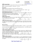 03| MwZwe`¨v ‡gv: kvn& Rvgvj mnKvix Aa¨vcK (c`v_©weÁvb wefvM ) (Dynamics) we G Gd kvnxb K‡jR XvKv ‡dvb: 01670 856105, 9125630, 9115369 E-mail: sjamal59@gmail.com Mo‡eM (Average Velocity): msÁv: †h †Kvb mgq e¨eav‡b †Kvb e¯‘i M‡o cÖwZ GKK mg‡q †h miY nq Zv‡K e¯‘wUi Mo †eM e‡j| Δr e¨L¨v: t mgq e¨eav‡b †Kvb e¯‘i miY r n‡j Mo †eM v n‡e| t ‡eM (Velocity): msÁv: mgq e¨eavb k~‡b¨i KvQvKvwQ n‡j mg‡qi mv‡_ e¯‘i mi‡Yi nvi‡K †eM e‡j| Δr Δr e¨L¨v: t mgq e¨eav‡b †Kvb e¯‘i miY r n‡j †eM v lim wKš‘ n‡”Q Mo †eM v | myZivs v lim v t 0 t t 0 t ah Ja m al A_©vr mgq e¨eavb k~‡b¨i KvQvKvwQ n‡j Mo †e‡Mi mxgvwšÍK gvb‡KB †eM e‡j| mg‡eM ev mylg †eM (Uniform Velocity) : hw` †Kvb e¯‘i MwZKv‡j Zvi †e‡Mi gvb I w`K AcwiewZ©Z _v‡K Zvn‡j †mB e¯‘i †eM‡K mg‡eM e‡j| A_©vr †Kvb e¯‘ hw` wbw`©ó w`‡K mgvb mg‡q mgvb c_ AwZµg K‡i Zvn‡j e¯‘i †eM‡K mg‡eM e‡j| k‡ãi †eM, Av‡jvi †eM, cÖf„wZ mg‡e‡Mi cÖK…ó cÖvK…wZK D`vniY| Amg‡eM (Variable Velocity) t ‡Kvb e¯‘i MwZKv‡j hw` Zvi †e‡Mi gvb ev w`K ev DfqB cwiewZ©Z nq Zvn‡j †mB †eM‡K Amg‡eM e‡j| Avgiv mPvivPi †h MwZkxj e¯‘ †`wL Zv‡`i †eM Amg‡eM| ht © Sh ZvrÿwYK †eM (Instantaneus Velocity) : GKwU e¯‘ mij ev eµ c‡_ Amg‡e‡M Pj‡j cÖwZwbqZ Gi †e‡Mi cwieZ©b nq| Gfv‡e Amg‡e‡M PjšÍ †Kvb e¯‘i †h †Kvb gyû‡Z©i †eM‡K H e¯‘i ZvrÿwYK †eM e‡j| ZvrÿwYK †e‡Mi w`K e¯‘wUi H gyû‡Z©i Ae¯’v‡b AswKZ MwZc‡_i ¯úk©K eivei| Z¡iY (Acceleration) : C op yr ig v mg‡qi mv‡_ †eM e„w×i nvi‡K Z¡iY e‡j| t mgq e¨eav‡b e¯‘i †e‡Mi cwieZ©b v n‡j Z¡iY a n‡e| Ab¨fv‡e t ejv hvq mgq e¨eavb k~‡b¨i KvQvKvwQ n‡j mg‡qi mv‡_ e¯‘i †eM e„w×i nvi‡K Z¡iY e‡j| t mgq e¨eav‡b e¯‘i †e‡Mi v cwieZ©b v n‡j Z¡iY a lim n‡e| Gi GKK ms-2 t 0 t mgZ¡iY ev mylg Z¡iY (Uniform Acceleration): GKB w`‡K GKB mgq e¨eav‡b †e‡Mi e„w×i nvi mgvb n‡j Zv‡K mgZ¡iY ev mylg Z¡iY e‡j| AwfK‡l©i Uv‡b gy³fv‡e cošÍ e¯‘i †eM e„w×i nvi‡K AwfKl©R Z¡iY e‡j| AwfKl©R Z¡iY, mgZ¡iY wewkó MwZi GKwU cÖKó… D`vniY| mgZ¡i‡Y, Z¡i‡Yi gvb I w`K mg‡qi mv‡_ AcwiewZ©Z _v‡K| mgZ¡i‡Y MwZkxj e¯‘‡Z mgej wµqvK‡i e¯‘i cici †m‡K‡Ûi †e‡Mi AšÍiB mgZ¡iY| wP‡Î GKwU mij‡iLv eivei cici †m‡K‡Ûi †eM †`wL‡q Gi Z¡i‡bi cÖK…wZ wb‡`©k Kiv n‡q‡Q| GLv‡b mgZ¡i‡Yi gvb 2ms2 | AmgZ¡iY (Variable Acceleration): GKB mgq e¨eav‡b †e‡Mi e„w×i nvi mgvb bv n‡j Zv‡K AmgZ¡iY e‡j| evm †Uªb, †gvUiMvwo BZ¨vw`i Z¡iY Amg Z¡i‡Yi D`vniY| wP‡Î GKwU mij‡iLv eivei cici †m‡K‡Ûi †eM †`wL‡q Gi Z¡i‡bi cÖK…wZ wb‡`©k Kiv n‡q‡Q| GLv‡b Z¡i‡Yi gvb AmgZ¡iY| http://teachingbd.com 03| MwZwe`¨v (Dynamics) 2 ZvrÿwYK Z¡iY (Instantaneous acceleration): †Kvb GKwU MwZkxj e¯‘i mg‡qi e¨eavb k~‡b¨i KvQvKvwQ n‡j mg‡qi mv‡_ e¯‘i †eM cwieZ©‡bi nvi‡K ZvrÿwYK Z¡iY e‡j| t mgq e¨eav‡b e¯‘i †e‡Mi cwieZ©b v n‡j Z¡iY v a lim n‡e| t 0 t miY (Displacement)t wbw`©ó w`‡K e¯‘i Ae¯’v‡bi cwieZ©b‡K miY e‡j| miY‡K s ev d Øviv cÖKvk Kiv nq| Gi GKK wgUvi| wbw`©ó w`‡K †Kvb e¯‘ t mgq a‡i v †e‡M Pj‡j, miY s = v t n‡e| miY GKwU †f±i ivwk| Av‡cwÿK †eM (Relative Av‡cwÿK †eM e‡j| (Mean velocity): `ywU MwZkxj e¯‘i GKwUi Zzjbvq (mv‡c‡ÿ) AciwUi Ae¯’v‡bi cwieZ©‡bi nvi‡K †Kvb GKwU MwZkxj e¯‘i cÖ_g Ges †kl †eM Gi AwfgyL GKB n‡j Zv‡`i †hvM d‡ji m al ga¨ †eM velocity): A‡a©K‡K ga¨ †eM e‡j| ‡Kvb wbw`©ó w`‡K †Kvb e¯‘i Avw`‡eM vi I †kl †eM vf n‡j ga¨‡eM = vi v f 2 n‡e| ah Ja MwZi msµvšÍ mgxKiY mgvKj‡bi mvnv‡h¨ Dc¯’vcb: (K) vx vxo ax t cÖwZcv`b| g‡bKwi, X Aÿ eivei GKwU e¯‘ mylg Z¡i‡Y MwZkxj| Av‡iv awi, GB MwZi cÖviw¤¢K kZ©vw` nj mgq Mbbvi ïiæ‡Z A_©vr hLb t = 0 ZLb Avw` Ae¯’vb x = 0 Ges Avw`‡eM vx = vxo | Av‡iv awi, t mgq ci e¯‘wUi Ae¯’vb x = x Ges Ges †eM vx = vx| ‡h‡nZz †h †Kvb gyn‡~ Z©i mg‡qi mv‡c‡ÿ †Kvb KYvi †eM e„w×i nvi‡K Z¡iY e‡j| dv x dt dv x ax dt Sh myZivs, ax vx © hLb t = 0 ZLb vx = vxo Ges x = xo Avevi, hLb t = t ZLb vx = vx Ges x = x GB mxgvi g‡a¨ mgxKiY‡K mgvKjb K‡i cvB, v xo 0 ax t t yr ig v x vx ax aª æeK ht t dvx ax dt v x0 o C op v x v xo a x t 0 v x v xo a x t mgxKiYwU cÖwZcv`b Kiv nj| 1 2 (L) x xo vxo t ax t 2 cÖwZcv`b: g‡bKwi, X Aÿ eivei GKwU e¯‘ ax mylg Z¡i‡Y MwZkxj| Av‡iv awi, GB MwZi cÖviw¤¢K kZ©vw` nj mgq Mbbvi ïiæ‡Z A_©vr hLb t = 0 ZLb Avw` Ae¯’vb x = xo Ges Avw`‡eM vx = vxo | Av‡iv awi, t mgq ci e¯‘wUi Ae¯’vb x = x Ges Ges †eM vx = vx| ‡h‡nZz †h †Kvb gyn‡~ Z©i mg‡qi mv‡c‡ÿ †Kvb KYvi †eM e„w×i nvi‡K Z¡iY e‡j| dvx dt dvx ax dt hLb t = 0 ZLb vx = vxo Ges x = xo Avevi, hLb t = t ZLb vx = vx Ges x = x GB myZivs, ax mxgvi g‡a¨ mgxKiY‡K mgvKjb K‡i cvB, vx t ax aª æeK dvx ax dt v xo v 0 vx x v xo ax t o t vx vxo ax t 0 http://teachingbd.com 03| MwZwe`¨v (Dynamics) vx vxo ax t ... ... ... ... ... (1) (1) mgxKi‡Y vx 3 †h †Kvb gyû‡Z© e¯‘i miY e„w×i nvi‡K †eM e‡j| D³ dx v xo a x t dt dx vxo dt a x t dt x t t dx v xo dt a x t dt xo o o dx ewm‡q cvB, dt t t2 x v xo t ax 2 o 1 x xo vxo t 0 a x t 2 0 2 1 x xo vxot a xt 2 mgxKiYwU cÖwZcv`b Kiv nj| 2 1 2 1 2 ev, x xo vxot a xt S v xot a xt mgxKiYwUI cÖwZcv`b Kiv nj| w¯’i 2 2 1 2 Ae¯’vb †_‡K mgZ¡i‡Y Pjgvb e¯‘i †ÿ‡Î, v xo 0 Ges a x aª æeK ,d‡j S 0 aª æeK t S aª æeK t 2 2 2 S t Kv‡RB, w¯’i Ae¯’vb †_‡K mgZ¡i‡Y Pjgvb e¯‘i AwZµvšÍ `yiZ¡ mg‡qi e‡M©i mgvbycvwZK| t o Sh ah Ja m al x xo © (M) v 2x v 2xo 2ax ( x x o ) cÖwZcv`b : awi, GKwU e¯‘ X A