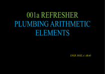 001a REFRESHER PLUMBING ARITHMETIC ELEMENTS ENGR. ROEL A. ABAO 1. For any two triangles, if an angle of one triangles is congruent to an angle of the other and if the two sides of one triangle are proportional to two sides of the other, they are what kind of triangles? a. b. c. d. Complementary Supplementary Similar Dissimilar 1. For any two triangles, if an angle of one triangles is congruent to an angle of the other and if the two sides of one triangle are proportional to two sides of the other, they are what kind of triangles? a. b. c. d. Complementary Supplementary Similar Dissimilar 2. An angle inscribe in a semi-circle is always? a. b. c. d. Unaligned More than 90 deg. Less than 90 deg. 90 deg. 2. An angle inscribe in a semi-circle is always? a. b. c. d. Unaligned More than 90 deg. Less than 90 deg. 90 deg. 3. A factor repeated to produce a power is? a. b. c. d. Numerator Square Quotient Root 3. A factor repeated to produce a power is? a. b. c. d. Numerator Square Quotient Root 4. A polygon with ten side is? a. b. c. d. Dodecagon Undecagon Decagon Tendicagon 4. A polygon with ten side is? a. b. c. d. Dodecagon Undecagon Decagon Tendicagon 5. Two angles having the same vertex and the side of one is the prolongation of the side of the other is? a. b. c. d. Acute angle Scalene angle Obtuse angle Vertical angle 5. Two angles having the same vertex and the side of one is the prolongation of the side of the other is? a. b. c. d. Acute angle Scalene angle Obtuse angle Vertical angle 6. The volume of the cube is equal to the cube of the measure of its? a. b. c. d. Angle Corner Edge Diagonal 6. The volume of the cube is equal to the cube of the measure of its? a. b. c. d. Angle Corner Edge Diagonal 7. If each two lines is perpendicular to the same line, then the lines are? a. b. c. d. Perpendicular Parallel Tangent Converging 7. If each two lines is perpendicular to the same line, then the lines are? a. b. c. d. Perpendicular Parallel Tangent Converging 8. Is a branch of mathematics dealing with integers and more generally, numeral computation? a. b. c. d. Algebra Trigonometry Geometry Arithmetic 8. Is a branch of mathematics dealing with integers and more generally, numeral computation? a. b. c. d. Algebra Trigonometry Geometry Arithmetic 9. The power to which a number is raised is indicated by a small superior figure called? a. b. c. d. Logarithm Increment Exponent Mantissa 9. The power to which a number is raised is indicated by a small superior figure called? a. b. c. d. Logarithm Increment Exponent Mantissa 10. A number that be exactly divided by two is? a. b. c. d. Real Odd Integer Even 10. A number that be exactly divided by two is? a. b. c. d. Real Odd Integer Even 11. A space that is devoid of matter and which the pressure is zero? a. b. c. d. Block hole Outer space Vacuum Inner space 11. A space that is devoid of matter and which the pressure is zero? a. b. c. d. Block hole Outer space Vacuum Inner space 12. Decrease in the value of a physical property due to the passage of time? a. b. c. d. Inflation Depletion Recession Depreciation 12. Decrease in the value of a physical property due to the passage of time? a. b. c. d. Inflation Depletion Recession Depreciation 13. We may classify an interest rate which specifies the actual rate of interest on the principal for one year as? a. b. c. d. Nominal rate Rate of return Exact interest rate Effective rate 13. We may classify an interest rate which specifies the actual rate of interest on the principal for one year as? a. b. c. d. Nominal rate Rate of return Exact interest rate Effective rate 14. The ratio of the interest payment to the principal for a given unit of time and usually expressed as a percentage of the principal? a. b. c. d. Interest Interest rate Investment Rate 14. The ratio of the interest payment to the principal for a given unit of time and usually expressed as a percentage of the principal? a. b. c. d. Interest Interest rate Investment Rate 15. Additional information of prospective bidders on contract documents issued prior to bidding date? a. b. c. d. Depict Escalate Assessment Bid bulletin 15. Additional information of prospective bidders on contract documents issued prior to bidding date? a. b. c. d. Depict Escalate Assessment Bid bulletin 16. The acceleration is ________ the mass of the object. a. b. c. d. Directly proportional to Inversely proportional to Directly proportional to the square of Inversely proportional to the square of 16. The acceleration is ________ the mass of the object. a. b. c. d. Directly proportional to Inversely proportional to Directly proportional to the square of Inversely proportional to the square of FORCE = MASS x ACCELERATION 17. Reduction in the level of national income and output usually accompanied by the fall in the general price level? a. b. c. d. Devaluation Deflation Inflation Depreciation 17. Reduction in the level of national income and output usually accompanied by the fall in the general price level? a. b. c. d. Devaluation Deflation Inflation Depreciation 18. It is a series of equal payment occuring at equal interval of time? a. b. c. d. Annuity Debt Amortization Deposit 18. It is a series of equal payment occuring at equal interval of time? a. b. c. d. Annuity Debt Amortization Deposit 19. The place where buyers and sellers come together? a. b. c. d. Market Business Recreation center Buy and sell section 19. The place where buyers and sellers come together? a. b. c. d. Market Business Recreation center Buy and sell section 20. A market whereby there is only one buyer of an item for which there are no goods substitute? a. b. c. d. Monopsony Oligopoly Monopoly Oligopsony 20. A market whereby there is only one buyer of an item for which there are no goods substitute? a. b. c. d. Monopsony Oligopoly Monopoly Oligopsony 21. It is a series of equal payments occurring at equal interval of time where the first payment is made after several periods, after the beginning of the paym