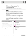 2 2 Writing and Language Test 35 MINUTES, 44 QUESTIONS Turn to Section 2 of your answer sheet to answer the questions in this section. DIRECTIONS Each passage below is accompanied by a number of questions. For some questions, you will consider how the passage might be revised to improve the expression of ideas. For other questions, you will consider how the passage might be edited to correct errors in sentence structure, usage, or punctuation. A passage or a question may be accompanied by one or more graphics (such as a table or graph) that you will consider as you make revising and editing decisions. Some questions will direct you to an underlined portion of a passage. Other questions will direct you to a location in a passage or ask you to think about the passage as a whole. After reading each passage, choose the answer to each question that most effectively improves the quality of writing in the passage or that makes the passage conform to the conventions of standard written English. Many questions include a “NO CHANGE” option. Choose that option if you think the best choice is to leave the relevant portion of the passage as it is. 1 Questions 1-11 are based on the following passage. A) NO CHANGE B) in search of The Pioneers of the Great Exodus C) with a look for D) to the discovery of At the end of the Reconstruction era that followed the American Civil War, tens of thousands of black former slaves left the southern United States 1 for 2 finding social and economic opportunity in the western states and territories. The movement was known as the A) NO CHANGE B) his or her Great Exodus, and 2 their participants came to be C) its Unauthorized copying or reuse of any part of this page is illegal. D) one’s 18 CONTINUE 2 2 called exodusters. 3 During this time, travel from one 3 Which choice provides the most appropriate context for the discussion that follows in the passage? part of the country to another took days or even weeks, and the dangers wild animals posed were not to be A) NO CHANGE underestimated. B) Settlers from Kentucky, Tennessee, and Missouri were part of the Great Exodus. C) The Great Exodus has parallels to large-scale migrations that occurred in the United States during the twentieth century. The most popular destination was Kansas, in part because of its role as an early stronghold of the movement to abolish slavery. One settlement in that state D) Drawn by the promise of farming on their own land rather than sharecropping for a landlord, exodusters founded dozens of communities in the West in the 1870s and 1880s. was Nicodemus, a town in northwestern Kansas that drew more than 300 settlers to make the long journey from Kentucky in 1877. 4 Real estate agents 5 mentioned Nicodemus in brochures and newspapers, 4 but the reality that exodusters confronted on arrival was At this point, the writer is considering adding the following sentence. less appealing. For one early settler of Nicodemus, Between 1870 and 1879, approximately 10,000 exodusters entered Kansas. Willianna Hickman, the flat, empty landscape contrasted starkly with the forested hills where she grew up— Should the writer make this addition here? Hickman recalled bursting into tears when she first saw A) Yes, because it sheds light on an aspect of the settlers’ backgrounds. her new home. B) Yes, because it provides a historical context for the discussion of the Great Exodus. C) No, because it contradicts information in the previous paragraph. D) No, because it digresses from the discussion of the settlement of Nicodemus. 5 Which choice most effectively sets up the information that follows in the paragraph? A) NO CHANGE B) wrote songs and slogans to attract settlers, C) advertised the location and characteristics of Nicodemus, D) promised plentiful harvests and abundant wildlife, Unauthorized copying or reuse of any part of this page is illegal. 19 CONTINUE 2 2 6 Some exodusters returned to the familiar A) NO CHANGE 6 expanse of their home 7 states: but others— B) terrain C) spread including Hickman and her husband, Daniel, decided to stay in their new farming villages. These farmers faced D) locale many difficulties. In Nicodemus, the lack of trees for home construction or fuel forced settlers to build houses 7 out of sod and burn materials such as sunflowers for heat. A) NO CHANGE Possessing less wealth than settlers from Europe or other B) states—but others C) states; but, others D) states, but others, parts of the United States, 8 horses or farm implements could not be afforded by many exodusters, who had to do agricultural work with inadequate hand tools. In the first 8 years, many could not raise enough crops to sustain A) NO CHANGE themselves and had to seek aid from neighbors or state B) affording horses or farm implements was impossible for many exodusters, who C) many exodusters could not afford horses or farm implements and governments. D) the lack of affordability of horses or farm implements meant many exodusters Unauthorized copying or reuse of any part of this page is illegal. 20 CONTINUE 2 2 9 The prosperity of exoduster settlements depended on A) NO CHANGE the yields of their farms. 9 Eventually, harvests in B) Still, C) Rather, Nicodemus grew, which allowed residents to purchase lumber for their houses and attracted 10 banks, grocery D) Next, stores, and other businesses. But the challenges of smallscale farming, 11 exacerbated and made worse by 10 economic volatility, slowed the Great Exodus. By the A) NO CHANGE twentieth century, Nicodemus had stopped growing, with B) banks, grocery, stores C) banks; grocery stores, D) banks; grocery stores many businesses moving away, and other exoduster communities had disappeared altogether. As settlers left the region, Nicodemus became the only original 11 exoduster town to endure to the present day. It remains, A) NO CHANGE in the words of a 1996 congressional bill establishing it as B) exacerbated and worsened C) exacerbated a National His