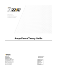 Ansys Fluent Theory Guide ANSYS, Inc. Southpointe 2600 Ansys Drive Canonsburg, PA 15317 ansysinfo@ansys.com http://www.ansys.com (T) 724-746-3304 (F) 724-514-9494 Release 2022 R1 January 2022 ANSYS, Inc. and ANSYS Europe, Ltd. are UL registered ISO 9001: 2015 companies. Copyright and Trademark Information © 2022 ANSYS, Inc. Unauthorized use, distribution or duplication is prohibited. ANSYS, Ansys Workbench, AUTODYN, CFX, FLUENT and any and all ANSYS, Inc. brand, product, service and feature names, logos and slogans are registered trademarks or trademarks of ANSYS, Inc. or its subsidiaries located in the United States or other countries. ICEM CFD is a trademark used by ANSYS, Inc. under license. CFX is a trademark of Sony Corporation in Japan. All other brand, product, service and feature names or trademarks are the property of their respective owners. FLEXlm and FLEXnet are trademarks of Flexera Software LLC. Disclaimer Notice THIS ANSYS SOFTWARE PRODUCT AND PROGRAM DOCUMENTATION INCLUDE TRADE SECRETS AND ARE CONFIDENTIAL AND PROPRIETARY PRODUCTS OF ANSYS, INC., ITS SUBSIDIARIES, OR LICENSORS. The software products and documentation are furnished by ANSYS, Inc., its subsidiaries, or affiliates under a software license agreement that contains provisions concerning non-disclosure, copying, length and nature of use, compliance with exporting laws, warranties, disclaimers, limitations of liability, and remedies, and other provisions. The software products and documentation may be used, disclosed, transferred, or copied only in accordance with the terms and conditions of that software license agreement. ANSYS, Inc. and ANSYS Europe, Ltd. are UL registered ISO 9001: 2015 companies. U.S. Government Rights For U.S. Government users, except as specifically granted by the ANSYS, Inc. software license agreement, the use, duplication, or disclosure by the United States Government is subject to restrictions stated in the ANSYS, Inc. software license agreement and FAR 12.212 (for non-DOD licenses). Third-Party Software See the legal information in the product help files for the complete Legal Notice for ANSYS proprietary software and third-party software. If you are unable to access the Legal Notice, contact ANSYS, Inc. Published in the U.S.A. Table of Contents Using This Manual ................................................................................................................................... xxxix 1. The Contents of This Manual .......................................................................................................... xxxix 2. Typographical Conventions ................................................................................................................. xl 3. Mathematical Conventions ............................................................................................................... xliii 1. Basic Fluid Flow ....................................................................................................................................... 1 1.1. Overview of Physical Models in Ansys Fluent ..................................................................................... 1 1.2. Continuity and Momentum Equations ............................................................................................... 2 1.2.1. The Mass Conservation Equation .............................................................................................. 3 1.2.2. Momentum Conservation Equations ........................................................................................ 3 1.3. User-Defined Scalar (UDS) Transport Equations .................................................................................. 4 1.3.1. Single Phase Flow .................................................................................................................... 4 1.3.2. Multiphase Flow ....................................................................................................................... 5 1.4. Periodic Flows .................................................................................................................................. 6 1.4.1. Overview ................................................................................................................................. 6 1.4.2. Limitations ............................................................................................................................... 7 1.4.3. Physics of Periodic Flows .......................................................................................................... 7 1.4.3.1. Definition of the Periodic Velocity .................................................................................... 7 1.4.3.2. Definition of the Streamwise-Periodic Pressure ................................................................ 8 1.5. Swirling and Rotating Flows .............................................................................................................. 9 1.5.1. Overview of Swirling and Rotating Flows .................................................................................. 9 1.5.1.1. Axisymmetric Flows with Swirl or Rotation ....................................................................... 9 1.5.1.1.1. Momentum Conservation Equation for Swirl Velocity ............................................. 10 1.5.1.2. Three-Dimensional Swirling Flows .................................................................................. 11 1.5.1.3. Flows Requiring a Moving Reference Frame ................................................................... 11 1.5.2. Physics of Swirling and Rotating Flows .................................................................................... 11 1.6. Compressible Flows ........................................................................................................................ 12 1.6.1. When to Use the Compressible Flow Model ...........................................................
