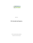 Sun Tzu El Arte de la Guerra 2003 - Reservados todos los derechos Permitido el uso sin fines comerciales Sun Tzu El Arte de la Guerra El Arte de la Guerra es el mejor libro de estrategia de todos los tiempos. Inspiró a Napoleón, Maquiavelo, Mao Tse Tung y muchas más figuras históricas. Este libro de dos quinientos mil años de antigüedad, es uno de los más importantes textos clásicos chinos, en el que, a pesar del tiempo transcurrido, ninguna de sus máximas ha quedado anticuada, ni hay un solo consejo que hoy no sea útil. Pero la obra del general Sun Tzu no es únicamente un libro de práctica militar, sino un tratado que enseña la estrategia suprema de aplicar con sabiduría el conocimiento de la naturaleza humana en los momentos de confrontación. No es, por tanto, un libro sobre la guerra; es una obra para comprender las raíces de un conflicto y buscar una solución. “la mejor victoria es vencer sin combatir”, nos dice Sun Tzu, “y ésa es la distinción entre le hombre prudente y el ignorante”. Indice Introducción: Sun Tzu y el "Arte de la Guerra" 1. Sobre la evaluación 2. Sobre la iniciación de las acciones 3. Sobre las proposiciones de la victoria y la derrota 4. Sobre la medida en la disposición de los medios 5. Sobre la firmeza 6. Sobre lo lleno y lo vacío 7. Sobre el enfrentamiento directo e indirecto 8. Sobre los nueve cambios 9. Sobre la distribución de los medios 10. Sobre la topología 11. Sobre las clases de terreno 12. Sobre el arte de atacar por el fuego 13. sobre la concordia y la discordia INTRODUCCION Sun Tzu, El Arte de la Guerra Sun Tzu fué un general chino que vivió alrededor del siglo V antes de Cristo. La colección de ensayos sobre el arte de la guerra atribuida a Sun Tzu es el tratado más antiguo que se conoce sobre el tema. A pesar de su antigüedad los consejos de Sun Tzu siguen manteniendo vigencia. El Arte de la Guerra es el mejor libro de estrategia de todos los tiempos. Inspiró a Napoleón, Maquiavelo, Mao Tse Tung y muchas más figuras históricas. Este libro de dos mil quinientos años de antigüedad, es uno de los más importantes textos clásicos chinos, en el que, a pesar del tiempo transcurrido, ninguna de sus máximas ha quedado anticuada, ni hay un solo consejo que hoy no sea útil. Pero la obra del general Sun Tzu no es únicamente un libro de práctica militar, sino un tratado que enseña la estrategia suprema de aplicar con sabiduría el conocimiento de la naturaleza humana en los momentos de confrontación. No es, por tanto, un libro sobre la guerra; es una obra para comprender las raíces de un conflicto y buscar una solución. “la mejor victoria es vencer sin combatir”, nos dice Sun Tzu, “y ésa es la distinción entre le hombre prudente y el ignorante”. La obra de Sun Tzu llegó por primera vez a Europa en el periodo anterior a la Revolución Francesa, en forma de una breve traducción realizada por el sacerdote jesuita J. J. M. Amiot. En las diversas traducciones que se han hecho desde entonces, se nombra ocasionalmente al autor como Sun Wu o Sun Tzi El núcleo de la filosofía de Sun Tzu sobre la guerra descansa en estos dos principios: Todo el Arte de la Guerra se basa en el engaño. El supremo Arte de la Guerra es someter al enemigo sin luchar. Las ideas de Sun Tzu se extendieron por el resto de Asia hasta llegar a Japón. Los japoneses adoptaron rápidamente estas enseñanzas y, posiblemente, añadieron algunas de su propia cosecha. Hay constancia de que el principal libro japonés sobre el tema, "El libro de los Cinco Anillos", está influido por la filosofía de Sun Tzu, ya que su autor, Miyamoto Mushashi, estudió el tratado de "El Arte de la Guerra" durante su formación como Samurai. Habitualmente se hace referencia a las culturas orientales como culturas de estrategia y no es pequeña la influencia de Sun Tzu en este desarrollo cultural. Hoy en día, la filosofía del arte de la guerra ha ido más allá de los límites estrictamente militares, aplicándose a los negocios, los deportes, la diplomacia e incluso el comportamiento personal. Por ejemplo, muchas frases clave de los manuales modernos de gestión de empresas, son prácticamente citas literales de la obra de Sun Tzu (cambiando, por ejemplo, ejercito por empresa, o armamento por recursos, sin ir más lejos). Las ideas siguen siendo completamente válidas a pesar de los 25 siglos transcurridos desde que se escribieron. CAPITULO I Sobre la evaluación Sun Tzu dice: la guerra es de vital importancia para el Estado; es el dominio de la vida o de la muerte, el camino hacia la supervivencia o la pérdida del Imperio: es forzoso manejarla bien. No reflexionar seriamente sobre todo lo que le concierne es dar prueba de una culpable indiferencia en lo que respecta a la conservación o pérdida de lo que nos es mas querido; y ello no debe ocurrir entre nosotros. Hay que valorarla en términos de cinco factores fundamentales, y hacer comparaciones entre diversas condiciones de los bandos rivales, con vistas a determinar el resultado de la guerra. El primero de estos factores es la doctrina; el segundo, el tiempo; el tercero, el terreno; el cuarto, el mando; y el quinto, la disciplina. La doctrina significa aquello que hace que el pueblo esté en armonía con su gobernante, de modo que le siga donde sea, sin temer por sus vidas ni a correr cualquier peligro. El tiempo significa el Ying y el Yang, la noche y el día, el frío y el calor, días despejados o lluviosos, y el cambio de las estaciones. El terreno implica las distancias, y hace referencia a dónde es fácil o difícil desplazarse, y si es campo abierto o lugares estrechos, y esto influencia las posibilidades de supervivencia. El mando ha de tener como cualidades: sabiduría, sinceridad, benevolencia, coraje y disciplina. Por último, la disciplina ha de ser comprendida como la organización del ejército, las graduaciones y rangos entre los oficiales, la regulación de las rutas de suministr
