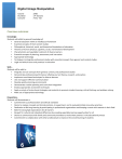Knowledge -­‐ Students will exhibit a general knowledge of: • General education within an intellectual framework • Essential concepts of their content studies • Philosophical, historical, social, and theoretical foundations of education • Theories of human physical, cognitive, social, and emotional development • Characteristics and equitable treatment of diverse learners • Essential concepts of planning, assessment, and instruction • Appropriate technology • Techniques to integrate professional studies with essential concepts from general and content studies • Legal and ethical issues and practices in education Skills -­‐ Students will be able to: • Integrate and use concepts from general, content, and professional studies • Demonstrate professional performance reflecting current theory, research, and practice • Implement non-­‐biased techniques for diverse learners • Use and support effective communication • Develop positive learning environments • Demonstrate creative planning and curriculum integration • Employ appropriate assessment techniques • Apply a variety of instructional strategies and materials to promote student learning, critical thinking, and problem solving • Make use of appropriate technology Dispositions -­‐ Students will demonstrate a: • Commitment to professionalism and ethical standards • Desire to analyze concepts and clinical practices, to experiment, and to evaluate/initiate innovative practices • Dedication to life-­‐long learning by participating in professional organizations and keeping current with research in their field • Belief in having high expectations for all learners • Respect for cultural and individual differences by providing equitable learning opportunities for all • Desire to communicate with family and community members to make them partners in the educational process • Commitment to collaboration with other professionals to improve the overall learning of students A. Become Familiar with Adobe Photoshop Interface. • Introducing Photoshop new document, open document, copy document & placed document • Introducing Photoshop Short Cut Key • Introducing Photoshop interface tour B. Discuss Files Size & Files Types & Printing 1. JPG 2. EPS 3. PSD 4. GIF 5. TIFF 6. PDF C. Adjust Document Mode • Modify color saturation. • Use color channels to adjust colors. • Perform photographic color correction using levels/curves. • Set white and black points • Convert RGB to CMYK/grayscale/indexed color formats D. Introducing Photoshop feature & toolbox Make Selections • Make a selection • Make a crop • Use a marquee • Use a lasso • Use the magic wand • Use the pen • Convert paths Layer Functions • Layering (Creating a new layer, Linking layers, Duplicating layers, layer effects, Preserve transparency, Merging layers) • Image/object rotating • Image/object size • Use layer masks Demonstrate Color Techniques • Utilize color transformations • Utilize the color picker • Demonstrate gradients • Define and use filters • Use the layer blending mode Use Type in Photoshop. • Create type • Adjust type • Use layer style with type • Advanced Type Techniques-­‐create special effect type Photo montages • Use a burn & dodge • Use a healing & patch • Use a Stamp Utilize Paint Tools • Use appropriate brushes for the project. • Utilize the smudging tool • Define and use airbrushing. Utilize Filters • Define and use artistic filters • Define and use unique filters • Define and use distort and noise filters. • Define and use render filters. Utilize Timeline • Use the frame animation Making Buttons For Multimedia • Create web buttons • A revision on layer effects