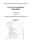 4th and 5th Year Medicine Study Notes Edited by David Tripp Second Edition February 2003 Volume 1 Credits and Introduction ...................................................... 1 Patient Management ............................................................ 3 Systems: Cardiovascular ...................................................... 13 Respiratory ............................................................ 57 Endocrine and Electrolytes ................................... 93 Neuro-sensory ..................................................... 116 Gastro-Intestinal .................................................. 153 Renal and Genitourinary ..................................... 201 Musculo-skeletal ................................................. 229 Haematology and Immunology........................... 285 Skin ..................................................................... 313 Reproductive and Obstetrics ............................... 337 Index ............................................................................. 388 To Helen, Laura and Esther My precious wife and daughters Thanks for your support and patience Credits and Introduction This workbook collates all the study material lavished upon us in the 4th and 5th Year Medicine course taught at the Wellington School of Medicine. It is an attempt to organise and summarise the zillion and one things that of course you should know. This second edition also includes further material gained as a Trainee Intern. Thankfully this added to the practical material without impacting on the bulk! Revising these notes also gave me a change to remove another round of bloopers. This document is intended to help you cram for exams. It is not intended as a clinical reference, and should not be used for making real life decisions. Find something (much) more reliable. I have endeavoured to be as accurate as possible, but a patient on the end of a needle deserves better than the ravings of a 6th year student. Sections whose headers are marked with an „*‟ are sections I compiled from books – these were not taught as discrete topics, but I thought they should be in here. I am indebted to Matthew Kelly for his review of parts of this document (thanks Matt!) and the many lecturers who taught us. Where I drew from substantial handouts, these are referenced. I have also used the following books: Oxford Handbook of Clinical Medicine, 4th Edition, R A Hope, J M Longmore, S K McManus and C A Wood-Allum, Oxford University Press, 1998 N J Talley and S O‟Connor, Clinical Examination – a Systematic Guide to Physical Diagnosis, Third Edition, MacLennan & Petty Pty Ltd, 1998 T J B Maling and C D Burgess, Clinical Pharmacology and Therapeutics, 9th Edition, Wellington School of Medicine, 2000 These are good books – buy them! Feedback – especially any bloopers – would be most welcome. Email them to me at David.Tripp@xtra.co.nz. Enjoy! © David Tripp, November 2002 4th and 5th Year Notes 1 Relationship to Wellington School of Medicine Runs Run/Module Clinical Skills Neuro-sensory Health Care and the Elderly Psychological Medicine Gut Community Medicine/GP Run Anaesthetics and Emergency Women‟s, Sexual and Reproductive Health Public Health Paediatrics Musculo-Skeletal Medicine Pathology 2 Where to find the material from that run in this document Material from this run is included in the relevant systems chapters, mainly Cardiovascular, Respiratory and Renal. Endocrine is a separate chapter. All in the Neuro-sensory Chapter All in the Health Care of the Elderly Chapter, or referenced from there All in the Psychological Medicine Chapter Mainly in the Gastro-Intestinal Chapter (incorporating the substantial run handout). IV Fluids and Nutrition are in the Surgery and Fluid Management Chapter. Material from this run is scattered through the relevant system chapters. Dermatology is in the Skin Chapter, Consultation Skills is in the Patient Management Chapter, Grief and Terminal Illness is in Psychological Medicine Chapter, Screening and the Health System in NZ is in the Public Health Chapter, Sexual Health in the Reproductive and Obstetrics Chapter Material is split across the Anaesthetics Chapter and the Emergency Management Chapter, or referenced from there All in the Obstetrics and Gynaecology Chapter, except for Urinary Incontinence in the Renal Chapter and Post-natal depression in the Psychological Medicine Chapter All in the Public Health Chapter Mainly in the paediatrics Chapter. Meningitis is in the Infectious Diseases chapter and some paediatric skin conditions are in the Skin Chapter. UTIs are covered in the Renal and Genitourinary Chapter All in the Musculo-skeletal chapter or referenced from there In the Cardiovascular, Respiratory, Renal or Endocrine Chapter Pathology of specific systems is merged into those system chapters. Haematology material is the Haematology Chapter, in the Blood Tests section of Patient Management Chapter, and Blood Products section of the Surgery and Fluid Management Chapter. Genetics is in the Genetics chapter, or referenced from there. Forensic Pathology is mainly in the Professional Development Chapter. 4th and 5th Year Notes Patient Management This chapter contains aspects of history taking, examination, investigations and management that don’t sit neatly in another chapter. It therefore focuses on principles and general exam features, and covers some bits and pieces. For specific history taking or examination refer to the relevant chapter. History Taking ................................................... 4 Frameworks for consultation ........................ 4 History Taking .............................................. 4 History Outline ............................................. 4 Examination ....................................................... 5 Purpose of Examination ................................ 5 General ......................................................... 5 Fever ..........