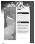 © Jones and Bartlett Publishers, LLC. NOT FOR SALE OR DISTRIBUTION CHAPTER 1 Electrical Plan Design Chapter Outline Chapter Outline Introduction The Design Process Understanding the Project Scope Defining Parts of the Electrical Plan Determining Applicable Standards Creating the Electrical Plan Objectives Objectives • Identify the steps in the electrical design process. • Determine the scope of an electrical design project. • Interpret the various components of an electrical plan, including general and specialized loads, lighting systems, and distribution systems. • Recognize the symbols used in electrical plan design. • Identify the standards and regulations that guide the electrical design process. 1 8325 JBI003_CH01.indd 1 9/24/09 1:34 PM © Jones and Bartlett Publishers, LLC. NOT FOR SALE OR DISTRIBUTION 2 Electrical Design of Commericial and Industrial Buildings Introduction • Specialized electrical requirements (e.g., specialized office equipment or machinery) • Lighting systems • Electrical distribution systems For all building construction or remodeling building projects, the owner or occupant must first have a concept for the new design, and then the architect or designer can produce a set of building plans. These plans convey all the required information to the local inspection authority and associated building trades so that the construction or remodeling can take place. Because commercial and industrial buildings contain a number of electrical systems, these plans include specific electrical designs and additional documentation to verify that the design conforms to all required building codes. General Electrical Requirements General electrical requirements should be defined first on any electrical design project. General electrical requirements are items such as the 120-volt general purpose receptacle outlets located throughout the commercial or industrial building. These receptacles are usually not specified to serve any particular load but rather are for general purpose use such as for desktop devices, standard wall receptacles, and desktop computer equipment with no special electrical requirements. The Design Process An electrical design goes through several important stages of development. First, the designer must understand the scope of the project. Then, the designer defines and designs each component (such as general office areas, specialized machinery, and power distribution equipment) to recognized industry standards. Finally, these individual components are compiled to form the final presentation for the design. Specialized Electrical Requirements Certain projects may include specialized electrical equipment that requires separate or dedicated electrical circuitry that serves only the specialized equipment (see FIGURE 1-1). This equipment may be of the following types: • Computers and/or network servers • Photocopiers • Microwave ovens and other lunchroom appliances • Vending machines Because of their electrical load requirements, as per the manufacturer’s requirements, these pieces of equipment may require individual circuitry and special grounding methods (see Chapter 3). Understanding the Project Scope Every electrical design has unique requirements, depending on the scope of the project. The project scope is determined by the customers’ requirements and the type of structure that the customer will occupy. For example, if the project requires new electrical systems for an existing building, then the electrical designer works to incorporate all the new electrical wiring into the existing system. The designer must evaluate the existing electrical system to ensure that existing electrical systems can accommodate new additional electrical loads that will be imposed on them. When the design is for a new proposed facility, then the scope of the project is much greater. Electrical designs for these types of projects require an entirely new electrical system design. Defining Parts of the Electrical Plan Depending on the overall scope of the project, a design can include the following components: • General electrical requirements (e.g., general purpose receptacles) FIGURE 1-1 Some commercial electrical equipment may have specialized electrical requirements. 8325 JBI003_CH01.indd 2 9/24/09 1:34 PM © Jones and Bartlett Publishers, LLC. NOT FOR SALE OR DISTRIBUTION CHAPTER 1 Electrical Plan Design 3 Lighting Systems Because of their complexity, lighting systems are the part of the design process that generally requires the greatest amount of time to develop (see FIGURE 1-2). These systems include all the lighting fixtures and their controls. Lighting systems have very detailed requirements as per the NEC and require documentation showing that the system incorporates all required energy-saving technologies (see Chapter 4). Distribution System An electrical distribution system is the installed equipment that provides for the distribution of electrical wiring throughout the facility (see FIGURE 1-3). It includes the main switchboard, which receives the power source from the serving utility, and all the associated components such as panelboards that distribute all the required branch circuits throughout the facility (see Chapter 5). Part of the process of designing the distribution system is calculating the facility’s amperage load and short-circuit values; these calculations determine the total electrical FIGURE 1-3 An electrical distribution system provides power to the entire facility. demand requirements of the facility based on the individual parts of the electrical distribution system (see Chapter 6). Determining Applicable Standards Once each part of the design plan has been defined, the next stage is to design each part to industryrecognized standards as well as any additional standards set forth by the local jurisdiction for commercial or industrial occupancies. The primary industry standard is the National Electrical Code (NEC), publis