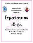 Parroquia Natividad del Señor (Cumbres) Cadena Seeley Cursillo Religiosa Verano 2021 Experiencias de fe Expositora: Andrea Aylin Garza Morales Mariana Escobar Iglesias Eslabón: Córcega 1 Índice I. Introducción………………………………………………………...………………….…3 II. Objetivo y Utilidad………………………………………………………………………4 III. LA FE… ¿Qué es?……………………………………….……………………..………..6 3.1 Definición ……………………………………………………...……………….……....6 3.2 Las leyes de la fe……………………………………………...……...……………….8 3.3 La de según Santo Tomàs de Aquino……………………………………………10 IV. ¿Qué son las Experiencias de Fe?....................................................................12 4.1 Definición……………………………………………………………………………...12 4.2 Medios por los cuales Dios nos manifiesta las Experiencias De Fe…………13 4.3 Actitudes ante las Experiencias de Fe………………………………………..….15 V. Milagros y misterios que acrecientan nuestra fe…………………………….…17 VI. Hechos que comprueban la resurrección de cristo…………………………..21 6.1 Definición............................................................................................................21 VII. Signos de los tiempos........................................................................................23 VIII. Conclusión................................................................................................ IX. Trabajos..................................................................................................... 2 I. Introducción La fe es, generalmente, la confianza o creencia en algo o alguien, no se vive sin la fe. La fe es el conocimiento del significado de la vida humana, la fe es la fuerza de la vida. Si el hombre vive es porque cree en algo. La fe puede ser definida como “Una creencia ilógica en que lo improbable sucederá “ La fe es la confianza y la creencia de algo o de alguien en especial. La fe es la fuerza de la vida ya que el hombre vive por creer en algo o en alguien. La fe también puede ser definida por una creencia de que algo inesperado sucederá. Yo pienso que esa frase quiere decir que tenemos que creer que lo improbable puede suceder, tener esa confianza que nos ayudara a creer en que todo saldrá bien. Dios nos dio este tesoro por una razón, hay que saber valorarla. Nosotras tenemos fe porque queremos tener fe, muchas veces dejamos de creer porque no paso algo que le pedimos a Dios, pero eso sirve para seguir creyendo que él sigue ahí con nosotras en todo momento. 1.1. Jesús le dice: ¿No te he dicho que, si creyeres, verás la gloria de Dios? (Juan 11,40) Yo pienso que esta cita bíblica me dice que, si en verdad creemos y tenemos la fe fuerte y firme, vamos a tener la gloria y amor de Dios para siempre. Para mí la fe es como una semilla, el agua representa el amor que es muy necesario, y el sol representa creer. Si nosotras prestamos atención a la fe, va a crecer, pero siempre habrá esa lluvia fea que destruye ese árbol. Pero nunca hay que rendirnos y creer que ese árbol va a florecer. MT1. ¿Por qué tienes fe? ¿Cuál es la razón que te hace creer en Dios, nuestro padre? Tengo fe porque sin Dios no sé qué haría, me sentiría sola y vacía. Estaría con mi familia y amigos, pero sin ese amor y felicidad que Él causa dentro de mi cada vez que hago oración. Él es la principal razón por la cual soy como soy. Desde pequeña mi familia fue católica y me llevaban a misa. Yo no entendía nada hasta el día de su resurrección, ahí entendí que él había resucitado y 3 había sacrificado todo por todos nosotros. El con su fe puede mover montañas, pero solo si crees en él. La razón por la que creo en él es porque quiero creer que él está conmigo y llena mi corazón de felicidad y alegría. Quiero creer que él se manifiesta dentro de mí con las acciones que realizo y realizaré. II. Objetivo y Utilidad La Biblia nos dice: “Ahora bien, sin fe es imposible agradarle, pues el que se acerca a Dios ha de creer que existe y que recompensa a los que le buscan” (HB II, 6) Acerca de esta cita, como dice, es imposible agradecerle a Dios si no tenemos la fe necesaria. Pero si al contrario creemos, poco a poco nos vamos acercando más a él. El dejo todo por nosotras en la cruz, no hay mejor manera que respondiéndole, creyendo en él y con el corazón listo para amar. Creyendo en el podremos descansar en la santidad de su infinito amor por nosotras. MT2. ¿Cuál crees que sea la mejor manera de vivir la fe? Sinceramente… ¿Tú cómo la vives actualmente? Creo que la mejor manera de vivir la fe es cada día aprendiendo más de él y de cómo se sacrificó por nosotras, también al ver a Dios en cada acción que las personas realizan. También creo que, al nosotros confiar totalmente con todo nuestro corazón en los planes de Dios, pidiéndole que haga su voluntad hacia nosotros y que nos guie hacia Él, seremos capaces de vivir nuestra fe al límite. Personalmente, vivo mi fe al ponerme en presencia y confiar plenamente en él y entregarle mi vida entera. Confió en que el cuidara de mí y que el me ama. No hay amor comparado con el amor infinito de Jesús. Esta plática nos ayudará a reflexionar y a profundizar más en todas esas interpretaciones y manifestaciones que Dios hace a lo largo de nuestra vida. Todas esas experiencias de fe que tenemos. Las cuales hacen que cada día nuestra fe vaya creciendo más y más… 4 Personalmente, esta platica me gusta mucho porque me ha pasado mucho que mi fe se perdía, pero cuando me daba cuenta de que él se manifestó en una acción o persona, me di cuenta de cuanto se es