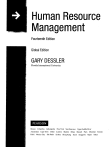 Human Resource Management Fourteenth Edition Global Edition GARY DESSLER Florida International University PEARSON Boston Columbus Indianapolis New York San Francisco Upper Saddle River Amsterdam Cape Town Dubai London Madrid Milan Munich Paris Montreal Toronto Delhi Mexico City Säo Paulo Sydney Hong Kong Seoul Singapore Taipei Tokyo CONTEN TS Preface 28 PART ONE 1 INTRODUCTION 34 Introduction to Human Resource Management 34 WHAT IS HUMAN RESOURCE MANAGEMENT, AND WHY IS IT IMPORTANT? 36 What Is Human Resource Management? 36 Why Is Human Resource Management Important to All Managers? 36 Line and Staff Aspects of Human Resource Management 38 Line Managers' Human Resource Duties 38 Human Resource Manager'; Duties 39 Organizing the Human Resource Departments Responsibilities 39 Cooperative Line and Staff HR Management: An Example 41 THE TRENDS SHARING HUMAN RESOURCE MANAGEMENT 41 Tecbnological Advances 42 Improving Performance Through HRIS: The HR Portal 42 Globalization and Competition Trends 42 Indebtedness ("Leverage") and Deregulation 42 Trends in the Nature of Work 43 • IMPROVING PERFORMANCE: HR AS A PROFIT CENTER: Improving a Bank s Customer Service 44 Demographic and Workforce Trends 44 Economic Challenges and Trends 45 THE NEW HUMAN RESOURCE MANAGER 46 They Focus More on Strategie, Big-Picture Issues 46 They Focus on Improving Performance 46 They Measure HR Performance and Results 47 They Use Evidence-Based Human Resource Management 47 They Add Value 48 They Use New Ways to Provide HR Services 48 They Take a Talent Management Approach to Managing Human Resources 48 They Manage Employee Engagement 48 They Manage Ethics 48 They Understand Their Human Resource Philosophy 49 They Have New Competencies 49 THE HUMAN RESOURCE MANAGER S COMPETENCIES 49 HRCI Certification 50 The HRCI Knowledge Base 50 THE PLAN OF THIS BOOK 51 The Basic Themes and Features 51 CHAPTER CONTENTS OVERVIEW 51 Part 1: Introduction 51 Part 2: Recruitment, Placement, and Talent Management 51 Part 3: Training and Development 52 Part 4: Compensation 52 Part 5: Enrichment Topics in Human Resource Management 52 The Topics Are Interrelated 52 CHAPTER SECTION SUMMARIES 52 DISCUSSION QUESTIONS 53 INDIVIDUAL AND GROUP ACTIVITIES 53 ß 10 CONTENTS EXPERIENTIAL EXERCISE 54 VIDEO CASE: VIDEO TITLE: HUMAN RESOURCE MANAGEMENT (PATAGONIA) 54 APPLICATION CASE: JACK NELSON S PROBLEM 55 CONTINUING CASE: CARTER CLEANING COMPANY 55 KEY TERMS 56 ENDNOTES 56 2 Equal Opportunity and the Law 58 EQUAL OPPORTUNITY LAWS ENACTED FROM 1964 TO 1991 60 Title VII of the 1964 Civil Rights Act 60 Executive Orders 60 Equal Pay Act of 1963 60 Age Discrimination in Employment Act of 1967 61 Vocational Rehabilitation Act of 1973 61 Pregnancy Discrimination Act of 1978 61 Federal Agency Guidelines 61 Early Court Decisions Regarding Equal Employment Opportunity 61 THE LAWS ENACTED FROM 1991 TO THE PRESENT 62 The Civil Rights Act of 1991 62 The Americans with Disabilities Act 63 Uniformed Services Employment and Reemployment Rights Act 65 Genetic Information Nondiscrimination Act of 2008 (GlNA) 65 State and Local Equal Employment Opportunity Laws 65 • IMPROVING PERFORMANCE: HR PRACTICES AROUND THE GLOBE 65 In Summary: Religious and Other Types of Discrimination 65 Sexual Harassment 66 Social Media and HR 69 OEFENSES AGAINST DISCRIMINATION ALLEGATIONS 69 The Central Role of Adverse Impact 69 Bona Fide Occupational Qualification 72 Business Necessity 72 • KNOW YOUR EMPLOYMENT LAW: Examples of What You Can and Cannot Do 73 THE EEOC ENFORCEMENT PROCESS 75 Voluntary Mediation 77 Mandatory Arbitration of Discrimination Claims 77 DIVERSITY MANAGEMENT 78 Potential Threats to Diversity 78 Some Diversity Benefits 79 Diversity Counts 79 Managing Diversity 79 Implementing the Affirmative Action Program 80 Reverse Discrimination 81 • IMPROVING PERFORMANCE: HR TOOLS FOR LINE MANAGERS AND ENTREPRENEURS 82 CHARTER SECTION SUMMARIES 83 DISCUSSION QUESTIONS 84 INDIVIDUAL AND GROUP ACTIVITIES 84 EXPERIENTIAL EXERCISE 84 VIDEO CASE: VIDEO TITLE: EQUAL EMPLOYMENT (UPS) 85 APPLICATION CASE: THE EMIRATIZATION OF HRM PRACTICES AT A PETROLEUM COMPANY 85 CONTINUING CASE: CARTER CLEANING COMPANY 86 KEY TERMS 87 ENDNOTES 87 3 Human Resource Management Strategy and Analysis THE STRATEGIC MANAGEMENT PROCESS 94 The Management Flanning Process 94 Strategie Flanning 95 92 CONTENTS 11 Improving Performance Through HRIS: Using Computerized Business Flanning Software 98 TYPES OF STRATEGIES 98 Corporate Strategy 98 Competitive Strategy 99 Functional Strategy 99 Managers' Roles in Strategie Flanning 99 STRATEGIC HUMAN RESOURCE MANAGEMENT 100 What Is Strategie Human Resource Management? 100 • IMPROVING PERFORMANCE: HR PRACTICES AROUND THE GLOBE 100 Human Resource Strategies in Action 101 Diversity Counts: Longo Builds Its Strategy on Diversity 102 Translating Strategy into Human Resource Policies and Practices: An Example 102 Strategie Human Resource Management Tools 103 HR METRICS AND BENCHMARKING 105 Types of Metrics 105 Improving Performance Through HRIS: Tracking Applicant Metrics for Improved Talent Management 105 Benchmarking and Needs Analysis 105 Strategy and Strategy-Based Metrics 106 Improving Performance Through HRIS: Workforce/Talent Analytics 107 What Are HR Audits? 108 Evidence-Based HR and the Scientific Way of Döing Things 108 • IMPROVING PERFORMANCE: HR TOOLS FOR LINE MANAGERS AND ENTREPRENEURS 109 HIGH-PERFORMANCE WORK SYSTEMS 109 High-Performance Human Resource Policies and Practices 110 CHARTER SECTION SUMMARIES 111 DISCUSSION QUESTIONS 112 INDIVIDUAL AND GROUP ACTIVITIES 112 EXPERIENTIAL EXERCISE 112 VIDEO CASE: VIDEO TITLE: STRATEGIC MANAGEMENT (JOIE DE VIVRE HOSPITALITY) 113 APPLICATION CASE: SIEMENS BUILDS A STRATEGY ORIENTED HR SYSTEM 113 CONTINUING CASE: CARTER CLEANING COMPANY 114 TRANSLATING STRATEGY INTO HR POLICIES AND PRACTICES CASE: IMPROVING PERFORMANCE AT THE HOTEL PARIS 114 KEY TERMS 116 ENDNOTES 116 PART TWO 4 RECRUITMENT, PLACEMENT, AND TALENT MA