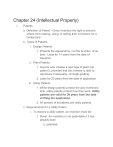 Chapter 24 (Intellectual Property) I. Patents a. Definition of Patent - Gives inventors the right to prevent others from making, using, or selling their inventions for a limited time b. Types of Patents i. Design Patents 1. Protects the appearance, not the function, of an item. Lasts for 14 years from the date of issuance ii. Plant Patents 1. Anyone who creates a new type of plant can patent it, provided that the inventor is able to reproduce it asexually—through grafting 2. Lasts for 20 years from the date of application iii. Utility Patents 1. While design patents protect the way inventions look, utility patents protect how they work. Utility patents are valid for 20 years from the date of filing the application. 2. 94 percent of all patents are utility patents c. Requirements for a Utility Patent i. To receive a utility patent, an invention must be: 1. Novel. An invention is not patentable if it has already been a. patented, b. described in a printed publication, c. in public use, d. on sale, or e. otherwise available to the public anyplace in the world. 2. Nonobvious. An invention is not patentable if it is obvious to a person with ordinary skill in that particular area. 3. Utility. To be patented, an invention must be useful. It need not necessarily be commercially valuable, but generally, it must do something. 4. Patentable subject matter. Not every innovation is patentable. A patent is not available solely for an idea, but only for its tangible application. a. Thus, laws of nature, scientific principles, mathematical algorithms, mental processes, intellectual concepts, or formulas are not patentable. d. Patent Application and Issuance i. To obtain a patent, the inventor must file a complex application with the Patent and Trademark Office. 1. If a patent examiner determines that the application meets all legal requirements, the PTO will issue the patent. 2. If an examiner denies a patent application for any reason, the inventor can appeal that decision to the Patent Trial and Appeal Board in the PTO and from there to the Court of Appeals for the Federal Circuit in Washington, D.C. 2 ii. During the patent application process, third parties have the right to submit evidence that the invention is not novel. 1. For the nine months after a patent has been granted, third parties have a broad right to challenge its validity in the PTO (without having to go to court). a. Thereafter, a patent may still be challenged but the grounds are limited to evidence of a prior patent or publication. iii. Priority between two Inventors 1. When two people invent the same product, who is entitled to a patent—the first to invent or the first to file an application? a. After 2013, The first person to file a patent application has priority. iv. Prior Sale 1. An inventor must apply for a patent within one year of selling the product commercially anywhere in the world. e. Patent Infringement i. A patent holder has the exclusive right to make, use, or sell the patented invention during the term of the patent. 1. Note that patents, like other areas of intellectual property, are territorial, meaning that the holder of a U.S. patent can only enforce those rights in the United States. ii. Patent Troll – one who buys a portfolio of patents for the express purpose of patent infringement lawsuits 3 f. International Patent Treaties i. Several treaties of the World Intellectual Property Organization now facilitate this process, although it is still not the one-stop (or one-click) effort that inventors desire. The Paris Convention for the Protection of Industrial Property (Paris Convention) requires each member country to accept and recognize all patent and trademark applications filed with it by anyone who lives in any member country. II. Copyrights a. Definition of Copyright - A copyright gives its creator the exclusive right to reproduce, distribute, and perform his original work for a limited time. i. Copyright protects the way things are presented but not the underlying idea or method ii. A work is copyrighted automatically once it is in tangible form. iii. Copyright protects: 1. literature, music, drama, choreography, photography, sculpture, movies, recordings, architectural works, computer programs and databases, tattoos, and architectural works. b. Copyright Term i. Today, a copyright is valid until 70 years after the death of the author or, in the case of works owned by a corporation, for 95 years from publication or 120 years from creation, whichever is shorter. c. Copyright Infringement i. To prove a violation, the plaintiff must present evidence that the work was original and that either: 4 1. The infringer actually copied the work or 2. The infringer had access to the original and the two works are substantially similar. ii. A court may 1. prohibit the infringer from committing further violations; 2. order destruction of the infringing material; and 3. require the infringer to pay damages, profits earned, and attorney’s fees. d. Defenses to Copyright Infringement i. In some circumstances, copying or selling a protected work is justified by public policy. ii. First Sale Doctrine 1. The first sale doctrine permits a person who owns a lawfully made copy of a copyrighted work to sell or otherwise dispose of the copy. 2. Note, however, that the first sale doctrine does not permit the owner to make a copy and sell it. If you read the textbook and then decide to sell it, that is legal. iii. Fair Use 1. Fair Use Doctrine - Permits limited use of copyrighted material without permission of the author for purposes such as criticism, comment, news reporting, scholarship, or research 2. Understand the following four factors, which determine whether a use is a fair one. 5 a. The purpose and character of the use. When copyrighted material is used for purposes such as criticism, parody, comment, news reporting, scholarship, research, or education, it is more likely to be a fair use. i. When the resulting work trans