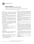 Designation: A 902 – 03 Standard Terminology Relating to Metallic Coated Steel Products1 This standard is issued under the fixed designation A 902; the number immediately following the designation indicates the year of original adoption or, in the case of revision, the year of last revision. A number in parentheses indicates the year of last reapproval. A superscript epsilon (e) indicates an editorial change since the last revision or reapproval. barb, n—as related to barbed wire, a short length of wire, with exposed ends cut on a bias to produce sharp points. (1995) barbed wire, n—a fabricated wire product consisting of two line wires twisted to form a two-wire strand, into which 2-point or 4-point barbs are tightly wrapped and locked into place at specified intervals. (1995) base metal, n—as related to metallic-coated steel, the steel to which the coating is applied, as distinguished from the coating metal. (1990) batch coating, n—of metallic coated steel products, the process of discontinuous-sequential passage of steel articles through the various steps of the coating process, such as, cleaning, pickling, fluxing, and coating. (1995) breaking strength, n— as related to wire, the maximum force developed prior to fracture during tension testing of wire and wire products. 1. Scope* 1.1 This standard is a compilation of terminology related to metallic coatings used in the steel industry, and to the steel on which the coatings are applied. Terms that are generally understood or adequately defined in other readily available sources are not included. 1.2 When a term is used in an ASTM document for which Committee A05 is responsible it is included herein only when judged, after review by Subcommittee A05.18, to be a generally usable term. 1.3 Definitions that are identical to those published by other ASTM committees or other standards organizations are identified with the ASTM standard designation (for example, Terminology B 374) or with the abbreviation of the name of the organization. 1.4 A definition is a single sentence with additional information included in notes. The year the definition was adopted, or the year of latest revision, is appended. The responsible subcommittee reviews the definition for each term at five-year intervals, and prepares revisions as needed. DISCUSSION—In testing of stranded wire products, the maximum force may be developed after fracture of one or more individual wires. (1993) carbon steel, n—steel for which (1) no minimum content is specified for chromium, cobalt, molybdenum, nickel, titanium, tungsten, or zirconium, or any other element added to obtain a desired alloying effect; (2) for which the specified minimum for copper does not exceed 0.40 %; (3) for which the specified maximum for any of the following elements does not exceed these percentages: manganese 1.65 %, silicon 0.60 %, or copper 0.60 %; and (4) in which the incidental content of the following elements does not exceed these percentages: nickel, 0.25 %; chromium, 0.20 %; and molybdenum, 0.06 %. 2. Referenced Documents 2.1 ASTM Standards: A 641/A 641M Specification for Zinc-Coated (Galvanized) Carbon Steel Wire2 B 374 Terminology Relating to Electroplating3 D 2092 Guide for Preparation of Zinc-Coated Galvanized Steel Surfaces for Painting4 3. Terminology 3.1 Definitions: DISCUSSION—Carbon steels typically contain small quantities of certain residual elements from the feed materials. When the quantity of such retained elements exceeds the values listed in (4) above, the characteristics of the steel may differ from that of carbon steel without those elements to a degree that the steel may be unsatisfactory for the intended use. (1998) aluminized coating, n—a coating on steel of aluminum alloy, typically 89 to 99 % aluminum; generally applied to steel sheet and wire by the hot-dip process. (1994) 1 This terminology is under the jurisdiction of ASTM Committee A05 on Metallic-Coated Iron and Steel Products and is the direct responsibility of Subcommittee A05.18 on Editorial and Terminology. Current edition approved April 10, 2003. Published June 2003. Originally approved in 1990. Last previous edition approved in 2002 as A 902 – 02. 2 Annual Book of ASTM Standards, Vol 01.06. 3 Annual Book of ASTM Standards, Vol 02.05. 4 Annual Book of ASTM Standards, Vol 06.02. cast analysis, n—Deprecated term. Use preferred term heat analysis. (1997) check analysis, n—Deprecated term. Use preferred term product analysis. (1990) *A Summary of Changes section appears at the end of this standard. Copyright © ASTM International, 100 Barr Harbor Drive, PO Box C700, West Conshohocken, PA 19428-2959, United States. 1 A 902 – 03 chemical treatment, n—a passivating treatment normally applied to metallic coatings to retard the formation of corrosion products (storage stain) during shipment and storage. “galvanized coating”. There is general agreement that the coating produced by application of zinc-rich paint is not a “galvanized coating”. (1999) galvannealed coating, n—a coating on steel of zinc-based alloy, containing about 6 to 15 % iron, produced by hot-dip immersion in a high-zinc content coating bath, followed by heating the steel to induce diffusion alloying between the molten zinc coating and the steel. (1994) grain pattern, n—Synonym for spangle. (1999) heat, n—a specific lot of material representing a single melt of steel produced to a specified chemical analysis. (1991) heat analysis, n—the chemical composition of a specific production lot of liquid steel. (2003) DISCUSSION—The inhibiting characteristics of the treatment are limited and if a lot becomes wet in shipment or storage, the product should be used or dried immediately. Chemical treatment may be undesirable because of further processing, such as phosphatizing or painting. (1991) continuous coating, n—of metallic coated steel products, the process of uninterrupted passage of long lengths of steel products,