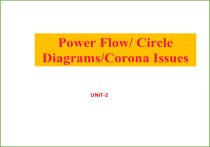 Power Flow/ Circle Diagrams/Corona Issues UNIT-2 • The flow of active and reactive power over a transmission line can be handled computationally. • The Iocus of complex sending-and receiving-end power is a circle. • Since circles are convenient to draw, the circle diagrams area useful aid to visualize the load flow problem over a single transmission. The expressions for complex number receiving-and sending-end powers are A B The units for Sp and Ss are MVA (three-phase) with voltages in KV line. • SR and SS are each composed of two phasor components • (one a constant phasor and the other a phasor of fixed magnitude but variable angle. • The loci for SR and SS would, therefore, be circles drawn from the tip of constant phasors as centres. In equation (A) the centre of receiving-end circle is located at the tip of the phasor. (Either in polar coordinates or in terms of rectangular coordinate) Horizontal coordinate of the centre The radius of the receiving-end circle is Vertical coordinate of the centre • The centre is located by drawing OCR at an angle (β-δ) in the positive direction from the negative MWaxis • From the centre CR , the receivingend circle is drawn with the radius • The operating point M is located on the circle by means of the received real power PR. • The corresponding QR or ƟR can be immediately read from the circle diagram. • The torque angle δ can be read in accordance with the positive direction indicated from the reference line. Similarly, in equation (B) the centre of Sending-end circle is located at the tip of the phasor. (Either in polar coordinates or in terms of rectangular coordinate) Horizontal coordinate of the centre The radius of the sending-end circle is Vertical coordinate of the centre • The centre is located by drawing OCS at an angle (β-δ) from the positive MW-axis • From the centre CS , the sendingend circle is drawn with the radius • The operating point N is located on the circle and the sending end real power PS is shown in the circle diagram. • The corresponding QS or ƟS can be immediately read from the circle diagram. • The torque angle δ can be read in accordance with the direction indicated from the reference line. Corona The phenomenon of violet glow, hissing noise and production of ozone gas in an overhead transmission line is known as corona When an alternating potential difference is applied across two conductors whose spacing is large as compared to their diameters, there is no apparent change in the condition of atmospheric air surrounding the wires if the applied voltage is low. However, when the applied voltage exceeds a certain value, called critical disruptive voltage, the conductors are surrounded by a faint violet glow called corona. *If the conductors are polished and smooth, the corona glow will be uniform throughout the length of the conductors, otherwise the rough points will appear brighter *With d.c. voltage The positive wire has uniform glow about it, while the negative conductor has spotty glow Theory of corona formation ❖ Some ionisation is always present in air due to cosmic rays, ultraviolet radiations and radioactivity. ❖ Therefore, under normal conditions, the air around the conductors contains some ionised particles (i.e., free electrons and +ve ions) and neutral molecules. ❖ When p.d. is applied between the conductors, potential gradient is set up in the air which will have maximum value at the conductor surfaces. ❖ Under the influence of potential gradient, the existing free electrons acquire greater velocities. The greater the applied voltage, the greater the potential gradient and more is the velocity of free electrons. ❖ When the potential gradient at the conductor surface reaches about 30 kV per cm (max. value), the velocity acquired by the free electrons is sufficient to strike a neutral molecule with enough force to dislodge one or more electrons from it. ❖ This produces another ion and one or more free electrons, which is turn are accelerated until they collide with other neutral molecules, thus producing other ions. ❖ Thus, the process of ionisation is cumulative. The result of this ionisation is that either corona is formed or spark takes place between the conductors. Factors Affecting Corona It is the minimum phase-neutral voltage at which corona occurs. Consider two conductors of radii r cm and spaced d cm apart. If V is the phase-neutral potential, then potential gradient at the conductor surface is given by: The breakdown strength of air at 76 cm pressure and temperature of 250 C (Standard conditions) is 30 kV/cm (max) or 21·2 kV/cm (r.m.s.) and is denoted by go . If Vc is the phase-neutral potential required under these conditions, then, It is the minimum phase-neutral voltage at which corona glow appears all along the line conductors. Formation of corona is always accompanied by energy loss which is dissipated in the form of light, heat, sound and chemical action. When disruptive voltage is exceeded, the power loss due to corona is given by Advantages and Disadvantages of Corona Methods of Reducing Corona Effect Problem 1 A 3-phase line has conductors 2 cm in diameter spaced equilaterally 1 m apart. If the dielectric strength of air is 30 kV (max) per cm, find the disruptive critical voltage for the line. Take air density factor δ= 0·952 and irregularity factor mo= 0·9. Problem 2 A 132 kV line with 1·956 cm dia. conductors is built so that corona takes place if the line voltage exceeds 210 kV (r.m.s.). If the value of potential gradient at which ionisation occurs can be taken as 30 kV per cm, find the spacing between the conductors. (3 Phase line and smooth conductors) Mechanical Design of Overhead Lines UNIT-3 Commonly used conductor materials. The most commonly used conductor materials for overhead lines are copper, aluminium, steel-cored aluminium, galvanised steel and cadmium copper. The supporting structures for overhead line conductors are 