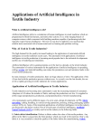 Applications of Artificial Intelligence in Textile Industry What is Artificial Intelligence (AI)? Artificial intelligence refers to a simulation of human intelligence in smart machines which are programmed to think like humans, and mimic their actions. It is a wide-ranging branch of computer science which concerned with building machines capable of performing tasks that typically require human intelligence. The term AI can also be applied to any machine that exhibits traits associated with a human mind such as learning and problem-solving. Why AI Used in Textile Industries? The high demand for the quality increased leading to the application of automated artificial intelligence in textile industries recent years. The automation with applications of artificial intelligence in textile production is becoming much popular due to the technical developments and the use of modeling and simulation. Artificial intelligence (AI) is gaining impetus over the last two decades, in the textile industry. The automation of various instruments by the application of artificial intelligence in spreading, cutting, sewing, and material handling can reduce the production cost and minimize faults in the overall textile production. In many instances of textiles production, there are huge chances of error. The application of the AI can deal with the production process without error. As a result, over the last decade, the use of AI is rapidly growing in textile industries for various applications. Applications of Artificial Intelligence in Textile Industry: Textile industries are becoming more automated to cater the increasing demand of consumers. Adoptions of AI reduce the number of faults, and keep the production cost low. It is applied in all the stages (preproduction, production, and postproduction) of textile manufacturing. AI is increasingly used to different stages of a sewn seam, design development, in PPC, fabric spreading, cutting, bundling, in various sewing operations, pressing, ironing, packaging, quality control, SCM, etc. Some of the important applications of artificial intelligence in textile industry are discussed in the below section. Out of several types of artificial intelligence, Artificial Neural Network (ANN) is widely used in textile industry in the following fields: 1. Fabric defect identification: Defects in fabric reduce the value of the textile products. Any defect in the fabric is passed into the final product, which can result in the rejection. That’s why fabric it is very essential to check the quality of the fabric before the manufacturing. Fabric inspection is manually checked by skilled workers using lighted tables with equipment. This process is slow and many times can allow faults to pass to the product. In this case, the application of AI can perform this task at a faster rate, with much higher accuracy and without fatigue. Artificial intelligence can be used to predict the fabric properties before manufacturing with the help of the neuro-fuzzy or other system by using the yarn, and fabric’s constructional data. 2. Pattern inspection: Fabric pattern may have multiple aspects such like: weaving, knitting, braiding, finishing, and printing, etc. By replacing visual inspection with vision-based inspection could help manufacturers avoid human fatigue and errors in the detection of novelties and defects. AI techniques like ANN are applied for defect identification in fabric inspection of the textile industry. The fabric picture to be analysed is obtained from the image acquisition system and saved in relevant standard image format (.JPEG, .JPG, .PNG etc.). Different Multi-Layer back propagation algorithm is used to train and test this ANN system. The system learns the weaving pattern, yarn properties, colours and tolerable imperfections from these images. 3. Colour matching: Colour is an important aspect of textile products. The appearance of a textile product is perceived to be related to its quality. The colour of a product is judged to be acceptable/unsatisfactory, or it can be judged in more details to be: ‘too light ‘or, ‘too dark’, ‘too red’ or, ‘too green’. To solve this problem, AI can be developed that has ‘Pass/Fail’ feature to help improve the accuracy and efficiency. 4. Sewn seam: In sewn, seams and stitches are used to join two or more pieces of fabric together. The ease of seam formation and the performance of the seam are the important parameters are known as “sew-ability.” Fabric low-stress mechanical properties such as tensile, shear, bending, etc. may affect the sew-ability. Artificial intelligence system can be used to find the sew-ability of different fabrics during the production. 5. CAD systems: One of the important steps in textile production is pattern making. In this process, basic patterns are made by the designers and subsequently digitized to computer. Various CAD software are used in the textile industry for pattern-making, digitizing, grading, and marker planning. The CAD software helps in achieving high productivity and improved quality of the product. 6. Production planning and control: Production planning and control (PPC) coordinates between various departments of production so that delivery dates can met and buyer orders are delivered on time. AI can be used to solve of the machine layout, operation assignment, sewing line balancing, etc. AI can help in achieving the main purpose of PPC. 7. Final inspection: The inspection of finished and semi-finished textile product during their production is essential to get fewer rejections. The final quality inspection of finished garments is mainly done by experienced people, which is very time-consuming and may be influenced by the physical and mental condition of the inspector. As a result, automated AI inspection is essential to achieve the efficiency and accurate results. Automated inspection can be performed by the use of AI and image processing for inspection of the quality o