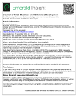 Journal of Small Business and Enterprise Development Small business performance: business, strategy and owner‐manager characteristics Robert A. Blackburn Mark Hart Thomas Wainwright Downloaded by LAURENTIAN UNIVERSITY At 12:51 07 December 2014 (PT) Article information: To cite this document: Robert A. Blackburn Mark Hart Thomas Wainwright, (2013),"Small business performance: business, strategy and owner#manager characteristics", Journal of Small Business and Enterprise Development, Vol. 20 Iss 1 pp. 8 - 27 Permanent link to this document: http://dx.doi.org/10.1108/14626001311298394 Downloaded on: 07 December 2014, At: 12:51 (PT) References: this document contains references to 63 other documents. To copy this document: permissions@emeraldinsight.com The fulltext of this document has been downloaded 4995 times since 2013* Users who downloaded this article also downloaded: Siwan Mitchelmore, Jennifer Rowley, (2013),"Entrepreneurial competencies of women entrepreneurs pursuing business growth", Journal of Small Business and Enterprise Development, Vol. 20 Iss 1 pp. 125-142 http://dx.doi.org/10.1108/14626001311298448 Aylin Ates, Patrizia Garengo, Paola Cocca, Umit Bititci, (2013),"The development of SME managerial practice for effective performance management", Journal of Small Business and Enterprise Development, Vol. 20 Iss 1 pp. 28-54 http://dx.doi.org/10.1108/14626001311298402 Jose Carlos Pinho, Elisabete Sampaio de Sá, (2014),"Personal characteristics, business relationships and entrepreneurial performance: Some empirical evidence", Journal of Small Business and Enterprise Development, Vol. 21 Iss 2 pp. 284-300 http://dx.doi.org/10.1108/JSBED-10-2013-0150 Access to this document was granted through an Emerald subscription provided by All users group For Authors If you would like to write for this, or any other Emerald publication, then please use our Emerald for Authors service information about how to choose which publication to write for and submission guidelines are available for all. Please visit www.emeraldinsight.com/authors for more information. About Emerald www.emeraldinsight.com Emerald is a global publisher linking research and practice to the benefit of society. The company manages a portfolio of more than 290 journals and over 2,350 books and book series volumes, as well as providing an extensive range of online products and additional customer resources and services. Emerald is both COUNTER 4 and TRANSFER compliant. The organization is a partner of the Committee on Publication Ethics (COPE) and also works with Portico and the LOCKSS initiative for digital archive preservation. *Related content and download information correct at time of download. The current issue and full text archive of this journal is available at www.emeraldinsight.com/1462-6004.htm JSBED 20,1 Small business performance: business, strategy and owner-manager characteristics 8 Robert A. Blackburn Small Business Research Centre, Faculty of Business and Law, Kingston University, Kingston-upon-Thames, UK Downloaded by LAURENTIAN UNIVERSITY At 12:51 07 December 2014 (PT) Mark Hart Economics and Strategy Group, Aston Business School, Birmingham, UK, and Thomas Wainwright Management School, University of Southampton, Southampton, UK Abstract Purpose – This paper aims to contribute to the understanding of the factors that influence small to medium-sized enterprise (SME) performance and particularly, growth. Design/methodology/approach – This paper utilises an original data set of 360 SMEs employing 5-249 people to run logit regression models of employment growth, turnover growth and profitability. The models include characteristics of the businesses, the owner-managers and their strategies. Findings – The results suggest that size and age of enterprise dominate performance and are more important than strategy and the entrepreneurial characteristics of the owner. Having a business plan was also found to be important. Research limitations/implications – The results contribute to the development of theoretical and knowledge bases, as well as offering results that will be of interest to research and policy communities. The results are limited to a single survey, using cross-sectional data. Practical implications – The findings have a bearing on business growth strategy for policy makers. The results suggest that policy measures that promote the take-up of business plans and are targeted at younger, larger-sized businesses may have the greatest impact in terms of helping to facilitate business growth. Originality/value – A novel feature of the models is the incorporation of entrepreneurial traits and whether there were any collaborative joint venture arrangements. Keywords Small business performance, Entrepreneurial traits, SME growth, United Kingdom, Entrepreneurialism, Small to medium-sized enterprises Paper type Research paper Journal of Small Business and Enterprise Development Vol. 20 No. 1, 2013 pp. 8-27 q Emerald Group Publishing Limited 1462-6004 DOI 10.1108/14626001311298394 Introduction The prominence given to the role of small and medium-sized enterprises (SMEs) in the UK economy has been renewed following a period of decline in the 1950s and 1960s (Stanworth and Purdy, 2003). SMEs account for 99.9 per cent of all enterprises in the UK economy (Department for Business, Innovation and Skills, 2011), a figure that is reflected worldwide. However, it is universally recognised that the small business population is not a homogenous group (Forsman, 2008). Businesses are started for many different reasons, are run by owners with various aspirations and abilities, have vastly different internal organisational characteristics, and are located in a range of sectors and locations (Wijewardena et al., 2008). Recently there has been a call for more Downloaded by LAURENTIAN UNIVERSITY At 12:51 07 December 2014 (PT) research on the relationship between the manager and growth in small firms (e.g. Andersson