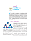 CHAPTER 9 Heredity and Evolution W e have seen that reproductive processes give rise to new individuals that are similar, but subtly different. We have discussed how some amount of variation is produced even during asexual reproduction. And the number of successful variations are maximised by the process of sexual reproduction. If we observe a field of sugarcane we find very little variations among the individual plants. But in a number of animals including human beings, which reproduce sexually, quite distinct variations are visible among different individuals. In this chapter, we shall be studying the mechanism by which variations are created and inherited. The long-term consequences of the accumulation of variations are also an interesting point to be considered. We shall be studying this under evolution. 9 . 1 A CCUMUL ATION OF V ARIA TION VARIA ARIATION DURING REPRODUCTION Figure 9.1 Creation of diversity over succeeding generations. The original organism at the top will give rise to, say, two individuals, similar in body design, but with subtle differences. Each of them, in turn, will give rise to two individuals in the next generation. Each of the four individuals in the bottom row will be different from each other. While some of these differences will be unique, others will be inherited from their respective parents, who were different from each other. 142 Inheritance from the previous generation provides both a common basic body design, and subtle changes in it, for the next generation. Now think about what would happen when this new generation, in its turn, reproduces. The second generation will have differences that they inherit from the first generation, as well as newly created differences (Fig. 9.1). Figure 9.1 would represent the situation if a single individual reproduces, as happens in asexual reproduction. If one bacterium divides, and then the resultant two bacteria divide again, the four individual bacteria generated would be very similar. There would be only very minor differences between them, generated due to small inaccuracies in DNA copying. However, if sexual reproduction is involved, even greater diversity will be generated, as we will see when we discuss the rules of inheritance. Do all these variations in a species have equal chances of surviving in the environment in which they find themselves? Obviously not. Depending on the nature of variations, different individuals would have Science different kinds of advantages. Bacteria that can withstand heat will survive better in a heat wave, as we have discussed earlier. Selection of variants by environmental factors forms the basis for evolutionary processes, as we will discuss in later sections. Q U E S T I O N S 1. If a trait A exists in 10% of a population of an asexually reproducing species and a trait B exists in 60% of the same population, which trait is likely to have arisen earlier? 2. How does the creation of variations in a species promote survival? ? 9.2 HEREDITY The most obvious outcome of the reproductive process still remains the generation of individuals of similar design. The rules of heredity determine the process by which traits and characteristics are reliably inherited. Let us take a closer look at these rules. 9.2.1 Inherited Traits What exactly do we mean by similarities and differences? We know that a child bears all the basic features of a human being. However, it does not look exactly like its parents, and human populations show a great deal of variation. Activity 9.1 Observe the ears of all the students in the class. Prepare a list of students having free or attached earlobes and calculate the percentage of students having each (Fig. 9.2). Find out about the earlobes of the parents of each student in the class. Correlate the earlobe type of each student with that of their parents. Based on this evidence, suggest a possible rule for the inheritance of earlobe types. 9.2.2 Rules for the Inheritance of Traits – Mendel’s Contributions The rules for inheritance of such traits in human beings are related to the fact that both the father and the mother contribute practically equal amounts of genetic material to the child. This means that each trait can be influenced by both paternal and maternal DNA. Thus, for each trait there will be two versions in each child. What will, then, the trait seen in the child be? Mendel (see box) worked out the main rules of such inheritance, and it is interesting to look at some of his experiments from more than a century ago. Heredity and Evolution (a) (b) Figure 9.2 (a) Free and (b) attached earlobes. The lowest part of the ear, called the earlobe, is closely attached to the side of the head in some of us, and not in others. Free and attached earlobes are two variants found in human populations. 143 Gregor Johann Mendel (1822–1884) Mendel was educated in a monastery and went on to study science and mathematics at the University of Vienna. Failure in the examinations for a teaching certificate did not suppress his zeal for scientific quest. He went back to his monastery and started growing peas. Many others had studied the inheritance of traits in peas and other organisms earlier, but Mendel blended his knowledge of science and mathematics and was the first one to keep count of individuals exhibiting a particular trait in each generation. This helped him to arrive at the laws of inheritance that we have discussed in the main text. Mendel used a number of contrasting visible characters of garden peas – round/wrinkled seeds, tall/short plants, white/violet flowers and so on. He took pea plants with different characteristics – a tall plant and a short plant, produced progeny from them, and calculated the percentages of tall or short progeny. In the first place, there were no halfway characteristics in this firstgeneration, or F1 progeny – no ‘medium-height’ plants. All plants were tall. This meant that only one of the parental traits was seen, not s