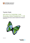 Teacher Guide with advice for Cambridge Lower Secondary Global Perspectives™ 1129 This Cambridge Teacher Guide is for use with the Cambridge Lower Secondary Global Perspectives Curriculum Framework published in September 2022 for first teaching in September 2022. Version 2.0 Contents Contents ............................................................................................................................. 2 Introduction ......................................................................................................................... 5 Section 1: Overview of Cambridge Lower Secondary Global Perspectives............................ 6 1.1 What is Cambridge Lower Secondary Global Perspectives..................................... 6 1.2 The curriculum framework .......................................................................................... 6 1.3 Key features of the curriculum framework ................................................................... 7 1.4 Progression in learning............................................................................................... 8 1.5 The Challenges.......................................................................................................... 9 Perspectives............................................................................................................... 9 Topics and issues..................................................................................................... 10 Section 2: Planning............................................................................................................ 11 2.1 Getting started ......................................................................................................... 11 2.2 School level planning ............................................................................................... 11 2.3 Planning for skills-based teaching and learning......................................................... 12 Cross-curricular links ................................................................................................ 12 2.4 Description of planning stages.................................................................................. 13 2.5 A consistent approach to planning ............................................................................ 13 Evaluating planning .................................................................................................. 14 2.6 The planning process ............................................................................................... 14 2.7 Long-term planning .................................................................................................. 15 Step 1: Teaching time............................................................................................... 15 Step 2: Approach...................................................................................................... 15 Step 3: Prioritising skills and choosing Challenges.......................................................... 15 2.8 Medium-term planning.............................................................................................. 16 Step 4: Using and adapting Challenges..................................................................... 16 2.9 Short-term planning.................................................................................................. 17 Step 5: Creating a lesson plan .................................................................................. 17 Step 6: Evaluating the lesson to inform next steps for teaching and learning .............. 17 2.10 Learning resources................................................................................................. 18 Evaluating and adapting resources ........................................................................... 18 Connecting with other Cambridge schools................................................................. 19 Email ........................................................................................................................ 19 Video conferencing................................................................................................... 19 Section 3: Teaching and learning approaches.................................................................... 21 3.1 The role of the Global Perspectives teacher.............................................................. 21 3.2 The Challenges........................................................................................................ 21 3.3 Active learning ......................................................................................................... 21 3.4 Learner groupings.................................................................................................... 22 Organising learner groupings .................................................................................... 24 Assigning group roles ............................................................................................... 24 Setting rules for group activities ................................................................................ 25 3.5 Strategies for developing Cambridge Lower Secondary Global Perspectives skills .... 25 Metacognition........................................................................................................... 25 Thinking aloud .......................................................................................................... 26 Section 4: Language and dialogue in Cambridge Lower Secondary Global Perspectives .... 27 4. 1 Language awareness .............................................................................................. 27 4.2 Supporting language in the Global Perspectives classroom....................................... 27 Adapting Challenges for language support ................................................................ 27 Define and practice Cambridg