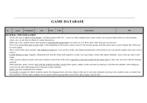 GAME DATABASE No. Game Participants Aim Grade Time Instructions Tips GENERAL TIPS FOR GAMES - - Divide the class in three or four groups. Call them group A/B/C/D… Later on, when students know more words, you can give them names as well (animals, colors, etc.) or ask them to think of a name themselves. Make sure every student knows their group by repeating the group name over and over. Let them cheer when they get an extra star. Give every group three stars to start with. At the beginning of the lesson, remove stars for the noisiest group, until the entire class is quiet. Repeat this if they get too noisy again. Don’t write all the stars yourself. Ask students to help you. You can have either one student permanently at the board or you can ask the student who won a star to write it. Useful utilities in class: magnets, flashcards (not only the letters and respective words, try to get many), sticky ball, plastic hammer, extra warm-up video’s and songs. After you have played a game with some students at the front of the class, repeat the words and sounds for the entire class so they stay involved with the learning material. When playing a game, always start with the simplest possible version (basic game, simple words) and start by playing it with the best students. Once things go well, you can start elaborating and inviting the weaker students. Smile a lot and compliment the students. Use positive rewards: the better students master the language items, the more chances they get to earn stars (instead of giving every student a star, no matter how they perform). Always make students do an exercice before giving them a star! Don’t play a game ‘just for fun’. 1. Slap the Board Reading skill 2-3 students Listening skill Any 5-10 min - - 2. Pang / Pang 2 students Reading Skill Learn New Words Warm-up 1-2 5-10 min - - 3. Bull’s Eye Choose students to come to the front Speaking skill 1-3 5-10 min - 4. Simon Says The whole class Listening Skill Warm-up Any 5-10 min - Flashcards go on the board. Teacher says a word/ sentence and then the students have to hit the flashcard. Ask students not to hit it once, but to keep the ruler on the flashcard until the teacher says the next word/ sentence. Then the teacher can say the next word/ sentence faster and faster, until one of the students makes a mistake. When saying the words/ sentences, teacher says simple words/ sentences first. More difficult words/ sentences can be integrated more and more as the game is going better. Give students a ruler to hit the flashcard. Otherwise, they might hit the flashcard too hard and it will drop to the floor. Alternatively, draw shapes under the flashcards for the students to slap. If everything is going well, ask a student to say the words/ sentences instead of the teacher. Ask two students to come to the front of the class. They have to stand back to back. If you can’t explain, use gestures to make clear. After that, give each student a flashcard. Put it on their forehead so that they can’t see the flashcard. Ask them to hold it. After that, teacher counts to three. Every time teacher counts, students take one step forward. Then teacher says ‘Pang, pang’, and the students turn around. Now they can see the front of the flashcard that the other student is holding. The student that can read the other flashcard first is the winner. When teachers says ‘Pang, Pang’ students pretend to hold a gun. Draw a darts board on the board with two outer circles and one bull’s eye. Ask a student to the front of the class. If they can answer your question correctly, they can throw the ball. Make sure every student throws from the same distance, otherwise, students might get angry at each other. Make sure they pick up the ball after they throw and return it to the teacher. Outer circle is one star, inner circle two, bull’s eye three stars. Teachers gives many instructions in a short time but students only follow the instruction when teacher begins with “Teacher says…” Remove stars if for the group that acted out the - Variation: make a paper plane for students to throw. Older students can make their own. Great game to start or end the class. Possible instructions: stand up, sit down, open your book, close your book, put away instruction. Reward the best group. your book, take your book, clap your hands, raise your hands, wave your hands, shake your hands, one hand up, two hands up, one hand down, touch your nose, ear, mouth, etc. - - 5. Sleep / Wake The Whole class up Reading Skill 1-2 5 min - First teach the students the words sleep / wake up, by using gestures. Then ask two or three students to come up front. Ask them to sleep and make sure their eyes are closed. Then show a flashcard with a picture or a gapped sentence to all students, but make sure they don’t shout it out yet. Then you say ‘wake up’ and the first student to guess the word, is the winner. - 6. Tic-Tac-Toe Choose students to come to the front 2 students 7. BOINNK 8. Sounds and The whole Words on the Speaking skill Warm-up Pronunciation Speaking skill Warm-up Listening skill Remembering Any 1-2 Draw a grid on the board with 9 boxes. Divide the class in two groups. Think of a suitable assignment according to the lesson material and reward the students by letting them put an X (group 1) or O (group 2) in the grid. First one to have three in a row is the winner. - Every time a student makes a mistake the teacher or another student will hit the student on the head using the plastic hammer. Students will go wild! Alternatively, you cam high-five if they answer correct, and give them a soft touch with your hand palm on the head if they are mistaken. The advantage of the plastic hammer is that it makes a sound. Get a cheap plastic hammer at a local shop. Teacher pronounces a letter (for example, ‘u’) while putting hands on the head, then pronounces the sound of the letter in a word (for example, /u/ in umbrella) while putting hands o