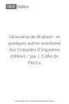 Geneviève de Brabant : et quelques autres aventures des Croisades (Cinquième édition) / par J. Collin de Plancy Source gallica.bnf.fr / Bibliothèque nationale de France Collin de Plancy, Jacques-Albin-Simon (1794-1881). Auteur du texte. Geneviève de Brabant : et quelques autres aventures des Croisades (Cinquième édition) / par J. Collin de Plancy. 1853. 1/ Les contenus accessibles sur le site Gallica sont pour la plupart des reproductions numériques d'oeuvres tombées dans le domaine public provenant des collections de la BnF. Leur réutilisation s'inscrit dans le cadre de la loi n°78-753 du 17 juillet 1978 : - La réutilisation non commerciale de ces contenus ou dans le cadre d’une publication académique ou scientifique est libre et gratuite dans le respect de la législation en vigueur et notamment du maintien de la mention de source des contenus telle que précisée ci-après : « Source gallica.bnf.fr / Bibliothèque nationale de France » ou « Source gallica.bnf.fr / BnF ». - La réutilisation commerciale de ces contenus est payante et fait l'objet d'une licence. Est entendue par réutilisation commerciale la revente de contenus sous forme de produits élaborés ou de fourniture de service ou toute autre réutilisation des contenus générant directement des revenus : publication vendue (à l’exception des ouvrages académiques ou scientifiques), une exposition, une production audiovisuelle, un service ou un produit payant, un support à vocation promotionnelle etc. CLIQUER ICI POUR ACCÉDER AUX TARIFS ET À LA LICENCE 2/ Les contenus de Gallica sont la propriété de la BnF au sens de l'article L.2112-1 du code général de la propriété des personnes publiques. 3/ Quelques contenus sont soumis à un régime de réutilisation particulier. Il s'agit : - des reproductions de documents protégés par un droit d'auteur appartenant à un tiers. Ces documents ne peuvent être réutilisés, sauf dans le cadre de la copie privée, sans l'autorisation préalable du titulaire des droits. - des reproductions de documents conservés dans les bibliothèques ou autres institutions partenaires. Ceux-ci sont signalés par la mention Source gallica.BnF.fr / Bibliothèque municipale de ... (ou autre partenaire). L'utilisateur est invité à s'informer auprès de ces bibliothèques de leurs conditions de réutilisation. 4/ Gallica constitue une base de données, dont la BnF est le producteur, protégée au sens des articles L341-1 et suivants du code de la propriété intellectuelle. 5/ Les présentes conditions d'utilisation des contenus de Gallica sont régies par la loi française. En cas de réutilisation prévue dans un autre pays, il appartient à chaque utilisateur de vérifier la conformité de son projet avec le droit de ce pays. 6/ L'utilisateur s'engage à respecter les présentes conditions d'utilisation ainsi que la législation en vigueur, notamment en matière de propriété intellectuelle. En cas de non respect de ces dispositions, il est notamment passible d'une amende prévue par la loi du 17 juillet 1978. 7/ Pour obtenir un document de Gallica en haute définition, contacter utilisation.commerciale@bnf.fr. GENEVIÈVE DE BRABANT APPROBATION d'Arras. Ces Légendes ont été approuvées, les unes dans les diocèses de Paris et de Châlons, les autres dans le diocèse GENEVIEVE ET QUELQUES AUTRES PAR SOCIÉTÉ DE SAINT-VICTOR POUR LA PROPAGATION DES BONS LIVRES PARIS LIBRAIRIE CENTRALE DE LA SOCIÉTÉ RUE DE TOURNON, n° 16 SIÈGE; DIRECTION, IMPRIMERIE ET LIBRAIRIE DE LA SOCIETE 1835 PROPRIETE Plancy. Typ. de la Société de Saint-Victor.— .J. COLLIN, imp. A CHANOINE CHALON DE HOMMAGE DE L'AUTEUR LA LÉGENDE DE GENEVIÈVE DE BRABANT I Parmi les enfants de Henri III, le premier des comtes de Louvain qui prit le titre de Comte de Brabant, on remarquait Ida et Geneviève, ses deux filles, toutes deux belles et gracieuses. Ida venait d'être mariée au jeune comte de Hainaut, et le palatin du Rhin Henri II, ayant vu Geneviève, que toutes les chroniques dépeignent comme un modèle de beauté, de piété et de douceur, en parla avec grandes louanges a son frère Sigefrid ou Siffroi. Le Palatin résidait à Aix-la-Chapelle, qui alors encore faisait partie de la Lotharingie. Siffroi se rendit à Louyain eut le bonheur , de plaire en même temps qu'il devint épris; et il épousa Geneviève, la perle du Brabant. 4 2 GENEVIEVE On croit que ce mariage se fit en 1095, au moment où toute l'Europe commençait à s'agiter pour les croisades . Geneviève n'avait que dix-huit ans. Quoiqu'elle aimât celui qu'elle venait d'accepter pour époux, elle pleura avec amertume en quittant son père; il lui semblait, à ses pressentiments, qu'elle ne devait plus le revoir ici-bas. Elle arriva donc triste et dolente à la cour d'Aix-la-Chapelle. L'amour de Siffroi répandit un baume de bonheur sur son âme affectueuse, sans en chasser la mélancolie. Mais recueillie et dévouée, elle ne vivait plus, après Dieu, que d'elle auprès qui oubliait mari, et ses pour son anciens plaisirs et ses goûts passionnés pour la chasse. Hélas! les félicités de ce monde ne sont pas de longue durée. La prédication de la croisade avait remué les chevaliers. Tout homme qui voulait qu'on l'appelât homme de foi et d'hohneur prenait la croix. L'âge était à peine une dispense admise; on couvrait de mépris tout chevalier qui semblait hésiter entre son repos et la gloire de délivrer. 3 le tombeau de Jésus-Christ. Les princesdonnaient l'exemple. Godefroid de Bouillon, pour la guerre sainte, aliénait ses domaines ; les comtes de Flandre et de Hainaut n'étaient occupés qu'à réunir leurs guerriers ; Godefroid de Louvain, frère d'Ida et de Geneviève, était déjà parti avec une foule d'autres. La voix de l'amour et des tendres affections était partout étouffée par la voix austère du devoir. Le palatin Henri II, qui régnait, frappé d'une maladie grave, ne pouvait prendre la croix ; Siffroi,