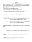 Section A Basic Introduction to Statistics What do you think of when you see/hear the word statistics? The majority of people immediately think of numerical facts, data, graphs and tables. But not only do statisticians collect, classify and tabulate data, they also analyze data in order to make generalizations and decisions. Why study statistics? 1) Everyone comes in contact with statistics in everyday life. 2) People should understand reports in newspapers, magazine and journals. 3) People should be able to question the statistics they read, and not blindly accept these as proven fact. 4) Many areas of study use statistics, such as; psychology, sociology, business, biology, government, engineering, science education and even areas such as history, language and the arts. Statistics is the science of collecting, organizing, summarizing, and analyzing data to draw conclusions or answer questions. It also provides a measure of confidence in any conclusions. Two types of statistics: 1) Descriptive statistics: the use of numbers to summarize information which is known about some population. [collecting, organizing and summarizing the data] 2) Inferential statistics: the use of numbers related to a random sample from a population to give numerical information about the population itself. [analyzing the data to draw conclusions or answer questions about the population] Example: Determine which of the following is an example of descriptive statistics and which is an example of inferential statistics. a) The average weight of all football players on the NY Giants football team is 235 pounds. b) The average yearly salary of a random sample of 150 minor league baseball players is $102,000. Therefore, the average yearly salary of all minor league baseball players is $102,000. Probability is the measure of the likelihood that something happens/occurs and is very important in inferential statistics; it’s related to the risk of making an error. A variable is a characteristic that describes a person, place or thing being studied. Example: height, gender, weight, color 1 A raw score is an unaltered measurement obtained in a particular situation. It is the raw information from which statistics are created. A distribution is a collection of raw scores. Examples of distributions: Population – All people or things being considered in a particular situation EX: A parameter is a numerical value that summarizes or describes the whole population EX: Sample – any portion (subset) of a population under consideration EX: A statistic is a numerical value that summarizes or describes a sample EX: Note: A parameter goes with a population and a statistics goes with a sample. Examples: 1) To determine the average GPA of 500 students who just finished their first year in college, a group of 60 students is randomly selected. It is determined that the average GPA is 2.85. a) What is the population for this study? b) What constitutes the sample? c) Based on the sample, what is the statistic for the average GPA of the population? 2 2) Determine whether the number described is a parameter or statistic: a) In a recent survey of college graduates, 68% of those who responded said they had more than $50,000 in student loans. b) The average age of all the employees working at XYZ Company is 37 years. c) The average GPA of 250 randomly selected students at ABC University is 2.73. d) Of all the students attending Mercer County Community College in 2018, 66% were part time students. Random Sample: A sample selected in such a way that every member of the population has the same probability of being selected for the sample. A sample chosen at random is meant to be an unbiased representation of the total population. Note: the word “random” describes the process by which the sample is chosen and does not guarantee that the sample will be representative, but it allows us to determine the probability the sample is representative. Consider the following: Population: All students attending Mercer County Community College Variable: Some measure of mathematical ability Sample: Students leaving a section of calculus at MCCC. This is not a random sample from the population of all students at MCCC. From this sample we should not attempt to infer anything about the mathematical ability of all students at MCCC. Note: A bias in obtaining a sample will destroy the value of the statistical information obtained since statistical inferences made from this information would be invalid. That is why it is important to use random samples when doing statistical analysis. Example: Determine whether or not the sample given represents the given population accurately. a) Population: All students attending Mercer County Community College. Sample: 100 students selected at random entering the student center at noon on Monday. b) Population: All businesses in Mercer County. Sample: 75 businesses selected at random from a list of all businesses in Mercer County. Why use a sample instead of a population? a) b) c) d) 3 Two types of variables 1) Qualitative or categorical variable – classification based on some attribute or characteristic of the individual (non-numerical) EX: 2) Quantitative variable – provides numerical measures of individuals Two types of quantitative variables 1) Discrete – has either a finite number of possible values or a countable number of possible values (something that can be counted) EX: 2) Continuous – has an infinite number of possible values that are not countable (something that can be measured) EX: Example: The following data set provides information about five college professors. Name Allen Backer Hughes Ramirez Turner Specialty Gender Nursing F Accounting M Psychology F Mathematics F Sociology M Age 40 59 52 30 38 Height (in) 65 71 69 68 70 # of years of teaching 16 34 13 5 9 Rank Associate Professor Full Professor Associate Professor Assistant Professor Assistant Professor Which variables are qualitative and which are