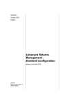 S/4HANA October 2020 English Advanced Returns Management Standard Configuration Release S/4HANA 2020 SAP SE Dietmar-Hopp-Allee 16 69190 Walldorf Copyright © 2020 SAP SE or an SAP affiliate company. All rights reserved. No part of this publication may be reproduced or transmitted in any form or for any purpose without the express permission of SAP SE or an SAP affiliate company. SAP and other SAP products and services mentioned herein as well as their respective logos are trademarks or registered trademarks of SAP SE (or an SAP affiliate company) in Germany and other countries. Please see http://global.sap.com/corporate-en/legal/copyright/index.epx#trademark for additional trademark information and notices. Some software products marketed by SAP SE and its distributors contain proprietary software components of other software vendors. National product specifications may vary. These materials are provided by SAP SE or an SAP affiliate company for informational purposes only, without representation or warranty of any kind, and SAP SE or its affiliated companies shall not be liable for errors or omissions with respect to the materials. The only warranties for SAP SE or SAP affiliate company products and services are those that are set forth in the express warranty statements accompanying such products and services, if any. Nothing herein should be construed as constituting an additional warranty. In particular, SAP SE or its affiliated companies have no obligation to pursue any course of business outlined in this document or any related presentation, or to develop or release any functionality mentioned therein. This document, or any related presentation, and SAP SE’s or its affiliated companies’ strategy and possible future developments, products, and/or platform directions and functionality are all subject to change and may be changed by SAP SE or its affiliated companies at any time for any reason without notice. The information in this document is not a commitment, promise, or legal obligation to deliver any material, code, or functionality. All forward-looking statements are subject to various risks and uncertainties that could cause actual results to differ materially from expectations. Readers are cautioned not to place undue reliance on these forward-looking statements, which speak only as of their dates, and they should not be relied upon in making purchasing decisions. 2 Typographic Conventions Type Style Description Example text Words or characters that appear on the screen. These include field names, screen titles, pushbuttons as well as menu names, paths and options. Cross-references to other documentation. Example text Emphasized words or phrases in body text, titles of graphics and tables. EXAMPLE TEXT Names of elements in the system. These include report names, program names, transaction codes, table names, and individual key words of a programming language, when surrounded by body text, for example, SELECT and INCLUDE. Example text Screen output. This includes file and directory names and their paths, messages, source code, names of variables and parameters as well as names of installation, upgrade and database tools. EXAMPLE TEXT Keys on the keyboard, for example, function keys (such as F2) or the ENTER key. Example text Exact user entry. These are words or characters that you enter in the system exactly as they appear in the documentation. <Example text> Variable user entry. Pointed brackets indicate that you replace these words and characters with appropriate entries. 3 Contents 1. Basic Configuration ................................................................................... 5 2. 1.1 Settings for Documents and Logistics in Customer Returns Processes . 5 1.2 Settings for Documents and Logistics in Supplier Returns Processes .... 6 1.3 Settings for Financial Documents ............................................................... 8 1.4 Specific Customizing Settings for Advanced Returns Management ........ 9 Additional Configuration Settings ............................................................ 9 2.1 Settings for Documents and Logistics in Customer Returns .................... 9 2.2 Settings for Supplier Returns .................................................................... 11 4 1. Basic Configuration The configuration delivered with the switch Business Configuration (BC) sets for the business function Advanced Returns Management (OPS_ADVRETURNS_1) comprises the following settings all of which are automatically transferred when the business function is activated: 1.1 Settings for Documents and Logistics in Customer Returns Processes 1. Sales document type RE2 for returns orders (switch Business Configuration (BC) set ADVRET_TVAK_T and ADVRET_TVAKT_T). This order type is activated for Advanced Returns Management. 2. Item category REN2 for regular returns order items (switch BC set ADVRET_V_TVAP_V). This item category is assigned to order type RE2 (switch BC set ADVRET_V_T184_V). 3. Schedule line category AR (switch BC set ADVRET_V_TVEP_V). This new schedule line category AR is assigned to item category REN2 (switch BC set ADVRET_V_TVEPZ_V). 4. Item category ARTX for text items in the context of a return for unknown materials (switch BC set ADVRET_V_TVAP_V). This item category is assigned to order type RE2 (switch BC set ADVRET_V_T184_V). 5. Schedule line category CT (switch BC set ADVRET_V_TVEP_V). This new schedule line category CT is assigned to item category ARTX (switch BC set ADVRET_V_TVEPZ_V). 6. Copy control settings for order type RE2 as the target and sales order type OR Standard Order (German TA Terminauftrag) as the reference document type (source) in connection with the corresponding item categories TAN and TAS and copy control settings for order type RE2 as the target and billing type F2 Invoice as the reference document type (source) in connection with the corresponding item category TAN (switch BC set ADVRET_TVCPA_S). 7. Sales documen