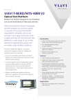 VIAVI Solutions Data Sheet VIAVI T-BERD/MTS-4000 V2 Optical Test Platform Modular Test Platform designed for the installation, turn-up and maintenance of fiber optic networks Telecommunication network topologies and technologies are evolving rapidly to respond to increased bandwidth requirements. Installers and service providers must equip technicians with scalable and easy-to-use test tools that addresses a wide range of up-to-date optical test applications quickly and accurately under all field conditions. The VIAVI T-BERD®/MTS-4000 V2 is the optical test platform engineers, technicians, installers and contractors can rely on, providing: y An easy-to-use solution with intuitive icon-based Key Benefits y Certify the fiber physical layer of FTTx/PON, access, metro and enterprise networks y Two field-replaceable modules increase flexibility y Smarter and faster field testing with tablet user interface y Advanced cloud support and remote connectivity Features graphical user interface (GUI) and multi-touch screen y Dual-modular handheld platform requiring minimal training y Large 9-inch high visibility touchscreen with permanent function keys y A compact platform with field-replaceable modules covering multiple optical test functions (OTDRs, optical power & loss testing, Optical Spectrum Analyzer (OSA), etc…) that enable complete optical network qualification. y Optimum workflow and operation within the platform or through the cloud with VIAVI StrataSync y Essential tools integrated and supported in the platform (visual fault locator, optical power meter, optical microscope and talkset) y Flexible connectivity; Ethernet, WiFi, Bluetooth y Smart Access Anywhere (SAA) for remote control & field tech support y StrataSync enabled — centralized cloud based asset, configuration, test data and workflow management and SmartAccess Anywhere Applications y Fiber optic test, qualification, certification and reporting T-BERD/MTS-4000 V2 Built-in options Talkset Powermeter VFL Microscope Fiber Complete Smart OTDR Powermeter CWDM OSA Fault Finder Expert OTDR Source DWDM OCC Report Dual Slot Modular Platform for Maximum Scalability and Usability The T-BERD/MTS-4000 V2 platform is a highly integrated optical test platform with two module bays, a large 9-inch color touchscreen with multi-touch capability, enabling the use of many optical test functions It supports the range of VIAVI fiber analysis tools including OSA, OTDR, bidirectional insertion loss/ORL, light source, power meter, and connector inspection. The dual module slot design delivers an all-in-one optical network test solution with a combination of key optical functions, for example: y For MPO fiber qualification: integrated OTDR and MPO switch test platform y For CWDM/DWDM network deployment: integrated CWDM/DWDM OTDRs and OSA test platform y For full CWDM network deployment: full 18 CWDM wavelengths OTDR test platform Upload files Remote control Transfer to PC, tablets, smartphones... Test and create report Data and report storage Post-processing Remote coaching Advanced connectivity, workflow and reporting capabilities The T-BERD/MTS-4000 V2 supports advanced connectivity via wireline, wireless and the cloud. Test workflow, reporting and asset management is made easier with StrataSync while SmartAccess Anywhere (SAA) enables remote control, from a PC browser or smartphone/tablet app, for launching tests or providing support to techs on site. Instruments and techs can also talk to each other using the fiber under test or separate comms fiber via the optical module in use or talkset. 2 T-BERD/MTS-4000 Optical Test Platform T-BERD/MTS-4000 Dual-slot Modular Platform Overview 1 9-inch high visibility touchscreen 2 On/off button 1 10 5 3 On indicator 4 Charge indicator 5 Home button 6 Result/Setup/File button 7 Start/Stop 8 Direction keys 9 Validation/Enter key 10 Testing indicator 11 Two interchangeable module fields 12 AC/DC input 13 High-speed Ethernet 6 7 8 2 3 11 Headset 15 Two USB 2.0 ports 16 Optical (VLF, Power meter, Talkset) 17 Battery 18 Wifi/Bluetooth 11 17 18 12 14 9 4 13 14 15 16 17 18 3 T-BERD/MTS-4000 Optical Test Platform StrataSync — Empower Your Assets StrataSync Core capabilities are included when you purchase any StrataSyncenabled instrument from VIAVI, there is nothing to buy to take advantage of these benefits. StrataSync Core includes asset and configuration management, test data management with 35 day limit, and even instrument self-management for techs via the Tech Portal. StrataSync Plus extends test data storage for up to 6 years and provides access to seasoned VIAVI StrataSync experts for assistance with setup, config, usage, reporting – just about anything that you desire. Specifications (typical at 25°C) General Description Plaform Optical Interface Display 9-inch touchscreen with high visibility LCD 800x480 Power meter Storage and I/O Interfaces Internal memory 1 Gb WiFi/Bluetooth Standard IEEE 802.11 b/g and Bluetooth Class 2 Ethernet 10/100/1000 MHz USB 2x USB 2.0 ports Power Supply Battery type Standard removable LiIon AC/DC adapter Input 100-250V, 50-60Hz Output 12-15 V DC/3.7A Electrical Safety EN 60950 Compliant Operation time Up to 16 hours Telcordia GR-196-CORE Size and Weight Mainframe with two modules and battery (WxHxD) 282x153x97 mm (11.1x6.02x3.8 in) Mainframe only (with battery) 1.4 kg (3 lb) Mainframe with one module (with battery) 2.3 kg (5.1 lb) Environmental Operating temperature range (no option) -20 to +50°C (-4 to 122°F) Operating temperature range (all options) Power level +10 to -60 dBm Calibrated wavelengths 850, 1310, 1550nm … Connector type Universal push/pull (UPP) Visual Fault Locator Wavelength 635nm ±15 nm Output power level < 1mW Laser safety Class 2 laser TalkSet Dynamic range 32 dB typical Ordering Information Platform Part Number Description ETB4000HVT EM4000HVT T-BERD/MTS-4000 V2 Platform E40PWx Power supply (x: E, UK, US…) E40VFL, E40PM, E40TSPM VFL, Optical power 