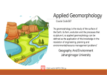 Applied geomorphology is an impor tant field of study that focuses on the