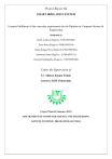 Project Report On SMART IRRIGATION SYSTEM In partial fulfilment of the curricular requirements for the Diploma in Computer Science & Engineering Submitted by Satish Acharya (Regd no.-F20019007048) Piyus Patra (Regd no.-F20019007034) Gyana Ranjan Patro (Regd n0.-F20019007026) Nabasurja Datta (Regd no.- F20019007033) Utysmita Sarbapallita (Regd no.- F20019007068) Under the Supervision of Er. Abhaya Kumar Panda Lecturer, KIIT Polytechnic Project Phase-II (Summer-2023) DEPARTMENT OF COMPUTER SCIENCE AND ENGINEERING KIIT POLYTECHNIC, BHUBANESWAR-751024 DEPARTMENT OF COMPUTER SCIENCE & ENGINEERING KIIT POLYTECHNIC, BHUBANESWAR – 751024 CERTIFICATE This is to certify to that this project report entitled “Smart Irrigation system” submitted by Satish Acharya (Regd no.-F20019007048), Piyus Patra (Regd no.- F20019007034), Gyana Ranjan Patro(Regd.No. F20019007026), Nabasurja Datta (Regd.No. F20019007033), Utysmita Sarbapallita(Regd.No. F20019007068) Diploma Students in the Computer Science & Engineering, KIIT Polytechnic, Bhubaneswar in the Academic Session 2020-2023 in the partial fulfilment of the curricular requirements for the award of “Diploma in Computer Science & Engineering” is a bonafide record of practical works carried out by them under my supervision and guidance. _______________________ __________________________ Dr. Sukalyan Das Mr. Abhaya Kumar Panda Head of Department Lecture, CSE Dept. (Project Guide) Signature of the External Examiner ACKNOWLEDGEMENT We would first like to express our sincere gratitude to our guide Er. Sunil Kumar Sahoo for offering kind attention and continuous help and support during the whole period of project making. His kind advice and guidance help to bring the document in this form. We would like to thank Dr. Sukalyan Das, Head of Computer Science and Engineering Department, of KIIT Polytechnic, Bhubaneswar, for the continuous encouragement and cooperation. We thankful to all our Diploma mates, they are always beside us in all cases of sorrow and joy. They always ready to help in the process of completion of project. Last but not the least we would like to thank all staff members of the department for their help in whatever way they could able to do. ____________________________ Satish Achary (Regd no.-F20019007048) Piyus Patra (Regd no.- F20019007034) Gyana Ranjan Patro (Regd no.- F20019007026) Nabasurja Datta (Regd no.- F20019007026) Utysmita Sarbapallita (Regd no.- F200190068) CONTENT Serial no. Subject Page no. 1. Introduction 1 2. Block diagram 2 3. Objective of project 3 4. Literature survey 4 5. Problem Statement 5 6. Scope of project 6 7. Adopted methedology 7 8. Irrigation control System Function 8 9. Advantages of Smart irrigation System 9 10. Flow Chart of the System 10 11. Proposed system Hardware and Architecture 11 12. Components 12-20 13. Hardware Implementation 21 14. Testing of Hardware kit 22 15. Advantages 23 16. Application Of Project 24 17. Future Enhancement and Limitation 25 18 Conclusion 26 19 Refferences 27 AUTOMATIC IRRIGATION SYSTEM AIM OF THE EXPERIMENT: To develop an automatic irrigation system to reduce human effort and better productivity INTRODUCTION : In the field of AUTOMATION, use of proper method of agricultural pump appliances is important because the main reason is intelligent operation and use of modern technology. Also it reduces human effort and may be widely used for Vegetable agricultural fields which requires frequent water supply with day to day changing temperature MATERIALS REQUIRED: 1) Moisture Sensor 2) Controller Circuit 3) PCB (Printed Circuit Board) 4) DC Water Pump 5) Battery 6) Relay 7) Resistors DESCRIPTION : Irrigation is defined as Artificial application of water to land or soil. Irrigation process can be used for the cultivation of agricultural crops during the span of inadequate rainfall and for maintaining landscapes. An automatic irrigation system does the operation of a system without requiring manual involvement of persons. An automatic irrigation system does the work quite efficiently and with a positive impact on the place where it is installed. Once it is installed in the agricultural field, the water distribution to crops and nurseries becomes easy and doesn’t require any human support to perform the operations permanently. The automatic irrigation irrigation system on sensing soil moisture project is intended for the development of an irrigation syst em that switches submersible pumps on or off by using relays to perform this action on sensing the moisture content of the soil. The main advantage of using this irrigation system is to reduce human interference and ensure proper irrigation. 1 BLOCK DIAGRAM: LEVEL Pump Driver CONTROLLER SENSOR DC Voltage Pump POWER SUPPLY CIRCUIT DESCRIPTION : The circuit comprises of sensor parts built using a Transistor named BC547. BC547 ’s are configured here as a driver circuit for pump. A water level sensor is inserted in the soil to sense whether the soil is wet or dry. The controller is used to control the whole system by monitoring the sensors and when sensors sense the dry soil condition then the controller will send command to relay driver IC the contacts of which are used to switch on the load and it will switch off the load when all the sensors are in wet water condition. The controller does the above job as it receives the signal from the sensors through the output of the SENSOR, This is safest and no manpower is required. This is very useful to all climatic conditions and it is economic friendly. 2 Objective of Project There is an urgent need for a system that makes the agricultural process easier and burden free from the farmer‟s side. With the recent advancement of technology it has become necessary to increase the annual crop production output entirely agro-centric economy. The ability to conserve the natural resources as well as giving a splendid boost to the production of the crops is one of the main aims of incorporating such