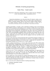 Methods of teaching programming Szlávi Péter – Zsakó László Department of Informatics Methodology, Eötvös Loránd University of Budapest e-mail: szlavi@ludens.elte.hu, zsako@ludens.elte.hu Abstract Programming methodology is one of the oldest fields of IS education, and thus various methods have evolved for its teaching. While some of them could be used effectively in primary or secondary education, others are more suited for students in higher education. The methods themselves determine the structure and curricula of courses such as Programming methodology, Data types and algorithms, Programming technology. Teaching programming is virtually as old as information technology itself. In the beginning, (before 1950) it meant the understanding of how computers worked and how they could be used. In this and the following era programming was an ’artistic’ activity, programmers had to learn different tricks and gimmicks, and furthermore they had to find out new algorithms for each problem. The knowledge of programming was spread by word of mouth even in the 1950s. They used programming languages which were based on the machine, thus they were forced to spend more time working out the details than focusing on the essence of the problem. Meanwhile, they had to realize that the computers were slow and did not have enough memory capacity. It became really important to teach programming after programming languages of higher level had appeared. On the influence of the previous era, however, it was based on teaching one particular programming language. The exercises were to understand the instructions of the programming language and to introduce how it could be applied. Actually, teaching programming as we mean it today, dates back to the 1970s. The big break in the methodology of programming was brought by the book Structures in Programming (Dahl, Dijkstra, Hoare [DDH,D], Wirth [W]). Its valuable invention was that it used a few but well defined algorithm and data structures, it divided the problems into subproblems according to the principle ”Divide et impera”, it created abstract algorithms and data types independent of the programming language to solve programming problems. At the end of the ’70s the methodology of teaching programming was approached from another point of view as well, based on the way how children think. This method was developed mainly by S. Papert [P]. J. Hvorecky and J. Kelemen [HK] writes about a similar method although it is based on different problem classes. Several methods have been developed for teaching programming since then. A few of them have already become out-of-date, most of them, however, are still in use at a certain level of education. Although some of them are related to methodology of program design, the majority of the methods are independent from them. Here is a list of the most widespread methods in teaching programming: methodical, algorithmic oriented data oriented specification oriented problem type-oriented language oriented instruction oriented mathematics oriented hardware oriented model oriented. We would like to note that the majority of teachers prefer to use several methods at the same time rather than stick to one single method. 1. Methodical, algorithmic oriented This method, similarly to many others, covers the whole process of programming: - problem definition, specification algorithm and data structure planning, comprehension of the correctness of the algorithm coding testing error detection, correction efficiency control, quality control documentation. Each activity is to be dealt with separately. The methods and tools connected with the topic should be considered in each case. Algorithm elaboration is considered to be of primary importance in this method, thus most of the emphasis is laid upon this during teaching. There are algorithmic oriented elements in later phases as well. The basic idea of algorithm elaboration is systematic arrangement. The first step includes general problem types and their general solution models, i.e. the programming theorems. (Although it is formally provable [SzZs1] that the general solution models of certain problem types are correct solutions to the relevant problems, this method substitutes formal proof for informal one.) The second step is to reduce the given problems to programming theorems, i.e. to determine how to apply certain programming theorems. The speciality of this method lies in the fact that it examines where and what needs to be actualized both in specification and algorithm at the same time. As the third step, the programming theorems should be combined so that more theorems could be applied at the same time (not lineally, one after the other). It is important to give the relevant (program transformation) rules not only for the specification but for the combination of algorithms as well.[HSzZs]. Data structure planning (a part of the subject traditionally called Data Structures and Algorithms) is to be processed here on the basis of the methodology of programming, i.e. data structure is a certain type with specification, structure representation and operation implementation [PSzZs]. A great number of decisions can be made during the coding phase depending on the definite or more general programming language. This method observes the vast majority of these decisions from algorithmic point of view. Thus the methods of conversion between iterative and recursive algorithms [SzZs2], the realisation of the usual programming structures (branches, iterations, functions, operators, etc. ) are dealt with this way as well. Apart from this, the method discusses the tools of user-friendly programming (e.g. the realisation of menu) in this phase. As regards the methods of testing, it handles the methods based on specification (known also as black box) and the ones based on algorithm (known as white box) as well [SzZsT]. In addition, the method of efficiency control is discussed with the 