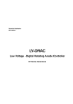 Technical Publication DR-1004R11 LV-DRAC Low Voltage - Digital Rotating Anode Controller HF Series Generators HF Series Generators LV-DRAC REVISION HISTORY REVISION DATE REASON FOR CHANGE 4 SEP 15, 2005 Tube selection (V10Rx) 5 JUL 26, 2006 New Tubes in Table-2 6 MAR 1, 2007 New Tubes in Table-2 (soft V10R2.04) 7 MAY 16, 2007 New Tubes in Table-2 (soft V10R3.1) 8 OCT 16, 2007 New Tubes in Table-2 (soft V10R3.3) 9 JAN 22, 2008 New Tubes in Table-2 (soft V10R3.4) 10 MAY 12, 2008 New Tubes in Table-2 (soft V10R3.5) 11 JUL 01, 2009 New Tubes and schematics (soft V10R3.6) This Document is the English original version, edited and supplied by the manufacturer. The Revision state of this Document is indicated in the code number shown at the bottom of this page. ADVISORY SYMBOLS The following advisory symbols will be used throughout this manual. Their application and meaning are described below. DANGERS ADVISE OF CONDITIONS OR SITUATIONS THAT IF NOT HEEDED OR AVOIDED WILL CAUSE SERIOUS PERSONAL INJURY OR DEATH. ADVISE OF CONDITIONS OR SITUATIONS THAT IF NOT HEEDED OR AVOIDED COULD CAUSE SERIOUS PERSONAL INJURY, OR CATASTROPHIC DAMAGE OF EQUIPMENT OR DATA. Advise of conditions or situations that if not heeded or avoided could cause personal injury or damage to equipment or data. Note DR-1004R11 . Alert readers to pertinent facts and conditions. Notes represent information that is important to know but which do not necessarily relate to possible injury or damage to equipment. HF Series Generators LV-DRAC TABLE OF CONTENTS Section 1 2 Page CONFIGURATION . . . . . . . . . . . . . . . . . . . . . . . . . . . . . . . . . . . . . . . . . . . . . . . . . . . . . . . 1 1.1 LV-DRAC Status Diagram . . . . . . . . . . . . . . . . . . . . . . . . . . . . . . . . . . . . . . . . . . . . 8 1.2 Self-running Mode . . . . . . . . . . . . . . . . . . . . . . . . . . . . . . . . . . . . . . . . . . . . . . . . . . 8 SCHEMATICS . . . . . . . . . . . . . . . . . . . . . . . . . . . . . . . . . . . . . . . . . . . . . . . . . . . . . . . . . . . 9 DR-1004R11 i HF Series Generators LV-DRAC ii DR-1004R11 HF Series Generators LV-DRAC SECTION 1 Note . CONFIGURATION This document ONLY applies to High Speed Generators supplied with the LV-DRAC (Low Voltage - Digital Rotating Anode Controller). The LV-DRAC is a High Speed Rotor Controller located on the Generator Cabinet. Its configuration is made through dip switches 3243SW1 to 3243SW4 on the Control DRAC Board. BEFORE MANIPULATING THE LV-DRAC, MAKE SURE THAT THE INPUT LINE IS DISCONNECTED AND THE CAPACITOR BANK IS PROPERLY DISCHARGED. WAIT UNTIL LEDS DL7 AND DL8 ON THE CONTROL DRAC BOARD ARE OFF. The Function of these switches is the following: 3243SW1-x FUNCTION 1 2 MINIMUM TIME FOR READY (DELAY) ( ) 3 4 5 6 TUBE TYPE SELECTION FOR TUBE-1 (Also refer to switch position 3243SW3-5) 7 8 3243SW2-x FUNCTION 1 2 FLUORO HOLD-OVER TIME 3 4 5 6 TUBE TYPE SELECTION FOR TUBE-2 (Also refer to switch position 3243SW4-5) 7 8 DR-1004R11 1 HF Series Generators LV-DRAC 3243SW3-x FUNCTION 1 LOW SPEED ROTATION BRAKE 2 NOT USED* 3 SPOT FILM HIGH SPEED START 4 NOT USED* 5 ON = WHEN THE TUBE CONFIGURED AS TUBE-1 IS LISTED ON TUBE TABLE-1 OFF = WHEN THE TUBE CONFIGURED AS TUBE-1 IS LISTED ON TUBE TABLE-2 6 7 NOT USED* 8 * Note: Set switches not used in “ON” position. 3243SW4-x FUNCTION 1 2 3 SPOT FILM HOLD TIME 4 5 6 ON = WHEN THE TUBE CONFIGURED AS TUBE-2 IS LISTED ON TUBE TABLE-1 OFF = WHEN THE TUBE CONFIGURED AS TUBE-2 IS LISTED ON TUBE TABLE-2 ON = SELF RUNNING ENABLED (Refer to section 1.2) OFF = SELF RUNNING DISABLED (Refer to section 1.2) 7 PROTECTIONS -- ERRORS 8 DC BRAKE * Note: Set switches not used in “ON” position. Note 2 . Set dip switches in accordance with the following tables. DR-1004R11 HF Series Generators LV-DRAC TUBE SELECTION -- TUBE TABLE-1 (Switch 3243SW3-5 = ON for Tube-1 ) P Pos TUBE FAMILY (Stator - ∅ Anode) (Switch 3243SW4-5 = ON for Tube-2) 3243SW1-x (TUBE-1) 3243SW2-x (TUBE-2) 4 5 6 7 8 4 5 6 7 8 0 GE MAXIRAY 75 ON ON ON ON ON ON ON ON ON ON 1 GE MAXIRAY 100 OFF ON ON ON ON OFF ON ON ON ON 2 VARIAN G-1582 ON OFF ON ON ON ON OFF ON ON ON OFF OFF ON ON ON OFF OFF ON ON ON ON ON OFF ON ON ON ON OFF ON ON 3 VARIAN RAD-XX or EUREKA RAD-XX (3” Anode, Emerald or Diamond Housing, R Stator (20--50 ohm), 300 KHU) VARIAN A132 (3” Anode, 300 KHU) VARIAN RAD-XX or EUREKA RAD-XX (4” Anode, Sapphire Housing, R Stator (16--50 ohm or 20--50 ohm), 400 KHU) 4 VARIAN RAD-56 (4” Anode, Sapphire Housing, R Stator (20--50 ohm), 400 KHU) VARIAN A256 / A282 / A292 (4” Anode, B130 or B150 Housing, R Stator (16--50 ohm or 20--50 ohm), 400 KHU) TOSHIBA 7254X / 7255X / 7823 (4” Anode, XS-RB Stator (20--38 ohm), 400 KHU) 5 CGR STATORIX M50 (MAMMO) OFF ON OFF ON ON OFF ON OFF ON ON 6 SIEMENS 100 L BIANGULIX SIEMENS 100 L OPTILIX ON OFF OFF ON ON ON OFF OFF ON ON 7 PHILIPS SUPEROTALIX OFF OFF OFF ON ON OFF OFF OFF ON ON 8 DUNLEE PX-1302 ON ON ON OFF ON ON ON ON OFF ON 9 CGR STATORIX 260 / RSN 742 / MSN 740 OFF ON ON OFF ON OFF ON ON OFF ON 10 CGR STATORIX 550 / RSN 722 / MSN 722 IAE RTC 600 ON OFF ON OFF ON ON OFF ON OFF ON 11 SIEMENS 100 G OFF OFF ON OFF ON OFF OFF ON OFF ON 12 SIEMENS RH 150/100 ON ON OFF OFF ON ON ON OFF OFF ON 13 COMET DO-10 (4” Anode) OFF ON OFF OFF ON OFF ON OFF OFF ON 14 COMET DO-9 (4” Anode) ON OFF OFF OFF ON ON OFF OFF OFF ON 15 CGR STATORIX 240 OFF OFF OFF OFF ON OFF OFF OFF OFF ON 16 PICKER PX-307 ON ON ON ON OFF ON ON ON ON OFF 17 HANGZHOU XD-52-30, 50/150 OFF ON ON ON OFF OFF ON ON ON OFF 18 DUNLEE PX-1312 ON OFF ON ON OFF ON OFF ON ON OFF 19 DUNLEE PX-1456 / PX-1436 / PX-1400 (Q Stator) OFF OFF ON ON OFF OFF OFF ON ON OFF 20 COMET DX-1000 ON ON OFF ON OFF ON ON OFF ON OFF 21 COMET DX-81 / COMET XSTAR-14 OFF ON OFF ON OFF OFF ON OFF ON OFF 22 PHILIPS ROTALIX 350/351 ON OFF OFF ON OFF ON OFF OFF ON OFF 23 COMET MOS-50 (MAMMO) OFF OFF OFF ON OFF OFF OFF OFF ON OFF 24 VARIAN B110 / B112 / B115 Housing ON ON ON OFF OFF ON ON ON OFF OFF 25 VARIAN B