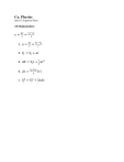 Co. Physics Quiz #2 Equation Sheet 1D (Kinematics) 𝑣= 𝛥𝑥 𝑡 = 1. 𝑎 = 𝑥𝑓 −𝑥𝑖 𝑡 𝛥𝑣 𝑡 = 𝑣𝑓 −𝑣𝑜 𝑡 2. 𝑉𝑓 = 𝑉𝑜 + 𝑎𝑡 1 3. 𝛥𝑋 = 𝑉𝑜 𝑡 + 𝑎𝑡 2 2 4. 𝛥𝑥 = 𝑣𝑓 +𝑣𝑜 2 (𝑡 ) 5. 𝑉𝑓2 = 𝑉𝑜2 + 2𝑎𝛥𝑥
