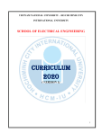 VIETNAM NATIONAL UNIVERSITY – HO CHI MINH CITY INTERNATIONAL UNIVERSITY SCHOOL OF ELECTRICAL ENGINEERING Curriculum 2020 ( VERSION 1) 1 Contents 1. .. ELECTRICAL ENGINEERING PROGRAM- ELECTRICAL ENGINEERING (B.Eng) .........3 2. Twinning Programs ................................................................................................................. 14 2.1. Twinning Program - University of Nottingham ................................................................. 14 2.2. University of the West of England ..................................................................................... 15 2.3. SUNY Binghamton ............................................................................................................ 16 3. ELECTRICAL ENGINEERING PROGRAM-AUTOMATION AND CONTROL ENGINEERING (B.Eng) .............................................................................................................. 17 4. COURSE DESCRIPTION ...................................................................................................... 25 2 1. ELECTRICAL ENGINEERING PROGRAM- ELECTRICAL ENGINEERING (B.Eng) The Electrical Engineering program requires at least 152 credits for graduation. In addition to these required credits, students have to take non-counting credits and extra-curriculum activities including two courses of Physical Training, Military Training, and English certificate. KNLNNVN IELTS TOEFL Level 4 61 iBT 5.5 TOEIC skills) 600 (4 Cambridge Exam First FCE BEC BULATS Busines Vantage 60 (CEFR B2) (*) List of General Elective Courses You must take 01 course from the following list Sub ID BA003IU BA006IU BA020IU BA116IU BA118IU BA117IU BA119IU BA123IU BA130IU BA167IU BA169IU BM007IU BM009IU BT158IU BTFT201IU AR009IU CH013IU IS019IU IS026IU IT063IU IT091IU IT094IU Subjects Principles of Marketing Business Communication Business Ethics Introduction to Social Science Introduction to Psychology Introduction to Microeconomics Introduction to Macroeconomics Principles of Management Organizational Behavior Introduction to Vietnamese Legal System Management Information Systems Introduction to Biomedical Engineering BME Capstone Design Course Introduction to Bioengineering Introduction to Food Science and Technology Aquatic Resources Management Analytical Chemistry Production Management Project Management Theoretical Models in Computing Computer Networks Information System Management Credit(s) 3 3 3 3 3 3 3 3 3 3 3 4 4 3 3 3 3+1 3 3 4 4 4 3 (**) List of ET Elective Courses You have to take at least 5 courses (18 credits) from the following list Sub ID EE061IU EE062IU EE094IU EE095IU EE105IU EE124IU EE075IU EEAC020IU EE063IU EE117IU EE066IU EE121IU EE104IU EE118IU EE070IU EE116IU EE119IU EE120IU EE072IU EE102IU EE103IU EE122IU EE123IU EE074IU EE125IU EE126IU EEAC008IU EE127IU EE128IU EE129IU EE133IU Subjects Analog Electronics Analog Electronics Laboratory Digital Electronics Digital Electronics Laboratory Antenna and Microwave Engineering Antenna and Microwave Engineering Lab Theory of Automatic Control Theory of Automatic Control Digital System Design Digital System Design Lab VLSI Design VLSI Design Lab Embedded Real-time Systems Embedded Real-time Systems Lab Wireless Communications Systems Wireless Communications Systems Lab Telecommunication Networks Telecommunication Networks Lab Computer and Communication Networks Stochastic Signal Processing Image Processing and Computer Vision Image Processing and Computer Vision Lab Special Topics in Electrical Engineering Digital Signal Processing Design RF Circuit Design RF Circuit Design Lab Sensors and Instrumentation Machine learning and Artificial Intelligence Internet of Things (IoT) Internet of Things Lab (IoT Lab) Emerging Engineering Technologies Credit(s) 3 1 3 1 3 1 3 4 3 1 3 1 3 1 3 1 3 1 3 3 3 1 2 3 3 1 3 3 3 1 3 4 Electrical Engineering Curriculum Freshman Physical Training 1 Sophomor Junior Physical Training 2 Engineering Ethics and Professional Senior General Elective ET Elective 3 Skills Philosophy of Each student has to select 5 elective courses Political economics Marxism and Leninism of Marxism and Leninism Physics 1 Physics 2 Note: History of VCP ET Elective 1 ET Elective 2 ET Elective 4 Ho Chi Minh s Physics 3 Physics 4 ET Elective 5 Thoughts Legend Prerequisite Military Training Calculus 1 Calculus 2 Calculus 3 Probability and Random Processes Applied Linear Differential Algebra Processes Equations Processes Co- requisite Lab Summer Internship Mandatory Courses Principles of Chemistry for Engineers Electromagnetic Theory Scientific Socialism Communications Introduction to Computer for Principles of EE2 Signals & Systems Engineers Academic English 1 Critical Thinking Principles of EE1 Academic English 2 Programming for Engineers Introduction to Electrical Engineering 17 credits 20 credits 5 credits Capstone Design 1 Electronics Devices Micro-processing Design Systems 22 credits Processing Capstone Design 2 Entrepreneurship Power Electronics Digital Logic 20 credits Digital Signal 19 credits 21 credits 3 credits Senior Project Thesis 15 credits 10 credits 5 Table EE.1: EE Program - Academic English Semester 1 MA001IU PH013IU CH011IU CH012IU PE015IU EN007IU EN008IU PT001IU EE050IU Semester 1 MA023IU PH015IU PH016IU EE051IU EE052IU EE053IU EE054IU EE057IU EE058IU Semester 1 EE088IU EE089IU EE083IU EE084IU EE130IU EE—IU PE020IU PE019IU EE112IU Semester 1 EE107IU EE—IU EE—IU EE—IU EE114IU Freshman Year (1st year) Semester 2 Calculus 1 4 MA003IU Calculus 2 Physics 1 (Mechanics) 2 MA027IU Applied Linear Algebra Chemistry for Engineers 3 PH014IU Physics 2 (Thermodynamics) Chemistry Laboratory 1 PE008IU Critical Thinking Philosophy of Marxism and Leninism 3 PE016IU Political economics of Marxism and Leninism Writing AE1 2 EN011IU Writing AE 2 Listening AE1 2 EN012IU Speaking AE2 EE049IU Introduction to EE Physical Training 1 0 PT002IU Physical Training 2 Total Credits 17 Total Credits Summer Semester Intro to Compute