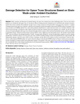 Damage Detection for Space Truss Structures Based on Strain Mode under Ambient Excitation Downloaded from ascelibrary.org by "National Institute of Technology, Silchar" on 07/24/23. Copyright ASCE. For personal use only; all rights reserved. Zhao-Dong Xu1 and Ke-Yi Wu2 Abstract: Safety assurance and detection of potential damage for space truss structures have been challenging topics. The two most critical problems are considered in this paper. One is to develop an effective damage detection method based on strain data under ambient excitation, and the other is then to optimize the installment of strain sensors owing to numerous structural members in the space truss structures. A method of damage detection for space truss structures, called the environmental excitation incomplete strain mode (EEISM) method, is proposed. Four steps are taken in the EEISM method. First, strain mode parameter identification is carried out based on the cross-correlation function of the strain responses through a combination of the empirical mode decomposition method and the peak amplitude series method. Second, the strain sensors are located optimally in the space truss structures through sensitive analysis of the strain mode perturbation matrix, which are obtained by perturbation theory. Third, the modal assurance criterion (MAC) value is applied to locate the damages; that is, the members with the larger MAC values are defined as the damaged members. Finally, a damage index obtained by solving the perturbation equation is used for damage quantification. Numerical analysis of a long-span space truss structure including damage location and quantification for single-member and multimember damages, detection of the various severities of damage, and the effect of the number of sensors is performed to verify the effectiveness of the proposed EEISM method. It is shown from the analysis results that the EEISM method is effective in the location and quantification of damages for single-member and multimember damages. The quantity of the strain sensors has an effect on the damage location and has no remarkable effect on the damage quantification for the determined damage members. DOI: 10.1061/(ASCE)EM.1943-7889.0000426. © 2012 American Society of Civil Engineers. CE Database subject headings: Damage; Strain; Trusses; Excitation. Author keywords: Damage detection; Strain mode; Space truss structure; Ambient excitation; Incomplete strain mode method. Introduction Around the world, long-span space truss structures are often designed for large-scale public buildings, such as stadiums, gymnasiums, and exhibition halls. To ensure their healthy operational condition and safety, early identification of damage caused by strong wind or earthquakes in these structures is of great importance. Researchers have been committed to finding a reliable damage detection strategy for long-span space truss structures to address problems associated with inspection difficulties and the importance of considering cost. The displacement mode shape is usually adopted in structural damage detection (Pandey et al. 1991; Lam et al. 1998; Kaouk et al. 2000). However, the accuracy of damage detection tests for space truss structures with a large number of members and degrees of freedom using the complete displacement mode shape is a difficult task. Kim and Membertkowicz (2001) proposed a two-step damage detection method for large-scale structures based on an 1 Professor, Key Laboratory of C&PC Structures of the Ministry of Education, Southeast Univ., Nanjing 210096, China (corresponding author). E-mail: xuzhdgyq@seu.edu.cn 2 Doctoral Student, Key Laboratory of C&PC Structures of the Ministry of Education, Southeast Univ., Nanjing 210096, China. E-mail: keyi.wuu@ gmail.com Note. This manuscript was submitted on June 9, 2009; approved on February 23, 2012; published online on September 14, 2012. Discussion period open until March 1, 2013; separate discussions must be submitted for individual papers. This paper is part of the Journal of Engineering Mechanics, Vol. 138, No. 10, October 1, 2012. ©ASCE, ISSN 07339399/2012/10-1215–1223/$25.00. incomplete displacement mode shape. The first step was to determine the approximate damage area using the best matrix correction method, and the second step was to determine damaged members in the detected damage area using a sensitivity analysis method. The displacement mode shape would be identified from the acceleration responses by modal analysis in the time or frequency domain. In a real application, the strain sensors are also commonly applied as accelerators. Moreover, previous research has proven that strain responses are more sensitive to local damage. Yao et al. (1992) observed the strain mode changed during the damage process of a 5-story frame structure and noticed that the strain mode was superior to the displacement mode shape in detecting local damage. Unger et al. (2005) applied the strain mode in the damage location of a prestressed concrete beam and concluded that the mode shapes were sensitive to the local change of stiffness nearby the sensor locations. The objective of this paper is to develop a damage detection strategy for long-span space truss structures based on the strain mode. However, two critical problems should also be taken into consideration when the strain mode is used for damage detection of space truss structures. First, because space truss structures are usually large-scale buildings exposed to environmental conditions, the excitation input to the structures can be naturally considered to be subjected to these environments. Second, the strain sensors should be installed optimally because of the large quantity of members in the space truss structures. Therefore, a damage detection method for space truss structures, named the environmental excitation incomplete strain mode (EEISM) method, is proposed. The EEISM method consists of four steps. The first step is identification of t