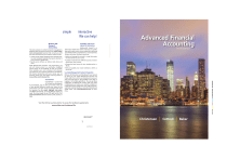 Want studying to be as simple and interactive as keeping up with your friends online? We can help! • Access end-of-chapter assignments for limitless practice and immediate feedback that reports directly to your instructor’s grade book. • Quickly access lectures, an eBook, study tools, and more. With McGraw-Hill’s Connect® Plus Accounting, you also will receive access to a searchable, integrated online version of the textbook to help you successfully complete your work whenever and wherever you choose. If your instructor chooses to use McGrawHill Connect Accounting with your course, you can purchase access from the Online Learning Center at www.mhhe.com/christensen10e. CourseSmart • Select and arrange the content in a way that makes the most sense for your course. • Combine materials from different sources and even upload your own content. • Choose the best format for your students–print or eBook. • Edit and update your course materials as often as you’d like. Learning Management System Integration McGraw-Hill Education and Blackboard have teamed up. Now you can access McGraw-Hill Connect and Create right from within your Blackboard course–all with one single sign-on. Say goodbye to the days of logging in to multiple applications. You also get deep integration of McGraw-Hill content and tools right in Blackboard, and when your students complete an integrated Connect assignment, the grade automatically (and instantly) feeds your instructor’s Blackboard grade center. Visit www.domorenow.com to learn more. Advanced Financial Accounting Tenth Edition MD DALIM 1223219 01/19/13 CYAN MAG YELO BLACK CourseSmart is a new way to fnd and buy eTextbooks. At CourseSmart, you can save up to 55% of the cost of your printed textbook, reduce your impact on the environment, and gain access to powerful web tools for learning. You can search, highlight, take notes, and share with friends, as well as print the pages you need. Try a free chapter to see if it’s right for you. Visit www.CourseSmart.com and search by title, author, or ISBN. McGraw-Hill Create™ is a self-service website that allows instructors to quickly and easily create custom course materials by drawing upon McGraw-Hill’s comprehensive, cross-disciplinary content and other third-party resources. Advanced Financial Accounting The next evolution in online homework management, McGraw-Hill’s Connect Accounting is an online assignment and assessment solution that connects you with the tools and resources you’ll need to achive success: Flexibility and Convenience for Instructors Tenth Edition McGraw-Hill Connect® Accounting Christensen Cottrell Baker Visit the Online Learning Center to access the textbook supplements: www.mhhe.com/christensen10e ISBN 978-0-07-802562-4 MHID 0-07-802562-1 EAN www.mhhe.com Christensen Cottrell Baker ® Get Connected. accounting The integrated solutions for Christensen’s Advanced Financial Accounting, 10e, have been proven to help you achieve your course goals of improving student readiness, enhancing student engagement, and increasing their comprehension of content. Known for its engaging style, the Christensen solution employs the use of current companies and instant feedback on practice problems to help students engage with course materials, comprehend the content, and achieve higher outcomes in the course. FEATURES Connect Accounting’s algorithmic problems provide students with an individualized problem and customized explanations of each calculation. Algorithmic problems allow instructors flexibility in creating homework assignments as the numbers automatically generate, causing a variety of different sets to choose from. Christensen’s Advanced Financial Accounting, 10e, now includes algorithmic problems in Connect! Algorithmically generated numbers for selected problems are available with each chapter within Connect. In addition, our new Intelligent Response Technology-based content offers students an intelligent homework experience that helps them stay focused on learning instead of navigating the technology. PROVEN EFFECTIVE Intelligent Response Technology Intelligent Response Technology (IRT) is Connect Accounting’s new student interface for end-of-chapter assessment content. Intelligent Response Technology provides a general journal application that looks and feels more like what you would find in a general ledger software package, improves answer acceptance to reduce student frustration with formatting issues (such as rounding), and, for select questions, provides an expanded table that guides students through the process of solving the problem. ISBN: 9780078025624/0078025621 Author: Christensen Title: Advanced Financial Accounting 10e Front endsheets Color: 4c Pages: 2, 2,33 ® Get Connected. accounting The integrated solutions for Christensen’s Advanced Financial Accounting, 10e, have been proven to help you achieve your course goals of improving student readiness, enhancing student engagement, and increasing their comprehension of content. Known for its engaging style, the Christensen solution employs the use of current companies and instant feedback on practice problems to help students engage with course materials, comprehend the content, and achieve higher outcomes in the course. FEATURES Connect Accounting’s algorithmic problems provide students with an individualized problem and customized explanations of each calculation. Algorithmic problems allow instructors flexibility in creating homework assignments as the numbers automatically generate, causing a variety of different sets to choose from. Christensen’s Advanced Financial Accounting, 10e, now includes algorithmic problems in Connect! Algorithmically generated numbers for selected problems are available with each chapter within Connect. In addition, our new Intelligent Response Technology-based content offers students an intelligent homework experience that helps them stay focused on learning instea