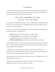 7A: Respiration Cellular respiration is the process by which food is broken down to produce ATP. Glucose is the main respiratory substrate used by cells. Aerobic respiration is the process of breaking down a respiratory substrate in order to produce ATP using oxygen glucose + oxygen → carbon dioxide + water + energy C6H1206 + 6 O2 → 6 CO2 + 6 H20 + 2870 kJ The energy that is released during the process is used to phosphorylate (add a phosphate) ADP to form ATP. ATP can be broken down in a hydrolysis reaction, catalyzed by ATPase, to provide energy for other chemical reactions. The process of aerobic respiration using glucose can be split into four stages which each occurs at a particular location in a eukaryotic cell: 1. Glycolysis takes place in the cell cytoplasm – no oxygen required 2. The Link reaction takes place in the matrix of the mitochondria 3. The Krebs cycle takes place in the matrix of the mitochondria 4. Oxidative phosphorylation occurs at the inner membrane of the mitochondria These chemical reactions are controlled by intracellular enzymes that catalyze reactions within the cell – ensuring that the energy trapped within the chemical bonds of the glucose molecule is released gradually and not all at once. A sudden release of such a large amount of energy would result in an increase in body temperature to levels that would denature enzymes. The enzyme that catalyzes these reactions the slowest will determine the overall rate of aerobic respiration Since mitochondria is the site of aerobic respiration, the number of mitochondria in the cell is an indicator of how active the cell is. Although glucose is the main fuel for respiration, organisms can also break down other molecules (such as fatty acids or amino acids) to be respired Prepared by Maisha Islam Monamee MITOCHONDRIA Mitochondria have two phospholipid membranes. The outer membrane is: - Smooth - Permeable to several small molecules The inner membrane is: - Folded (cristae) - Less permeable - The site of the electron transport chain (used in oxidative phosphorylation) - Location of ATP synthase enzymes (used in oxidative phosphorylation) The intermembrane space: - Has a low pH due to the high concentration of protons - The concentration gradient across the inner membrane is formed during oxidative phosphorylation and is essential for ATP synthesis Prepared by Maisha Islam Monamee The matrix: - Is an aqueous solution - Contains ribosomes, enzymes and circular mitochondrial DNA HYDROGEN ACCEPTOR Hydrogen acceptor is a molecule which receives hydrogen and become reduced in cell biochemistry. The most common hydrogen acceptors are NAD and FAD. Several coenzymes are required during respiration to transfer various molecules involved in the process. NAD and FAD are the coenzymes responsible for transferring hydrogen between molecules. Depending on whether they give or take hydrogen, they are able to reduce or oxidise a molecule. - Coenzyme A is responsible for the transfer of acetate (also known as acetic acid) from one molecule to another Prepared by Maisha Islam Monamee GLYCOLYSIS Glycolysis is the first stage of respiration. It does not require oxygen to take place and is therefore the first step for both aerobic and anaerobic respiration. Glucose is only partially oxidised during glycolysis. In glycolysis, a 6-C glucose molecule is broken down into 2 molecules of 3-C pyruvate in a series of 10 reactions. It takes place in the cytoplasm of the cell and involves: - Trapping glucose in the cell by phosphorylating the molecule - Oxidizing triose phosphate (by losing hydrogen) It results in the production of - 2 Pyruvate (3C) molecules which moves into the matrix of mitochondria to be used during the link reaction - 2 ATP - 2 reduced NAD (NADH), which will be used during a later stage called oxidative phosphorylation Under anaerobic conditions, glycolysis produces lactic acid or lactate instead of pyruvate Steps of glycolysis: 1. Phosphorylation of glucose (a hexose sugar) - This makes the sugar more reactive - The sugar is unable to pass through the cell membrane and is trapped within the cell - Two molecules of ATP are needed - This produces ■ 2 molecules of triose phosphate ■ 2 molecules of ADP 2. Oxidation of triose phosphate - After triose phosphate loses hydrogen, it forms two molecules of pyruvate Prepared by Maisha Islam Monamee - The hydrogen ions are collected by NAD which reduces the coenzyme - This forms 2 molecules of NADH - Even though a total of four ATP molecules were produced during glycolysis, two of them were used to phosphorylate glucose - There was therefore a net gain of two ATP molecules If plenty of oxygen is available, the pyruvate will enter the mitochondria to participate in Kreb’s cycle. If oxygen levels are low, the pyruvate remains in the cytoplasm and is converted either to ethanol (plants and yeast) or lactate (mammals) with no additional ATP produced. net glucose production in glycolysis = –2 + 4 = 2 ATP Draw fig B (page 167) Prepared by Maisha Islam Monamee ANAEROBIC RESPIRATION Sometimes cells experience conditions with little or no oxygen. There are several consequences when there is not enough oxygen available for respiration: ● There is no final acceptor (oxygen) of electrons from the electron transport chain ● The electron transport chain stops functioning ● No more ATP is produced via oxidative phosphorylation ● Reduced NAD and FAD aren’t oxidised by an electron carrier ● No oxidised NAD and FAD are available for dehydrogenation in the Krebs cycle ● The Krebs cycle stops ● The link reaction also stops However, there is still a way for cells to produce some ATP in low oxygen conditions through anaerobic respiration. Some cells are able to oxidise the reduced NAD produced during glycolysis so it can be used for further hydrogen transport. This means that glycolysis can continue and small amounts of ATP are still produced. Different cells use different pathwa