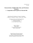 EPA/600/R-03/072 July 2003 Characteristics of Spilled Oils, Fuels, and Petroleum Products: 1. Composition and Properties of Selected Oils Zhendi Wang, B.P. Hollebone, M. Fingas, B. Fieldhouse, L. Sigouin, M. Landriault, P. Smith, J. Noonan, and G. Thouin Emergencies Science and Technology Division Environmental Technology Centre Environment Canada 335 River Road, Ottawa, Ontario James W. Weaver Project Officer Ecosystems Research Division Athens, Georgia 30605 National Exposure Research Laboratory Office of Research and Development United States Environmental Protection Agency Research Triangle Park, North Carolina 27711 Notice The U.S. Environmental Protection Agency through its Office of Research and Development funded and managed the research described here under contract (1D-5859-NAFX) to Environment Canada. It has been subjected to the Agency’s peer and administrative review and has been approved for publication as an EPA document. Mention of trade names or commercial products does not constitute endorsement or recommendation for use. ii Foreword The National Exposure Research Laboratory’s Ecosystems Research Division (ERD) in Athens, Georgia, conducts research on organic and inorganic chemicals, greenhouse gas biogeochemical cycles, and land use perturbations that create direct and indirect, chemical and non-chemical stresses, exposures, and potential risks to humans and ecosystems. ERD develops, tests, applies and provides technical support for exposure and ecosystem response models used for assessing and managing risks to humans and ecosystems, within a watershed / regional context. The Regulatory Support Branch (RSB) conducts problem-driven and applied research, develops technology tools, and provides technical support to customer Program and Regional Offices, States, Municipalities, and Tribes. Models are distributed and supported via the EPA Center for Exposure Assessment Modeling (CEAM) and through access to Internet tools (www.epa.gov/athens/onsite). At the request of the US EPA Oil Program Center, ERD is developing an oil spill model that focusses on fate and transport of oil components under various response scenarios. Since crude oils and petroleum products are composed of many chemicals that have varying physical properties, data are required to characterize these fluids for use in models. The data presented in this report provide input to compositional models by characterizing oil composition by several approaches, but also by providing physical transport properties at corresponding levels of weathering and temperature. EPA expects these data to be useful both for modeling and to provide a resource for the oil spill response community as a whole. Rosemarie C. Russo, Ph.D. Director Ecosystems Research Division Athens, Georgia iii Abstract Multicomponent composition and corresponding physical properties data of crude oils and petroleum products are needed as input to environmental fate simulations. Complete sets of such data, however, are not available in the literature due to the complexity and expense of making the measurements. Environment Canada has previously developed a database of various physical and chemical properties of crude oils and petroleum products. In this cooperative project, ten “typical” crude oils and refined products in common use or transport were identified for subsequent characterization. Measured oil physical properties include API gravity, density, sulphur content, water content, flash point, pour point, viscosity, surface and interfacial tension, adhesion, the equation for predicting evaporation, emulsion formation, and simulated boiling point distribution. The chemical composition of the oils are quantified for hydrocarbon groups, volatile organic compounds, n-alkane distribution, distribution of alkylated polyaromatic hydrocarbon (PAH) homologues and other EPA priority PAHs, and biomarker concentrations. This project will provide the most complete and comprehensive database for the selected oils to date. The new composition data will be integrated into the existing Environment Canada oil properties database. The results will be made available to the public both on the world wide web and as a database on disc. iv Table of Contents Notice . . . . . . . . . . . . . . . . . . . . . . . . . . . . . . . . . . . . . . . . . . . . . . . . . . . . . . . . . . . . . . . . . . . . ii Foreword . . . . . . . . . . . . . . . . . . . . . . . . . . . . . . . . . . . . . . . . . . . . . . . . . . . . . . . . . . . . . . . . iii Abstract . . . . . . . . . . . . . . . . . . . . . . . . . . . . . . . . . . . . . . . . . . . . . . . . . . . . . . . . . . . . . . . . . . iv 1. Introduction . . . . . . . . . . . . . . . . . . . . . . . . . . . . . . . . . . . . . . . . . . . . . . . . . . . . . . . . . . 1 2. List of Definitions . . . . . . . . . . . . . . . . . . . . . . . . . . . . . . . . . . . . . . . . . . . . . . . . . . . . . 3 3. Methods for Measurement of Physical and Chemical Properties of Selected Oils . . . . . 10 4. Summary of Quality Assurance and Quality Control (QA/QC) Plan . . . . . . . . . . . . . . . 28 5. Physical Properties and Chemical Composition of Alaska North Slope Crude Oil (2002) . . . . . . . . . . . . . . . . . . . . . . . . . . . . . . . . . . . . . . . . . . . . . . . . . . . . . . . . . . . . . . . . . . 34 6. Physical Properties and Chemical Composition of Alberta Sweet Mixed Blend (ASMB, Reference #5) . . . . . . . . . . . . . . . . . . . . . . . . . . . . . . . . . . . . . . . . . . . . . . . . . . . . . . . . . . . . . . . . 46 7. Physical Properties and Chemical Composition of Arabian Light (2000) . . . . . . . . . . . . 58 8. Physical Properties and Chemical Composition of Sockeye (2000) . . . . . . . . . . . . . . . . 70 9. Physical Properties and Chemical Composition of South Louisiana (2001) . . . . . . . . . . 82 10. Physical Properties and Chemical Composition of West Texas Intermediate (2002) . . . 94 11. Physica