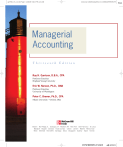 gar79611_fm_i-xxi.indd Page iii 12/24/08 9:42:23 PM user-s180 /Users/user-s180/Desktop/Dhiru 24-12-08/New/MHBR094-FM Managerial Accounting Thirteenth Edition Ray H. Garrison, D.B.A., CPA Professor Emeritus Brigham Young University Eric W. Noreen, Ph.D., CMA Professor Emeritus University of Washington Peter C. Brewer, Ph.D., CPA Miami University—Oxford, Ohio Boston Burr Ridge, IL Dubuque, IA Madison, WI New York San Francisco St. Louis Bangkok Bogotá Caracas Kuala Lumpur Lisbon London Madrid Mexico City Milan Montreal New Delhi Santiago Seoul Singapore Sydney Taipei Toronto gar79611_fm_i-xxi.indd Page iv 1/8/09 3:21:34 PM user /Users/user/Desktop Dedication To our families and to our many colleagues who use this book. MANAGERIAL ACCOUNTING Published by McGraw-Hill/Irwin, a business unit of The McGraw-Hill Companies, Inc., 1221 Avenue of the Americas, New York, NY, 10020. Copyright © 2010, 2008, 2006, 2003, 2000, 1997, 1994, 1991, 1988, 1985, 1982, 1979, 1976 by The McGraw-Hill Companies, Inc. All rights reserved. No part of this publication may be reproduced or distributed in any form or by any means, or stored in a database or retrieval system, without the prior written consent of The McGraw-Hill Companies, Inc., including, but not limited to, in any network or other electronic storage or transmission, or broadcast for distance learning. Some ancillaries, including electronic and print components, may not be available to customers outside the United States. This book is printed on acid-free paper. 1 2 3 4 5 6 7 8 9 0 DOW/DOW 0 9 ISBN MHID 978-0-07-337961-6 0-07-337961-1 Vice president and editor-in-chief: Brent Gordon Editorial director: Stewart Mattson Publisher: Tim Vertovec Developmental editor: Emily A. Hatteberg Marketing manager: Kathleen Klehr Lead project manager: Pat Frederickson Senior production supervisor: Debra R. Sylvester Lead designer: Matthew Baldwin Senior photo research coordinator: Lori Kramer Photo researcher: Keri Johnson Senior media project manager : Susan Lombardi Cover design: Kay Lieberherr Cover Photo: © Mark Bertieri, Creative Photo Designs Typeface: 10.5/12 Times Roman Compositor: Aptara, Inc. Printer: R. R. Donnelley Library of Congress Cataloging-in-Publication Data Garrison, Ray H. Managerial accounting / Ray H. Garrison, Eric W. Noreen, Peter C. Brewer.—13th ed. p. cm. Includes index. ISBN-13: 978-0-07-337961-6 (alk. paper) ISBN-10: 0-07-337961-1 (alk. paper) 1. Managerial accounting. I. Noreen, Eric W. II. Brewer, Peter C. III. Title. HF5657.4.G37 2010 658.15’11—dc22 2008054773 www.mhhe.com gar79611_fm_i-xxi.indd Page v 12/24/08 9:42:28 PM user-s180 /Users/user-s180/Desktop/Dhiru 24-12-08/New/MHBR094-FM About the Authors Ray H. Garrison is emeritus professor of accounting at Brigham Young University, Provo, Utah. He received his BS and MS degrees from Brigham Young University and his DBA degree from Indiana University. As a certified public accountant, Professor Garrison has been involved in management consulting work with both national and regional accounting firms. He has published articles in The Accounting Review, Management Accounting, and other professional journals. Innovation in the classroom has earned Professor Garrison the Karl G. Maeser Distinguished Teaching Award from Brigham Young University. Eric W. Noreen has held appointments at institutions in the United States, Europe, and Asia. He is emeritus professor of accounting at the University of Washington. He received his BA degree from the University of Washington and MBA and PhD degrees from Stanford University. A Certified Management Accountant, he was awarded a Certificate of Distinguished Performance by the Institute of Certified Management Accountants. Professor Noreen has served as associate editor of The Accounting Review and the Journal of Accounting and Economics. He has numerous articles in academic journals including: the Journal of Accounting Research; the Accounting Review; the Journal of Accounting and Economics; Accounting Horizons; Accounting, Organizations and Society; Contemporary Accounting Research; the Journal of Management Accounting Research; and the Review of Accounting Studies. Professor Noreen has won a number of awards from students for his teaching. Managerial Accounting Thirteenth Edition v gar79611_fm_i-xxi.indd Page vi 12/24/08 9:42:30 PM user-s180 /Users/user-s180/Desktop/Dhiru 24-12-08/New/MHBR094-FM About the Authors Peter C. Brewer is a professor in the Department of Accountancy at Miami University, Oxford, Ohio. He holds a BS degree in accounting from Penn State University, an MS degree in accounting from the University of Virginia, and a PhD from the University of Tennessee. He has published more than 30 articles in a variety of journals including: Management Accounting Research, the Journal of Information Systems, Cost Management, Strategic Finance, the Journal of Accountancy, Issues in Accounting Education, and the Journal of Business Logistics. Professor Brewer is a member of the editorial boards of Issues in Accounting Education and the Journal of Accounting Education. His article “Putting Strategy into the Balanced Scorecard” won the 2003 International Federation of Accountants’ Articles of Merit competition and his articles “Using Six Sigma to Improve the Finance Function” and “Lean Accounting: What’s It All About?” were awarded the Institute of Management Accountants’ Lybrand Gold and Silver Medals in 2005 and 2006. He has received Miami University’s Richard T. Farmer School of Business Teaching Excellence Award and has been recognized on two occasions by the Miami University Associated Student Government for “making a remarkable commitment to students and their educational development.” He is a leading thinker in undergraduate management accounting curriculum innovation and is a frequent presenter at various professional and academic conferences. Prior to joining the faculty at Miami University, Professor Brewe