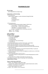 PHARMACOLOGY Pharmacology - most simply defined as study of drug. Fundamentals of Pharmacology 1. Pharmacokinetics - study of drug’s changes as it enters and passes through the body. a. absorption b. distribution c. biotransformation d. excretion 2. Pharmacodynamics - mechanism by which drugs produce changes in body tissue. a. desired effect - intended action of drugs b. adverse effect - harmful unintended reactions c. side effects – consequence reactions d. toxicity – the degree which something is poisonous digoxin = 0.5 – 2.0 ng/mL lithium = 0.5 – 1.5 mEq/L Safety and Efficacy Nursing Principles : 1. Always verify the Five Rights . a. the right medications b. the right client c. the right dosage d. the right form, route and technique e. the right time 2. Chart drug administration only after its been given, never before. 3. Never leave the medication on cart or tray unattended. 4. Chart observed therapeutic and adverse effects accurately and fully. 5. Check history for allergies and potential drug interactions before administering a newly ordered drug. 6. Inform the prescribing physician of any observed adverse effects; if cannot be located, inform the nursing supervisor 7. Question drug orders that are unclear, that appear to contain errors, or that have potential to harm. 8. Take the following actions if an error occurs : a. immediately notify the nursing supervisor, the prescribing physician, and the pharmacist. b. assess the client’s condition and provide any necessary care. 9. For postpartum women, advice to take drugs after breastfeeding. Administration of Drugs : Routes and Nursing considerations: 1. Enteral – oral, sublingual, rectal, gastric tubes - capsulated pill, sustained release and enteric coated should not be crushed. 2. Parenteral – IV, IM, SQ, ID, IT, IA, epidural. - vastus lateralis (safest site for IM) 3. Topical – skin, inhalants, mucus membrane. ______________________________________________________________ Eye medications : - administer eyedrops first then ointment. - use a separate bottle for each client. - instruct the client to tilt the head backward, open eyes and look up. - avoid contact of medication bottle to the eyeball. - place prescribed dose in the lower conjunctival sac. - instruct the client to press the inner canthus for 30-60 seconds. - instruct the client to close the eye gently. Ear drops - in infant and children younger than 3 y.o, pull pinna downward and backward. - in older children and adult, upward and backward. - direct the solution on the wall of the ear canal, not directly on the ear drum. CLASSIFICATIONS OF DRUGS DRUGS AFFECTING THE CENTRAL AND AUTONOMIC SYSTEM Cholinergic Agents (Parasympathomemitics) Prototype : - synthetic acetylcholine, pilocarpine, carbachol, bethanecol (Urocholine), edrophonium (Tensilon), neostigmine (Prostigmine), pyridostigmine (Mestinon). Mechanism of action : - stimulates cholinergic receptors by mimicking acetylcholine or inhibition of enzyme cholinesterase. Indications : - glaucoma, urine retention, Myasthenia Gravis - antidote to neuromuscular blocking agents : tricyclic antidepressants and atropine Adverse effects : - blurring of vision, miosis - increase in salivation, intestinal cramps - bronchoconstriction, wheezing, DOB - hypotension and bradycardia Nursing considerations : 1. Warn & monitor clients of the side effects. 2. Have atropine available for use as antidote. Cholinergic Blocking Agents (Parasympatholytics, Anticholinergics) Prototype : - atropine, scopalamine (Triptone), dicyclomine (Bentyl), propantheline (Pro-Banthine). Mechanism of actions : - block the binding of acetylcholine in the receptors of parasympathetic nerves. Indications : - use preoperatively to dry up secretions. - treat spasticity of GI or urinary tract. - use for treatment of bradycardia, asthma, parkinsonism. - use for antidote in organophosphate poisoning. Adverse effects : ______________________________________________________________ - dry mouth , dilatation of pupils, tachycardia - urinary retention, ileus, heat stroke Nursing considerations : 1. Keep client’s in cool environment. 2. Watch out for signs of heatstroke and dehydration. 3. Encourage clients to increase fluid intake and use of sugarless gum/candy for dry mouth. 4. For GI spasticity, administer 30 minutes before meals and at bed time. Adrenergic Agents (Sympathomimetics) Prototype : - epinephrine, norepinephrine, ephedrine, dopamine, dobutamine, phenylephrine, terbutaline, albuterol, isoproterenol. Mechanism of actions : - stimulate alpha and beta adrenergic receptor directly or trigger the release of catecholamines indirectly causing sympathetic effects. Indications : - cardiopulmonary arrest, hypotension - COPD and asthma, nasal congestions - allergic reaction, anaphylactic shock Adverse effects : - restlessness, insomnia, tremors, nausea - palpitations, angina, tachycardia, HPN Nursing considerations : 1. Contraindicated in clients w/ hyperthyroidism, pheochromocytoma & cardiovascular disease. 2. Monitor vital signs and advice precautions. 3. Should be taken with food. ADRENERGIC BLOCKING AGENTS Prototype : a. Alpha blockers - phentolamine (Regintine), phenoxybenzamine, prazosin (Minipress), reserpine (Serpasil), terazosin (Hytrin) - clonidine (Catapress), methyldopa (Aldomet) b. Beta blockers - atenolol (Tenormin), esmolol (Brevibloc), metoprolol (Lopressor), nadolol (Corgard), propanolol (Inderal), timolol ( Blocadren) Mechanism of actions : a. alpha blockers - inhibits action of a-receptors in vascular smooth muscle to cause vasodilatation. b. beta blockers - compete with epinephrine in b-receptors in heart, pulmonary airways, peripheral circulation and CNS. Indications : - Raynaud’s disease, hypertension, pheochromocytoma. - angina, arrhythmias, mitral valve prolapse, glaucoma Adverse effects : - orthostatic hypotension, bradycardia, CHF - depression, insomnia and vertigo - bronchospasm and dyspnea, nasal stuffiness, cold extremit